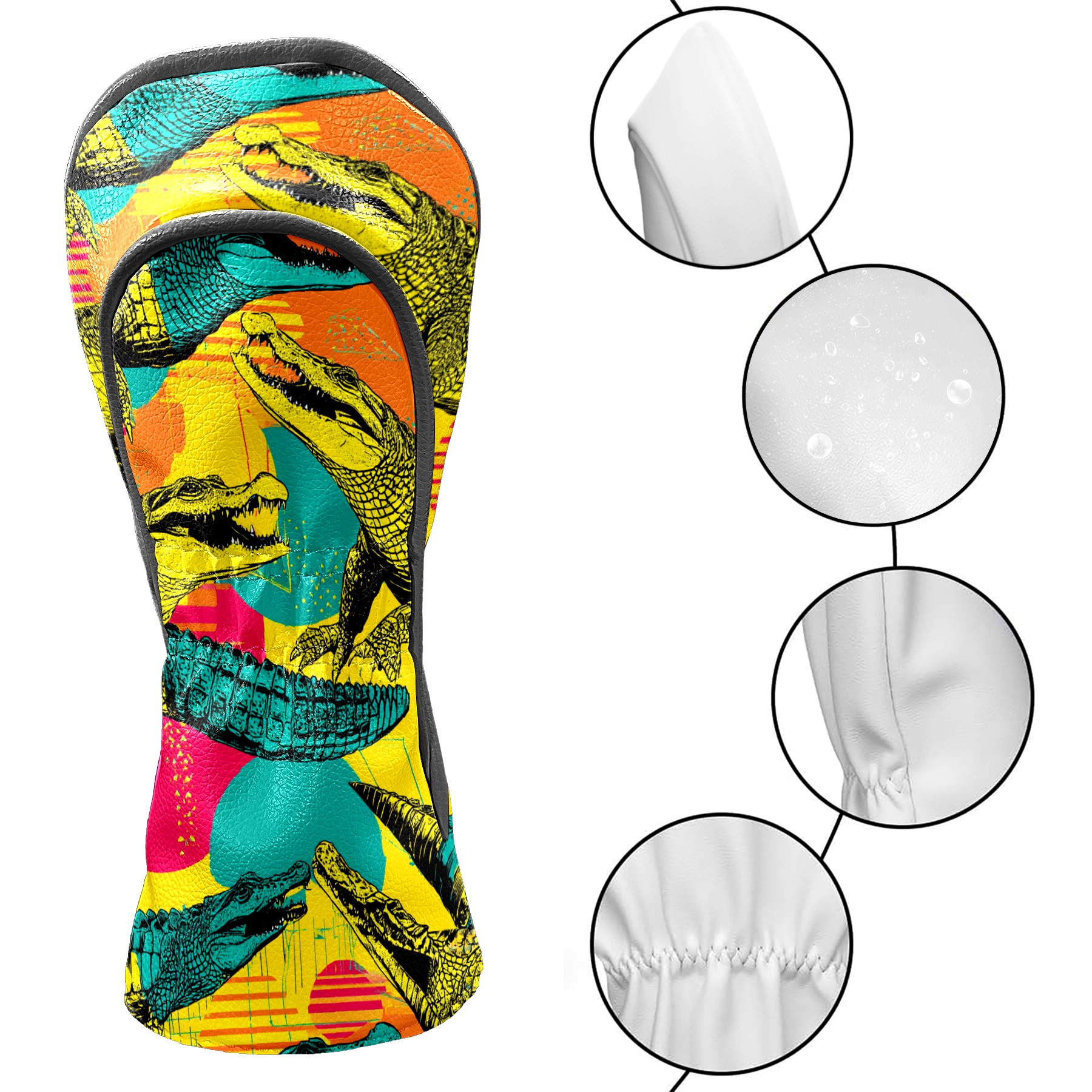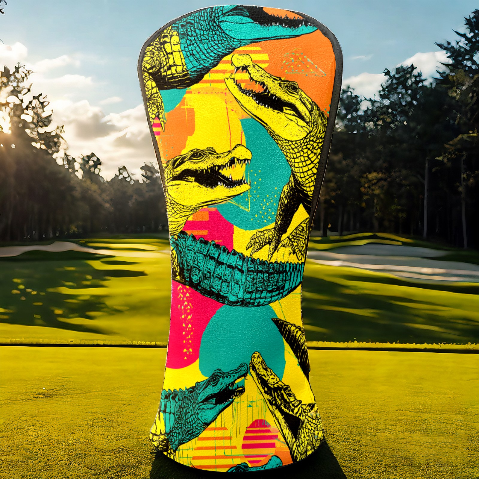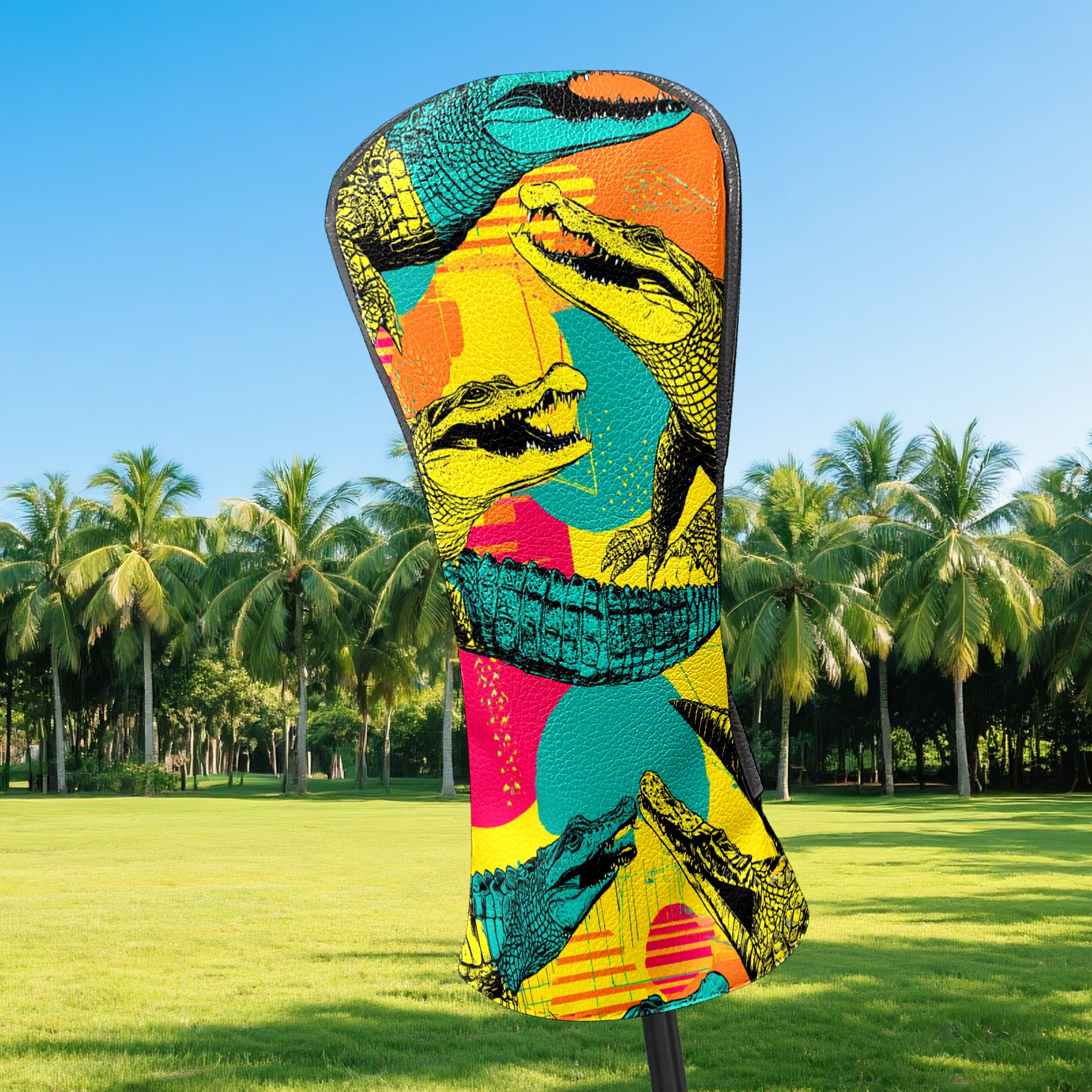 Counullo Golf Head Covers - Funny Multicolor Pop Art Crocodiles Driver Headcover, Durable PU Leather & Soft Velvet Lining, Secure Elastic Band, Perfect Christmas Golf Gift for Men