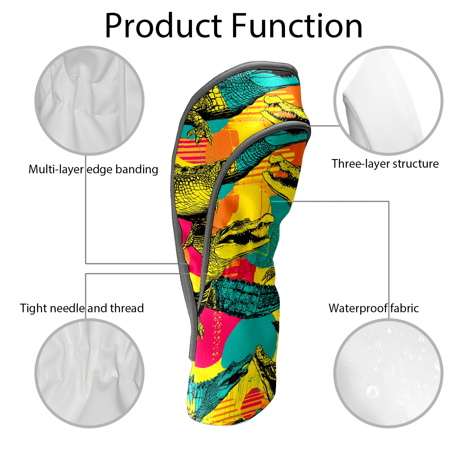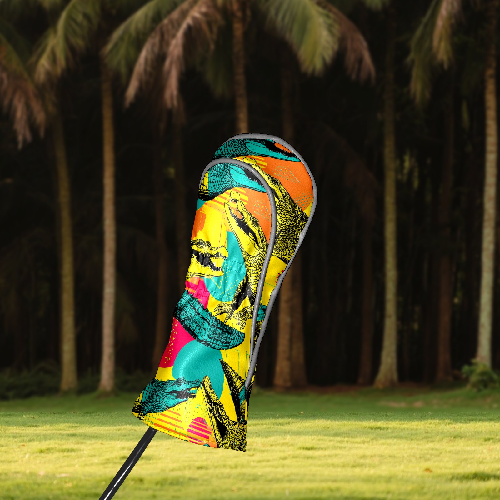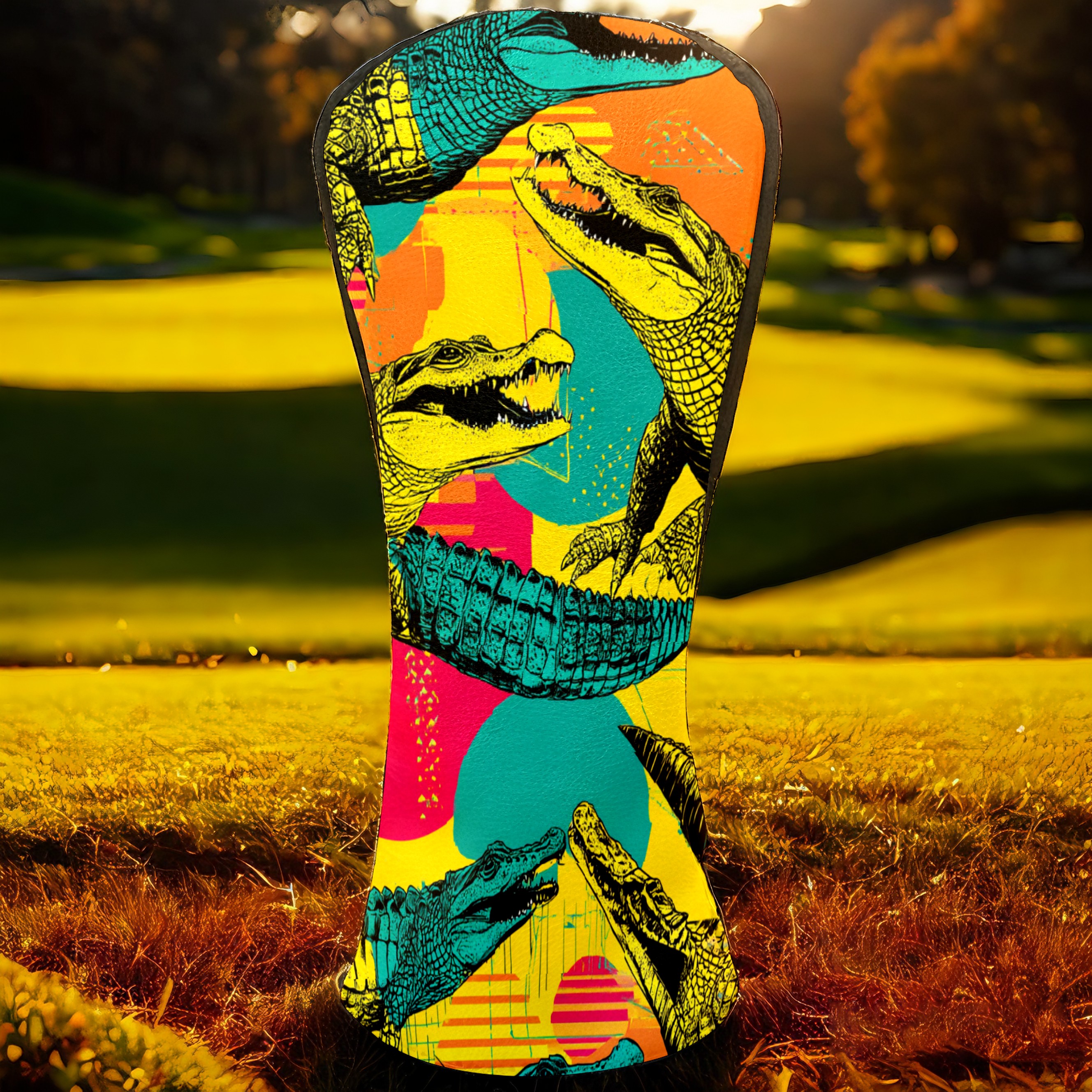 Counullo Golf Head Covers - Funny Multicolor Pop Art Crocodiles Driver Headcover, Durable PU Leather & Soft Velvet Lining, Secure Elastic Band, Perfect Christmas Golf Gift for Men