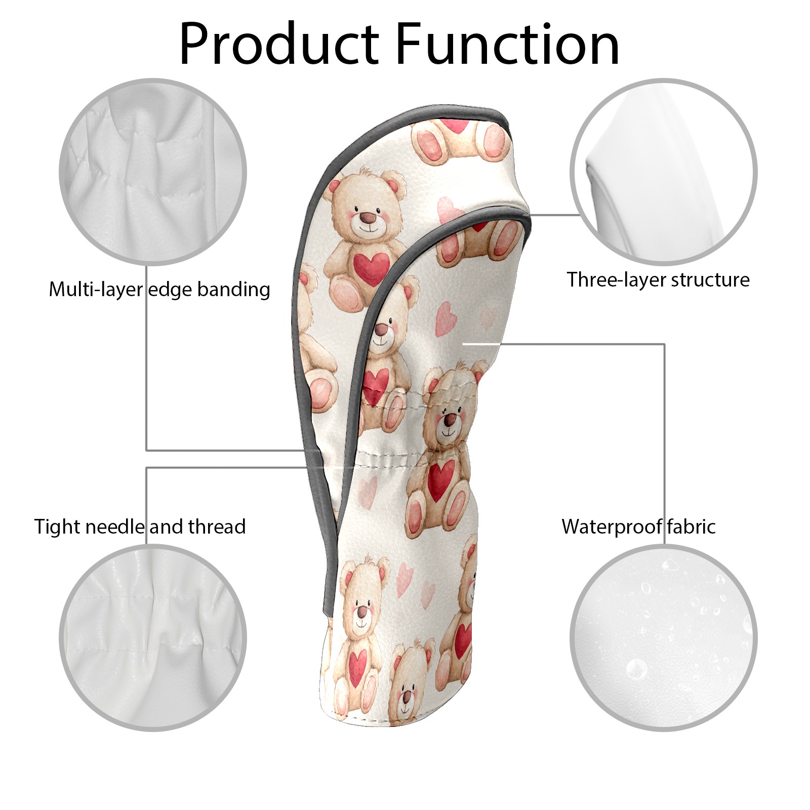 Counullo Golf Head Covers - Funny Beige Teddy Bears Driver Headcover, Durable PU Leather & Soft Velvet Lining, Secure Elastic Band, Perfect Christmas Golf Gift for Men
