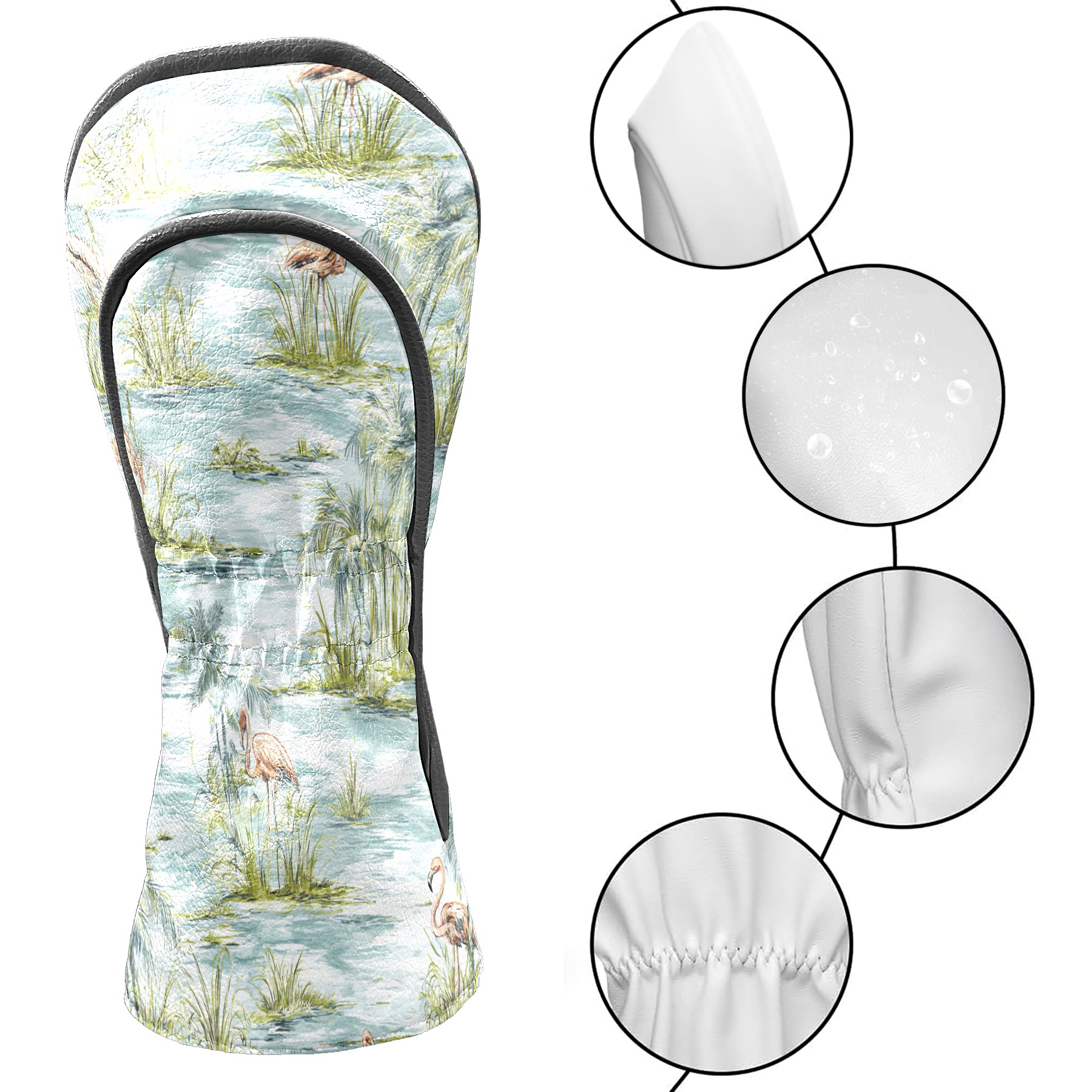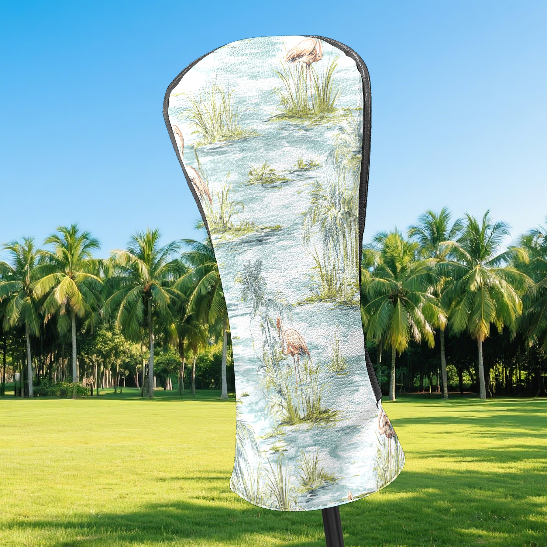Counullo Golf Head Covers - Funny Blue Watercolor Flamingos Driver Headcover, Durable PU Leather & Soft Velvet Lining, Secure Elastic Band, Perfect Christmas Golf Gift for Men