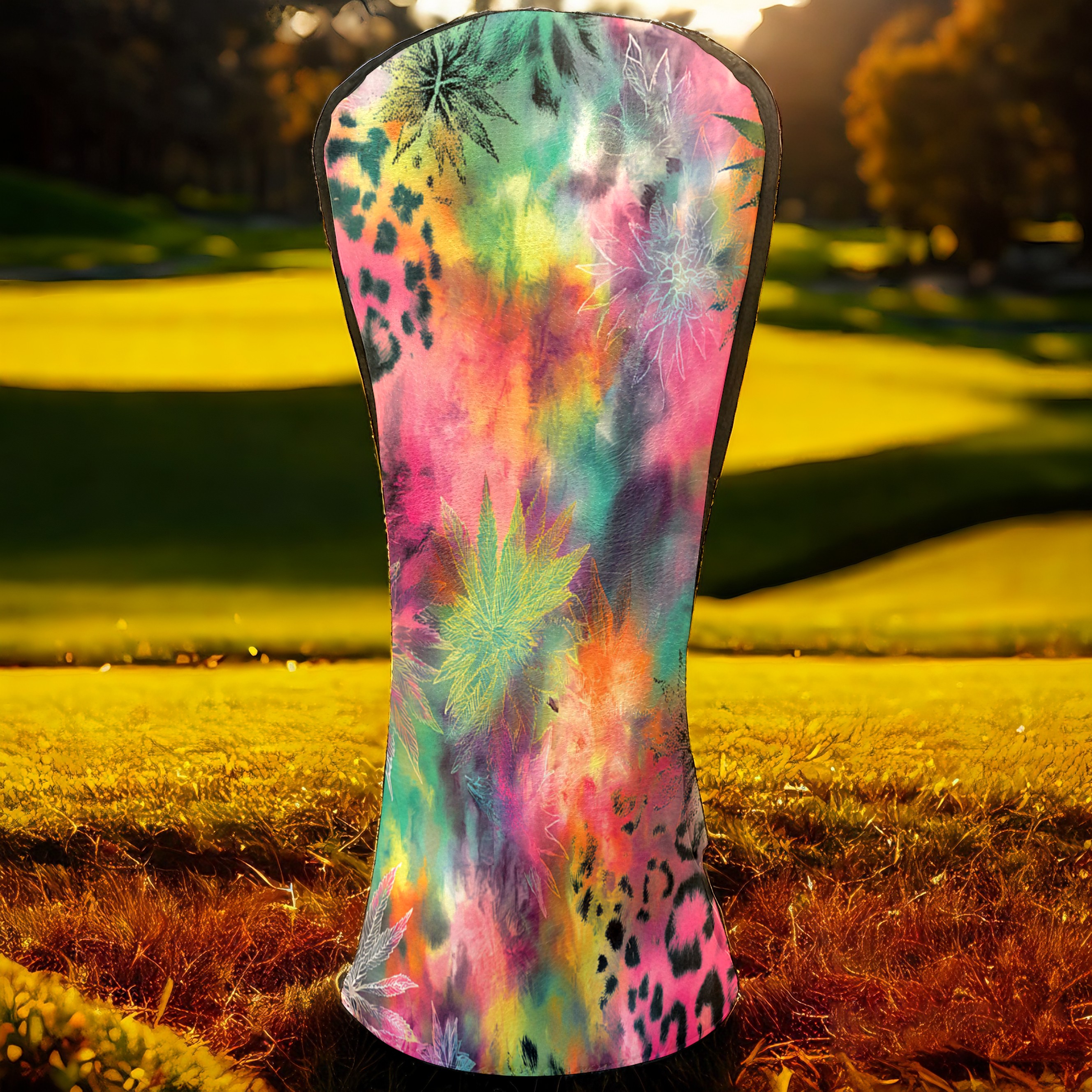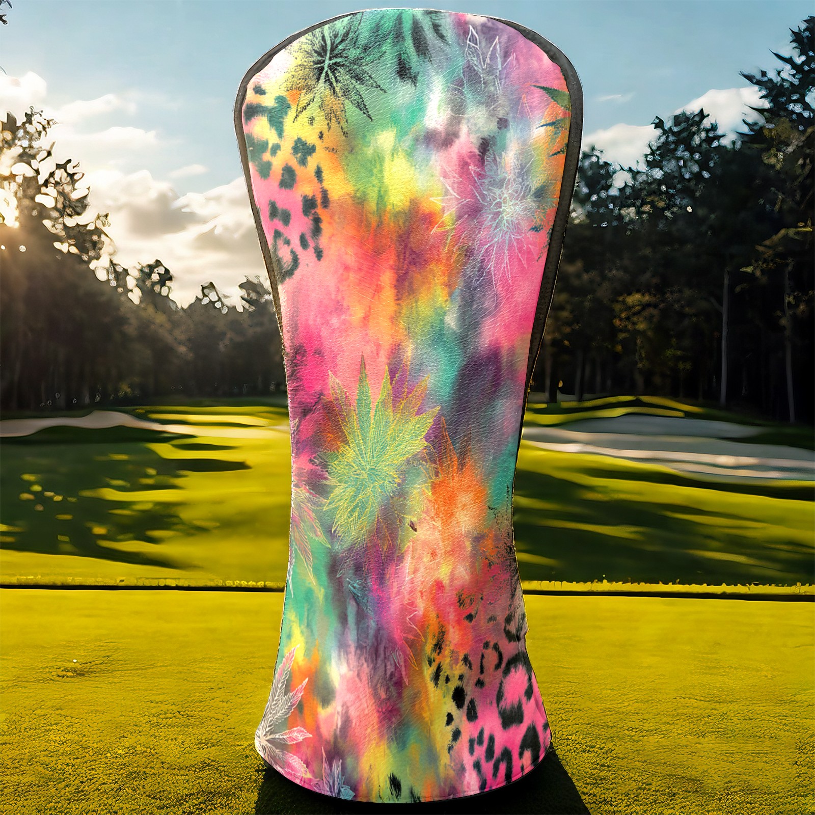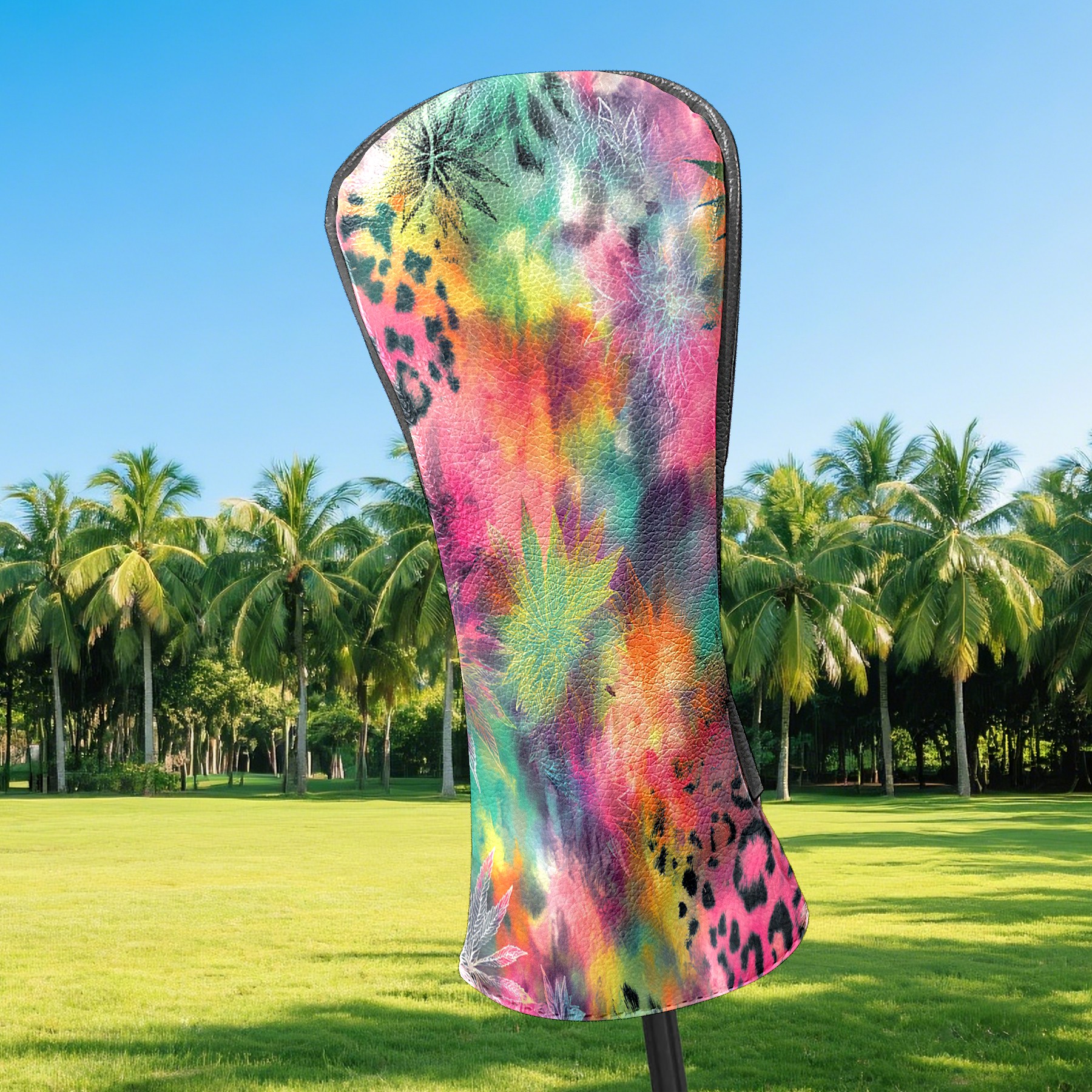 Counullo Golf Head Covers - Funny Multicolor Tie Dye Driver Headcover, Durable PU Leather & Soft Velvet Lining, Secure Elastic Band, Perfect Christmas Golf Gift for Men
