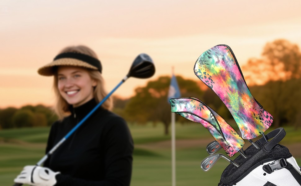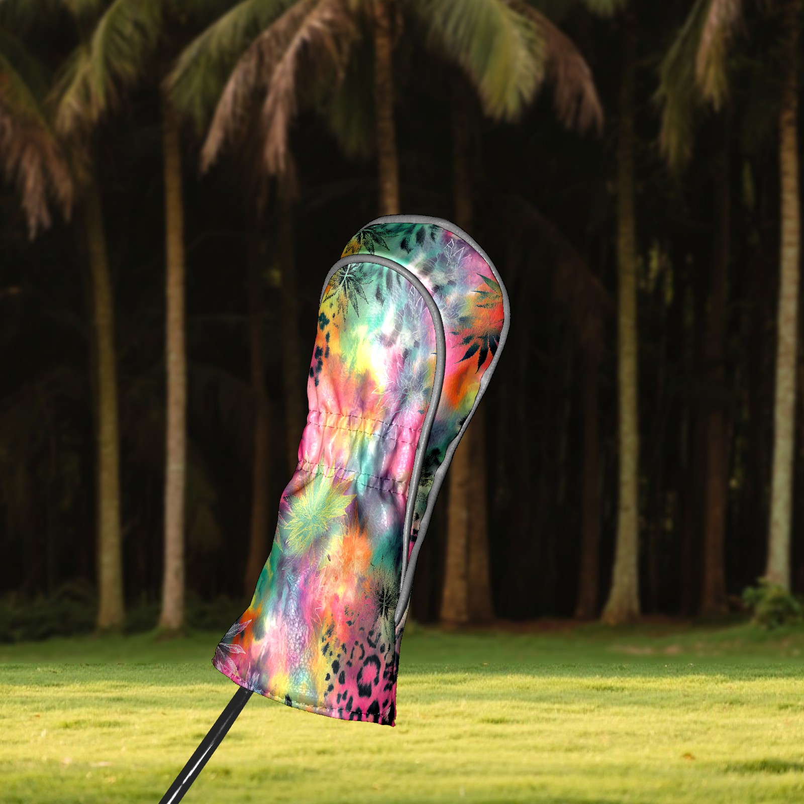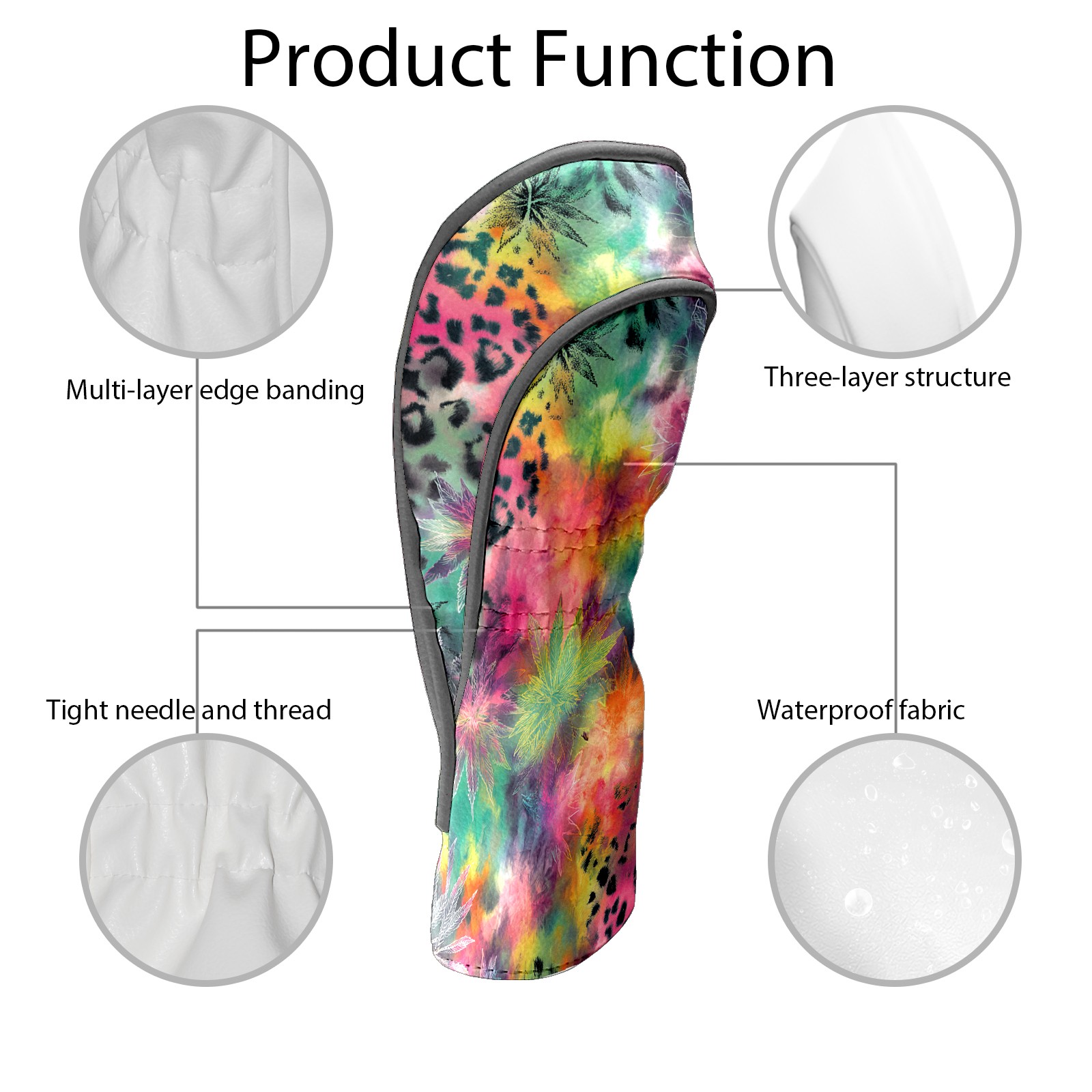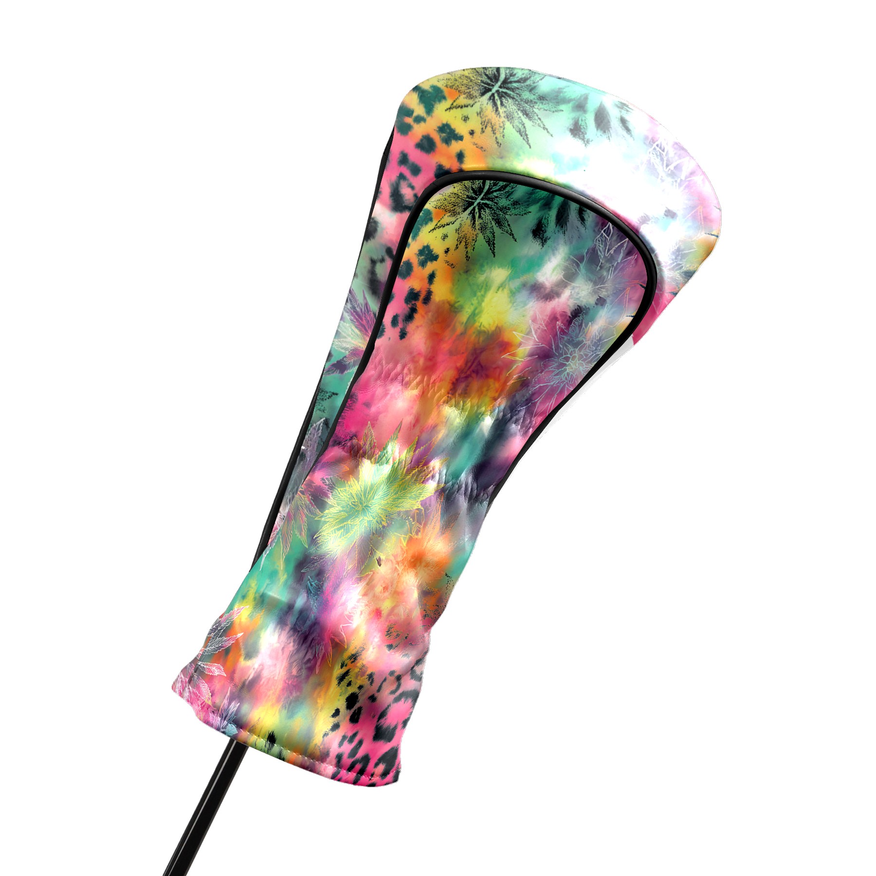 Counullo Golf Head Covers - Funny Multicolor Tie Dye Driver Headcover, Durable PU Leather & Soft Velvet Lining, Secure Elastic Band, Perfect Christmas Golf Gift for Men
