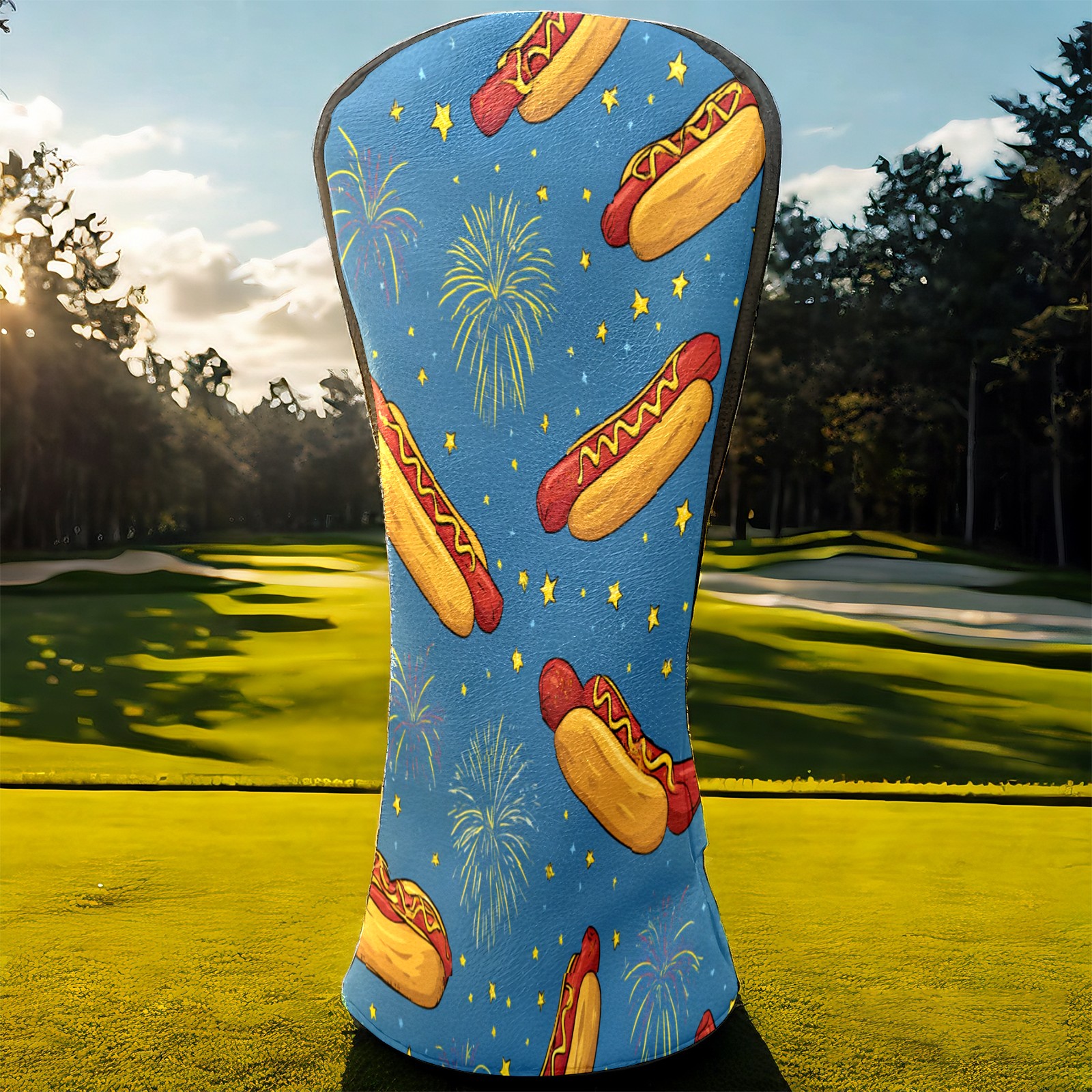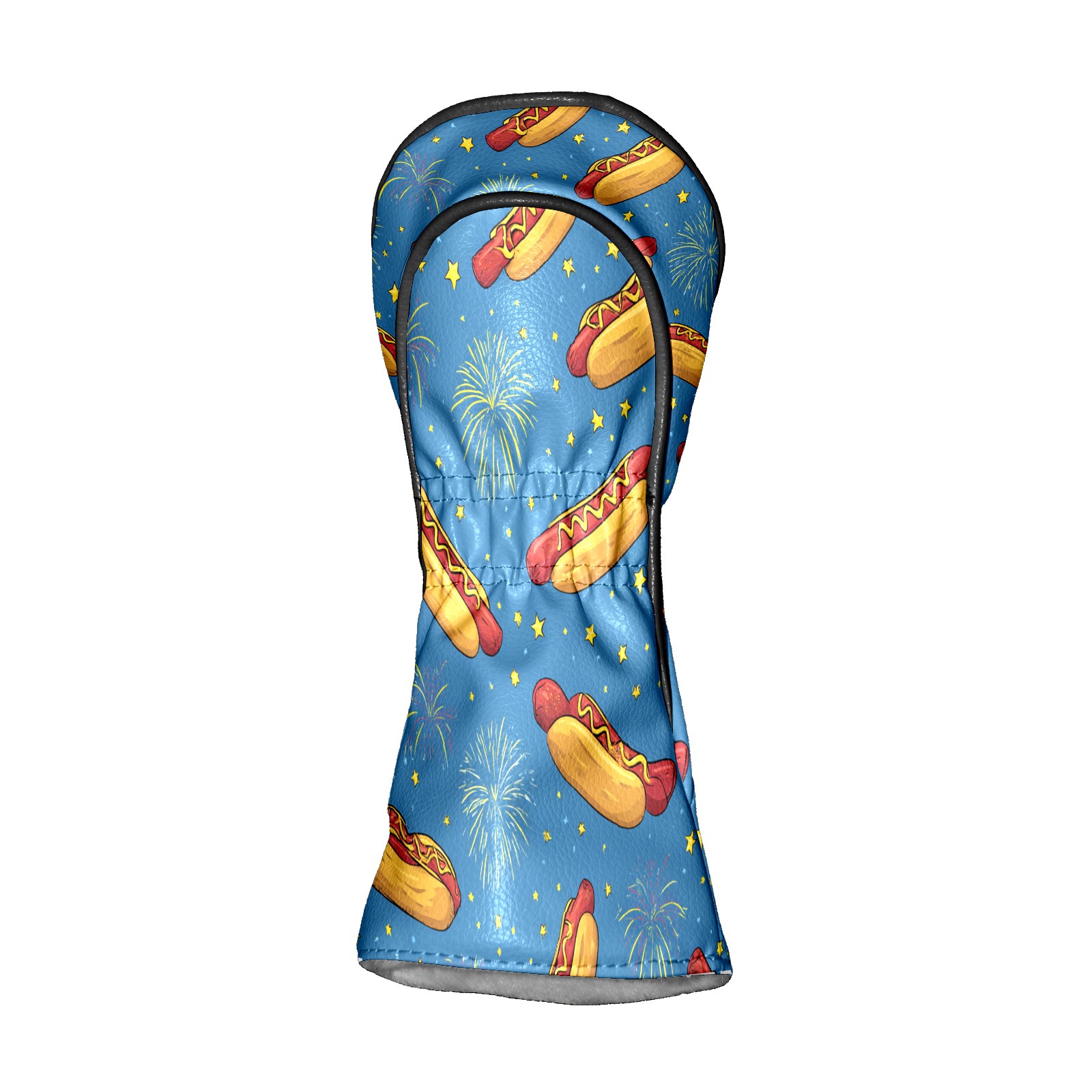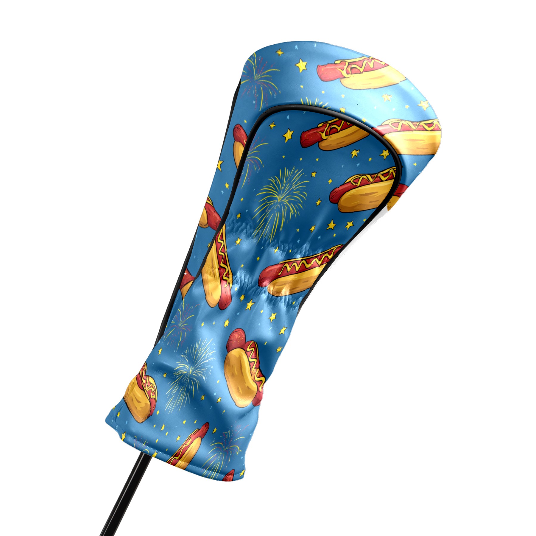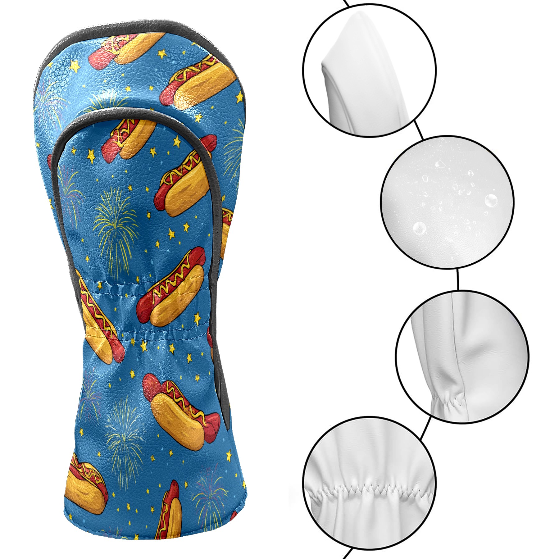 Counullo Golf Head Covers - Funny Blue Hotdogs Fireworks Driver Headcover, Durable PU Leather & Soft Velvet Lining, Secure Elastic Band, Perfect Christmas Golf Gift for Men