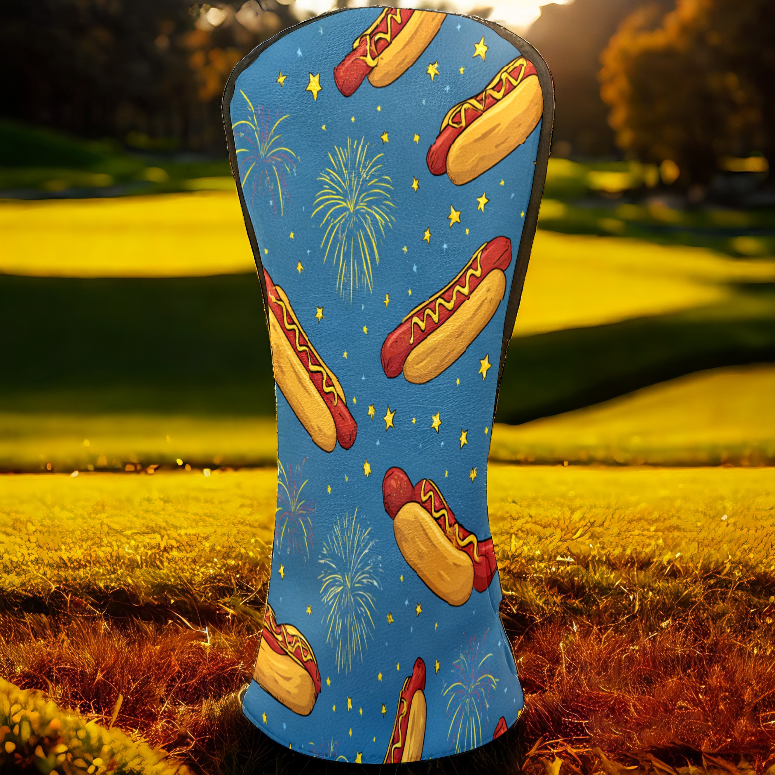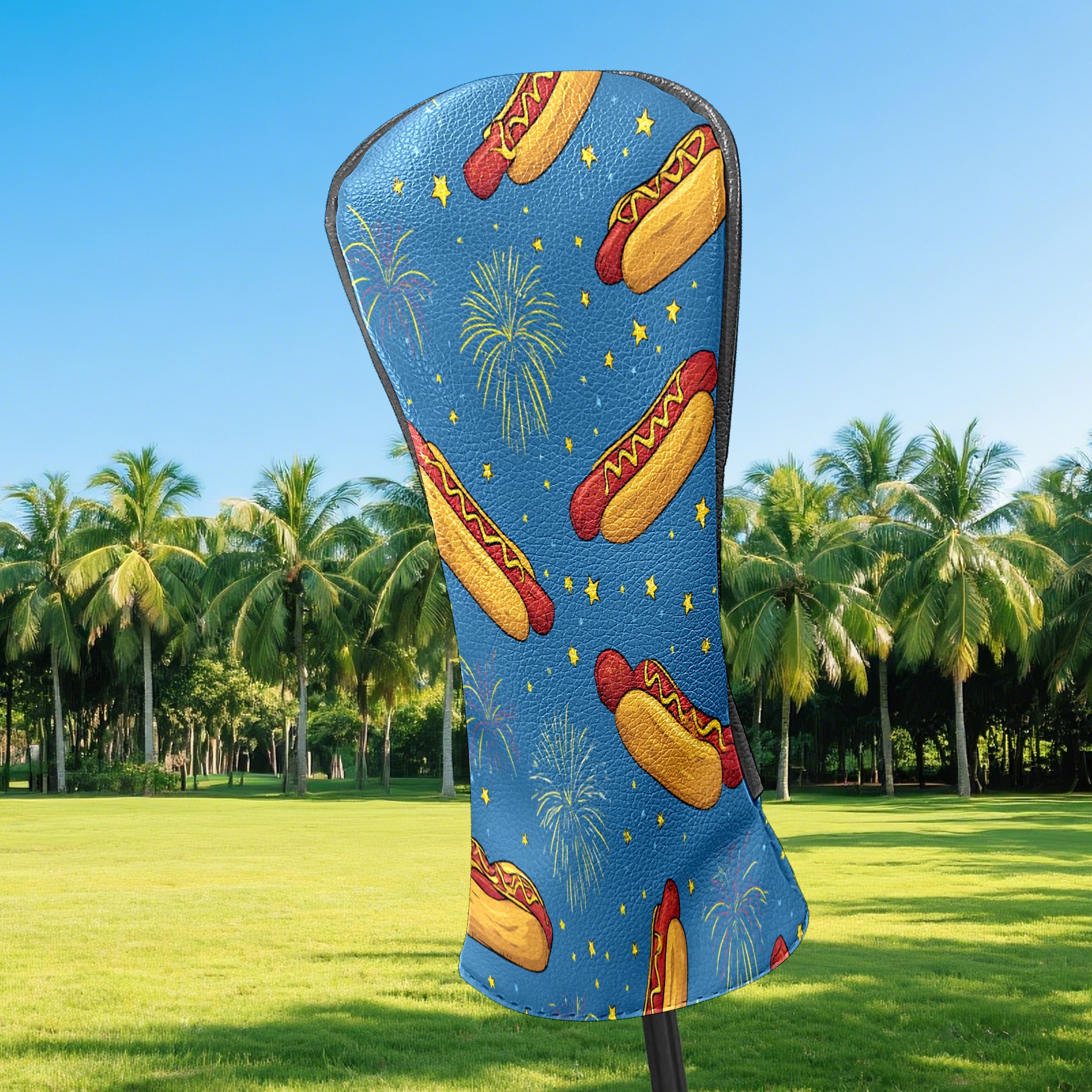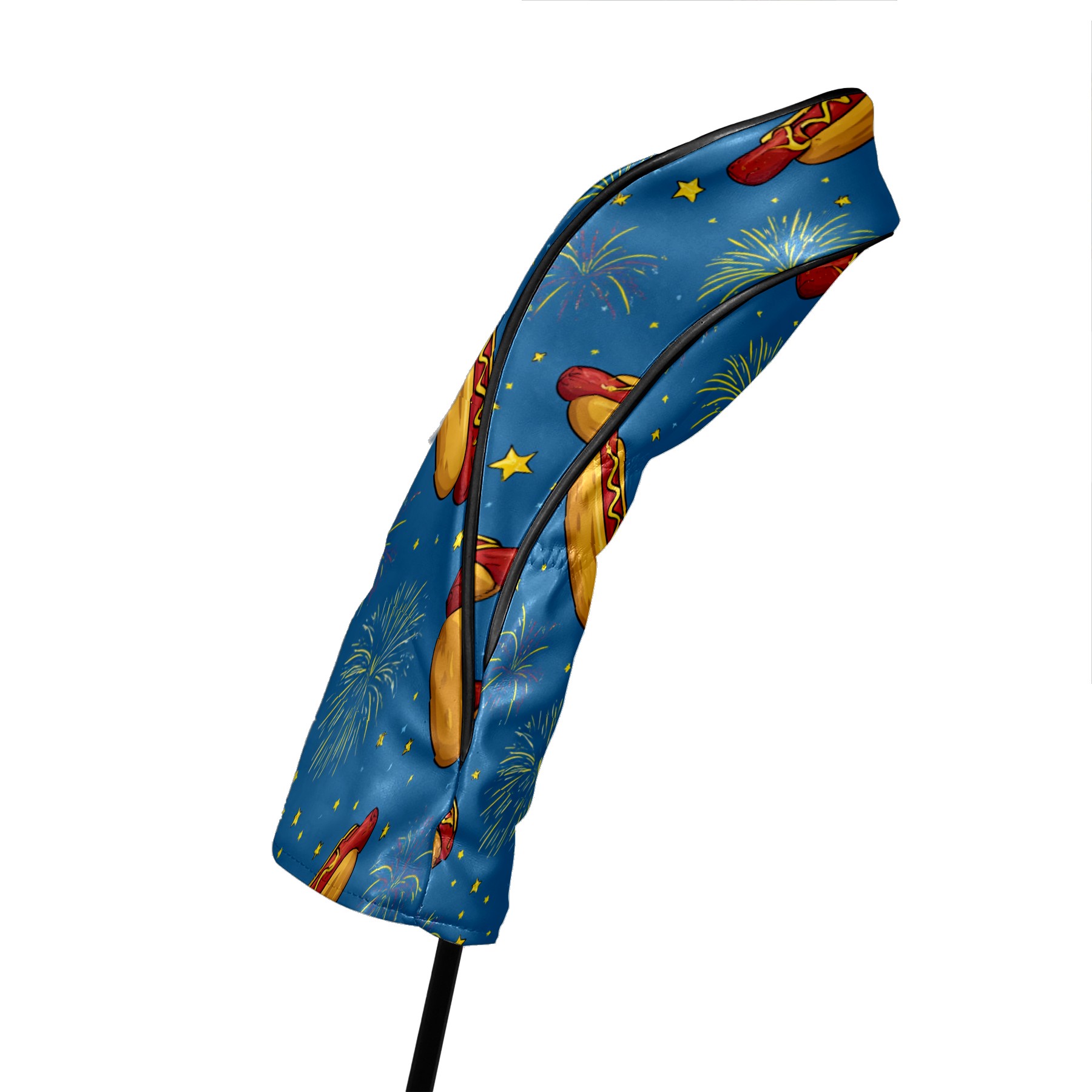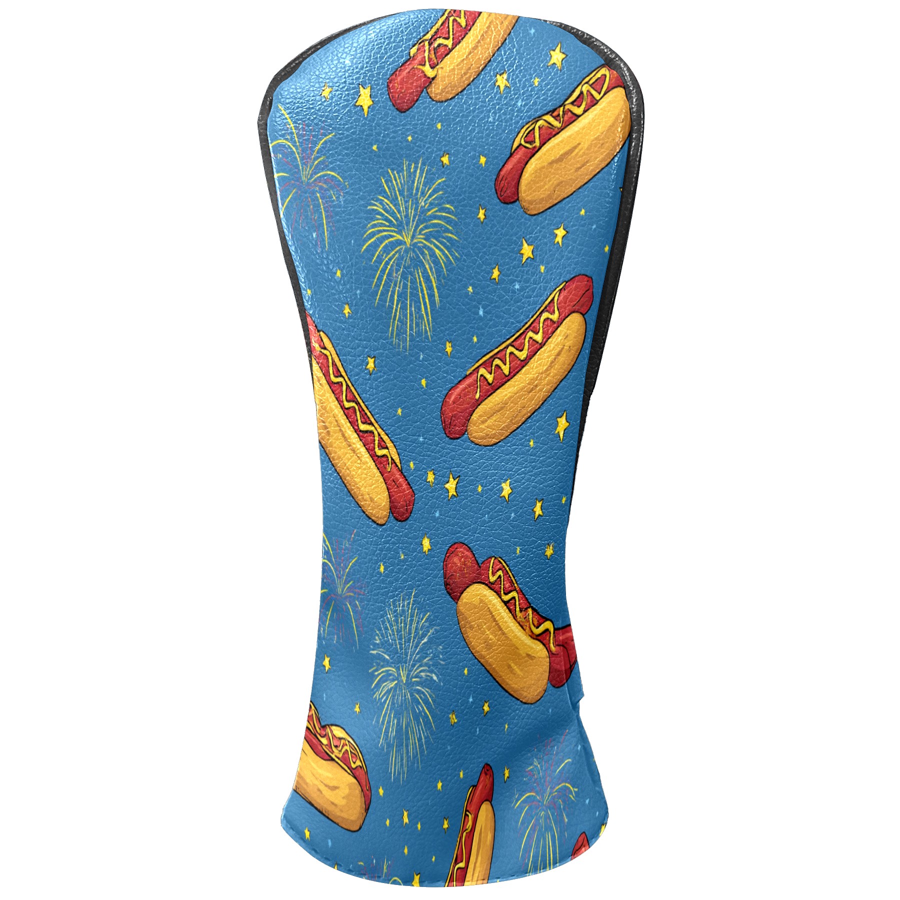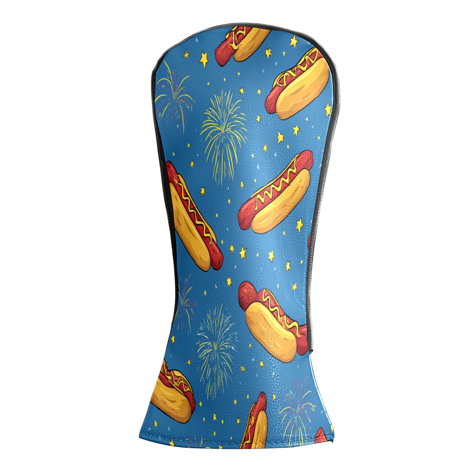 Counullo Golf Head Covers - Funny Blue Hotdogs Fireworks Driver Headcover, Durable PU Leather & Soft Velvet Lining, Secure Elastic Band, Perfect Christmas Golf Gift for Men