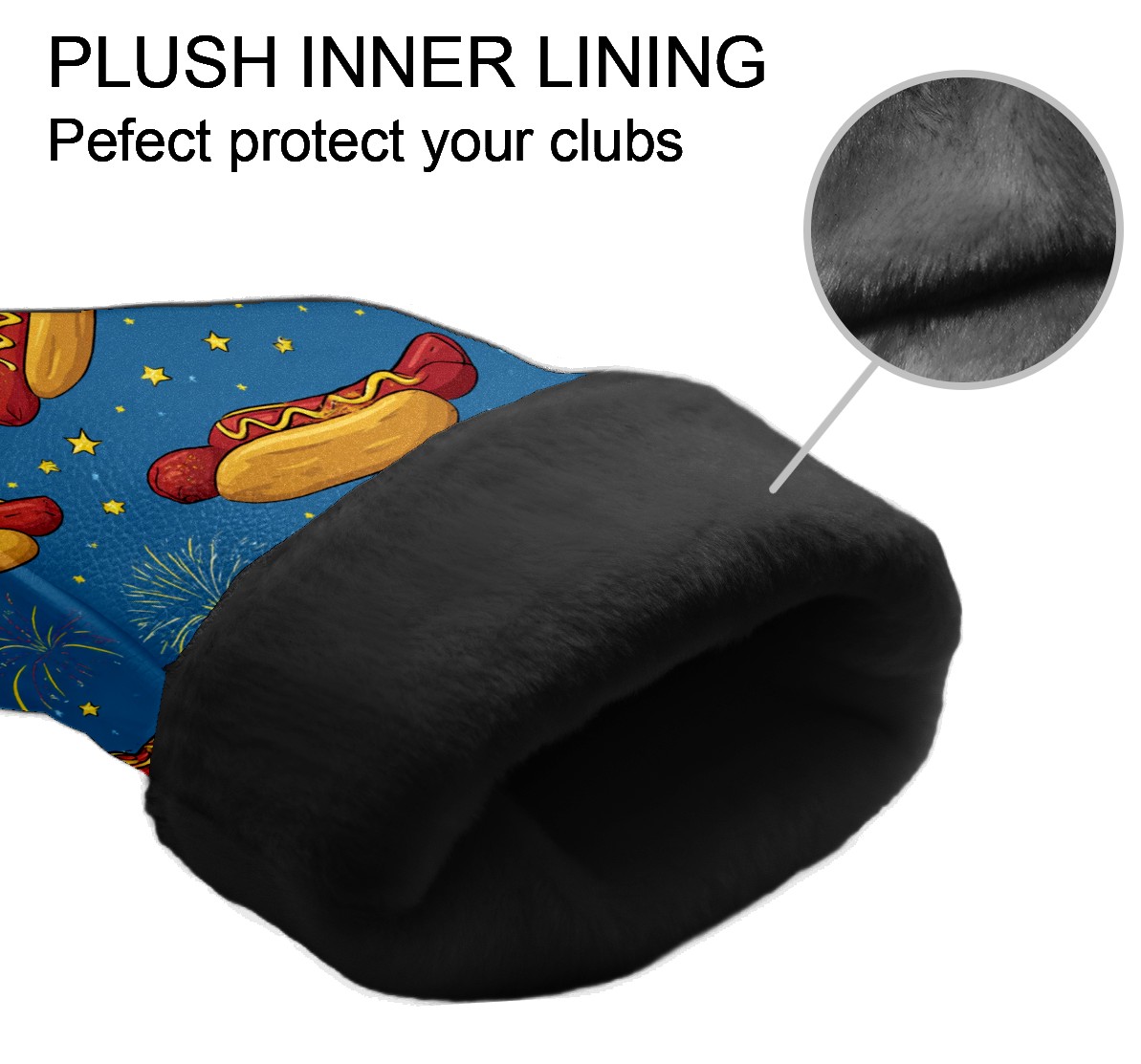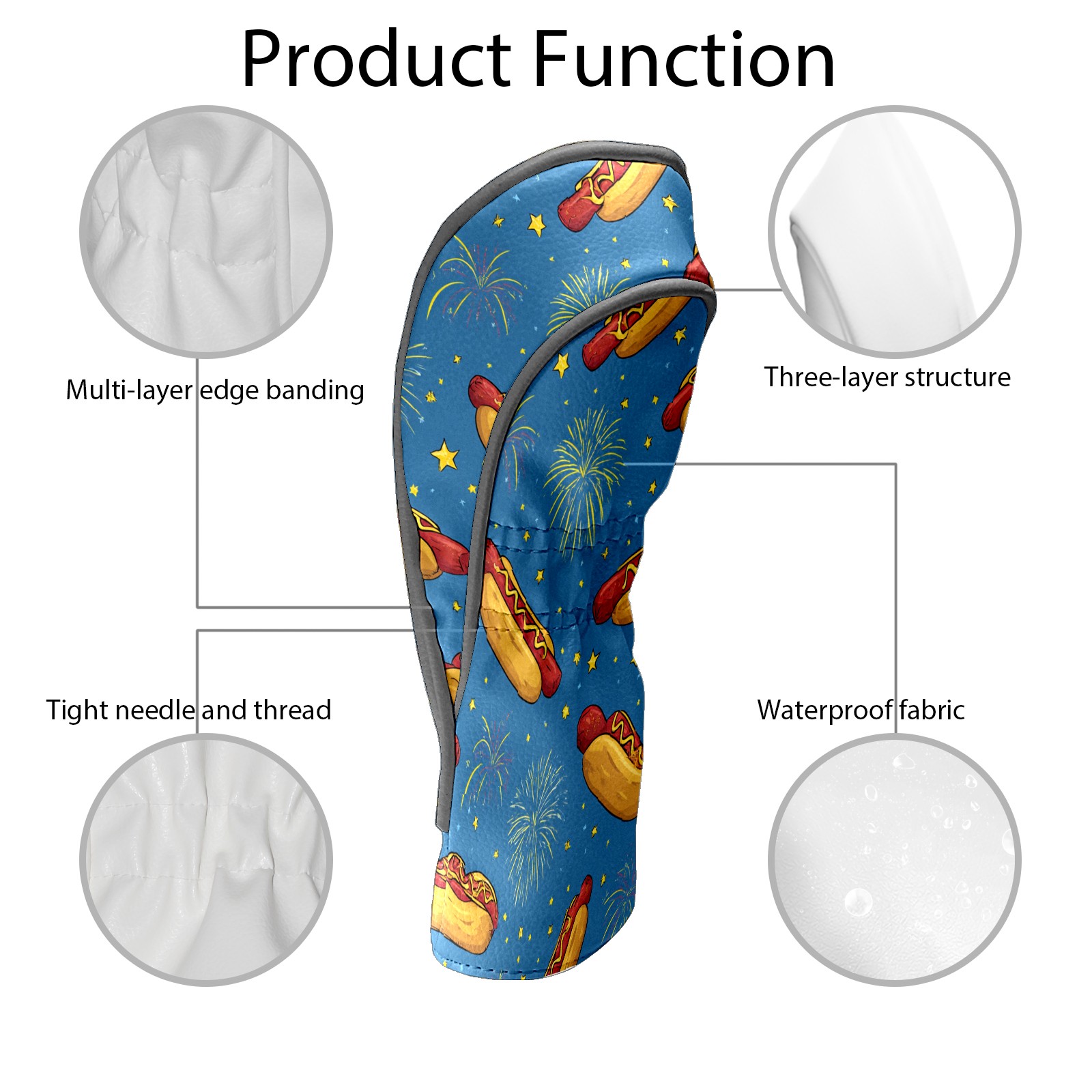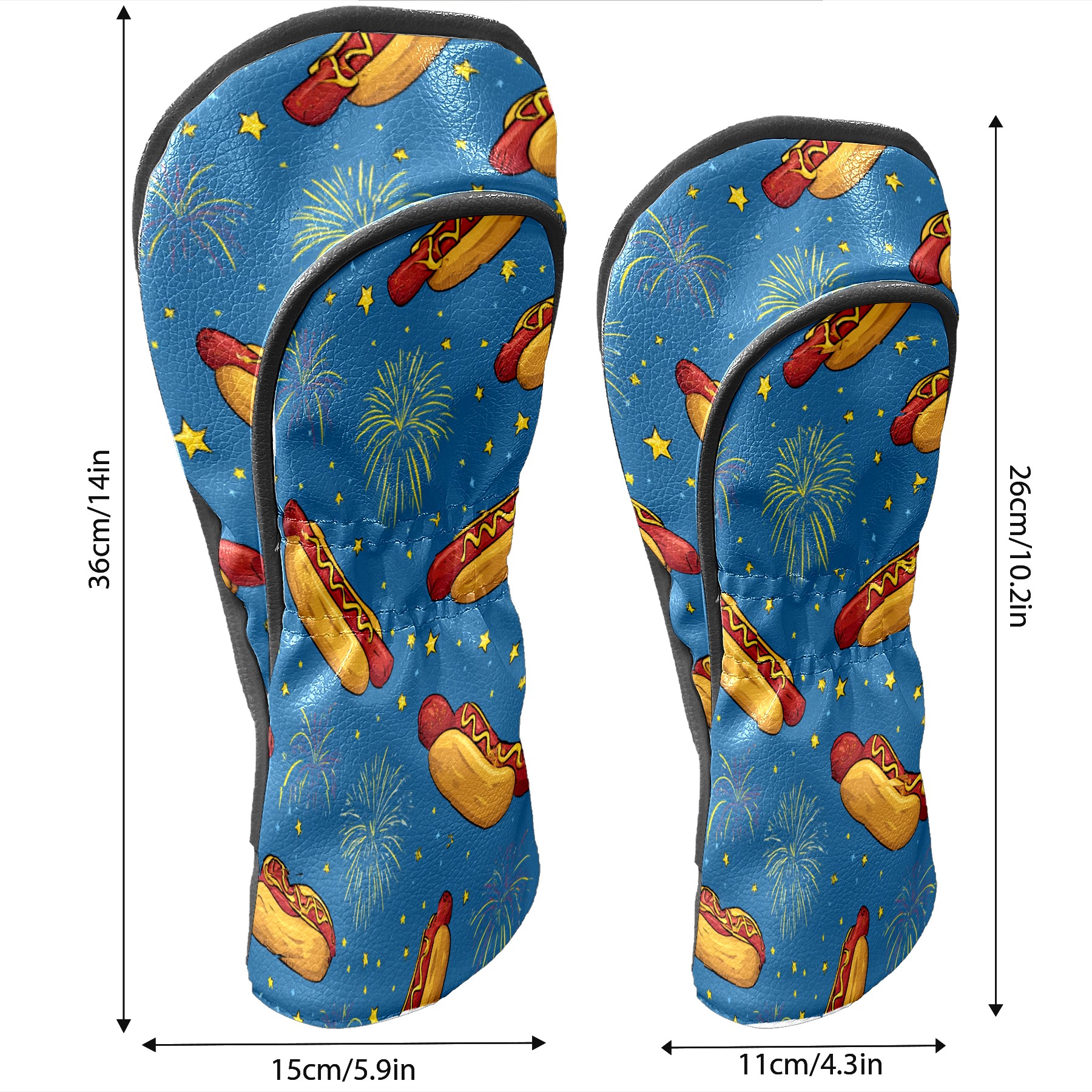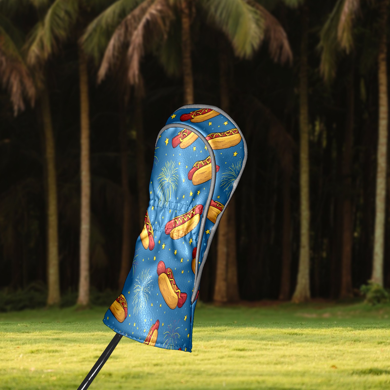 Counullo Golf Head Covers - Funny Blue Hotdogs Fireworks Driver Headcover, Durable PU Leather & Soft Velvet Lining, Secure Elastic Band, Perfect Christmas Golf Gift for Men