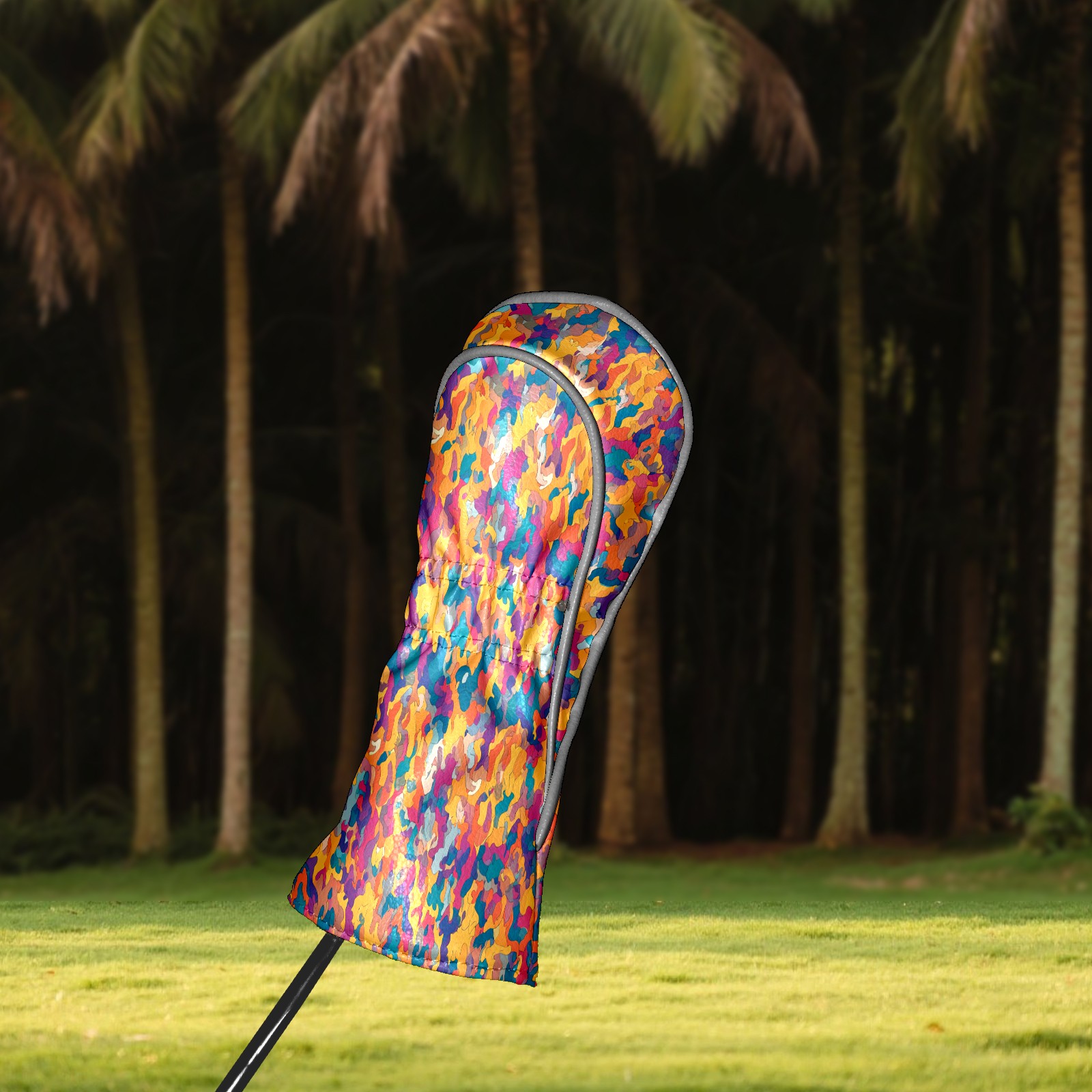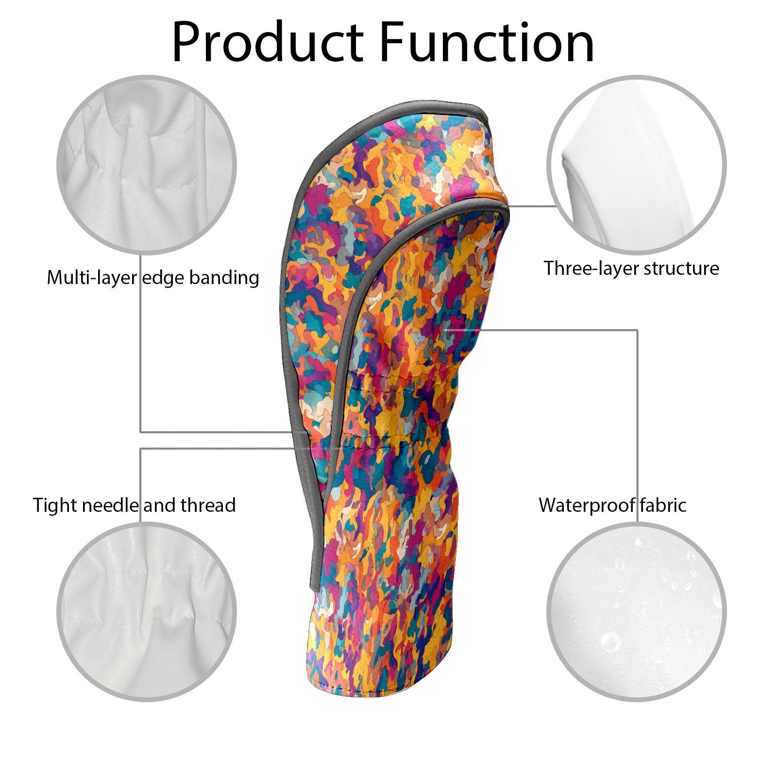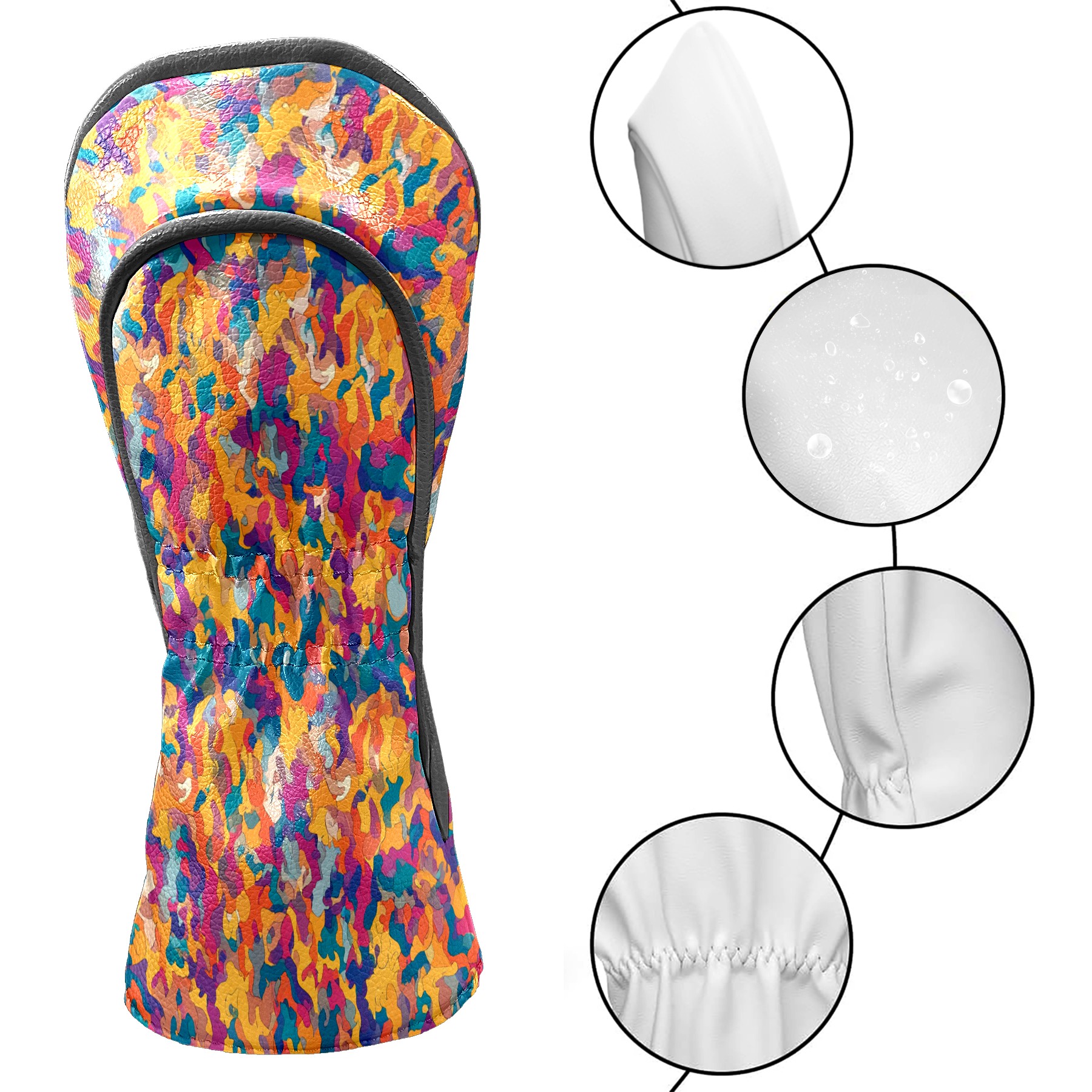 Counullo Golf Head Covers - Funny Multicolor Abstract Driver Headcover, Durable PU Leather & Soft Velvet Lining, Secure Elastic Band, Perfect Christmas Golf Gift for Men