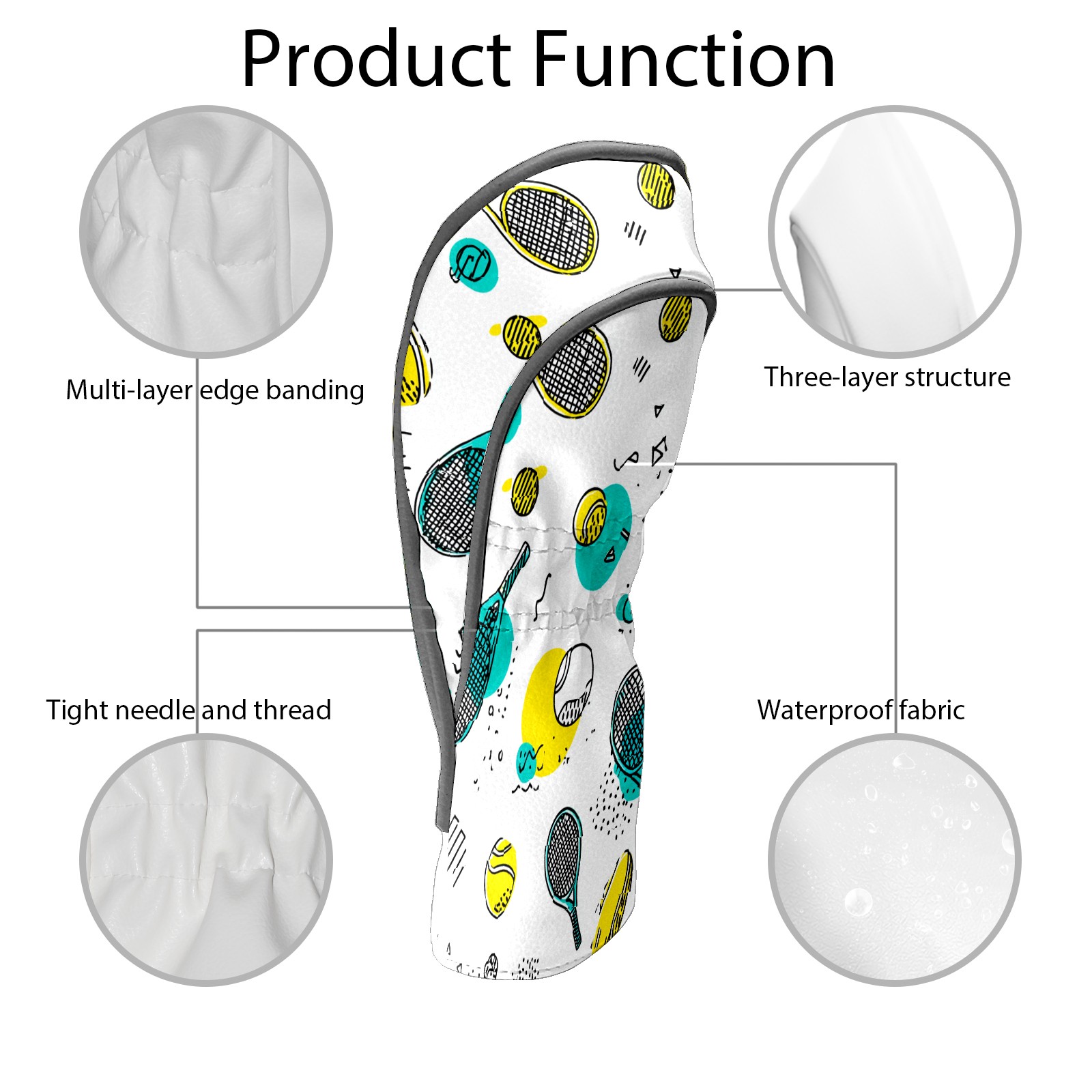 Counullo Golf Head Covers - Funny White Sports Tennis Driver Headcover, Durable PU Leather & Soft Velvet Lining, Secure Elastic Band, Perfect Christmas Golf Gift for Men
