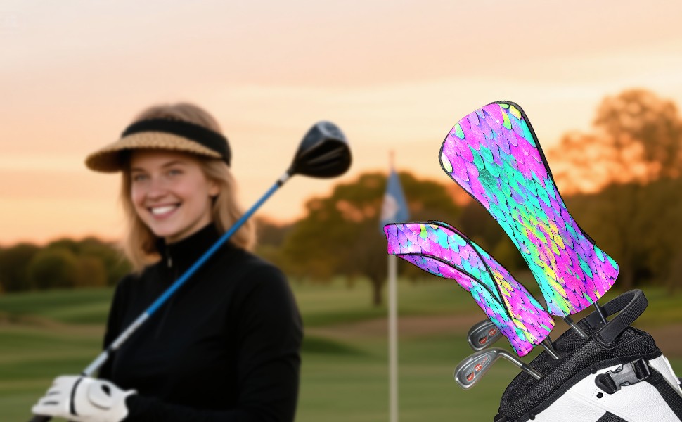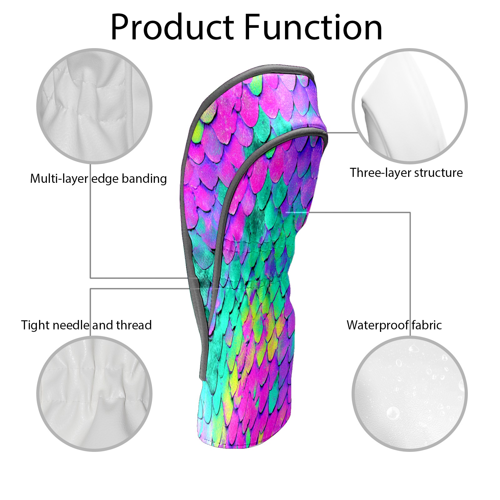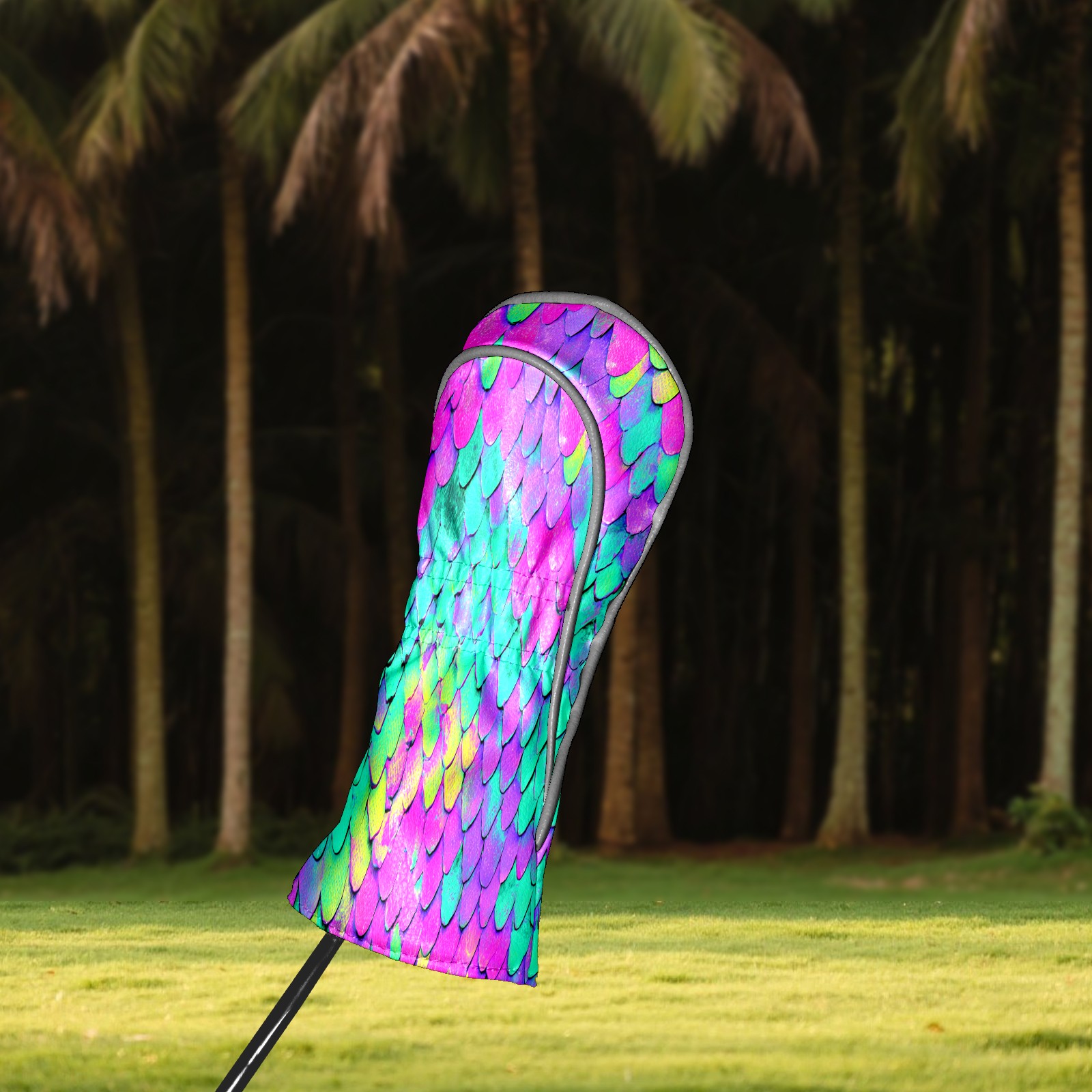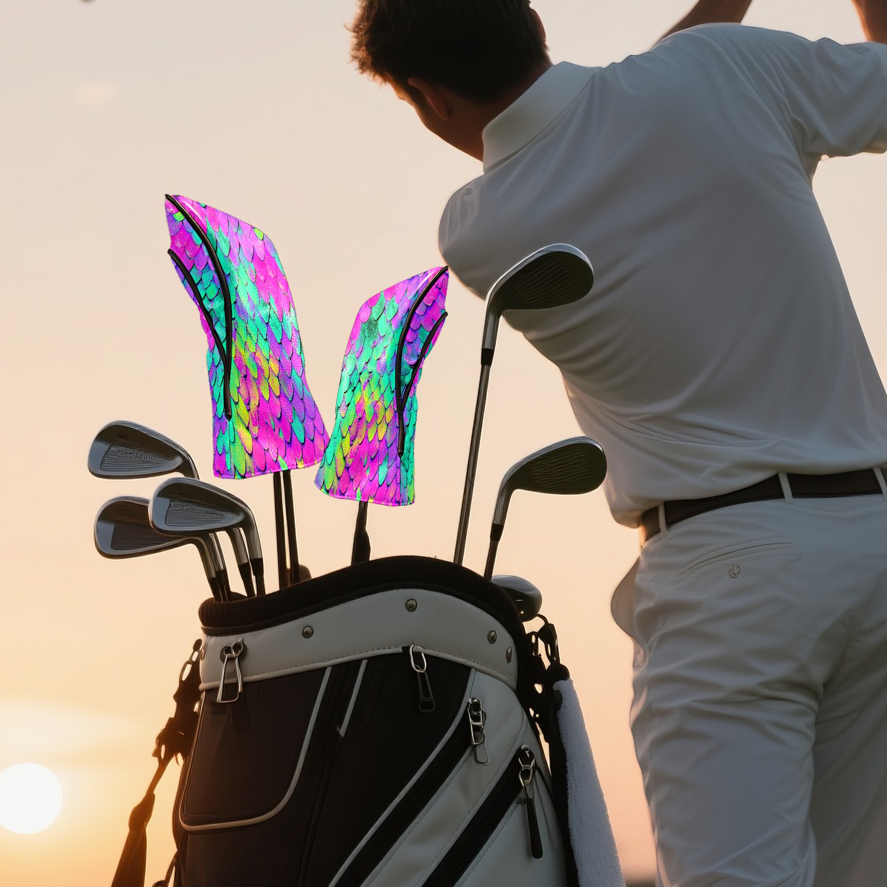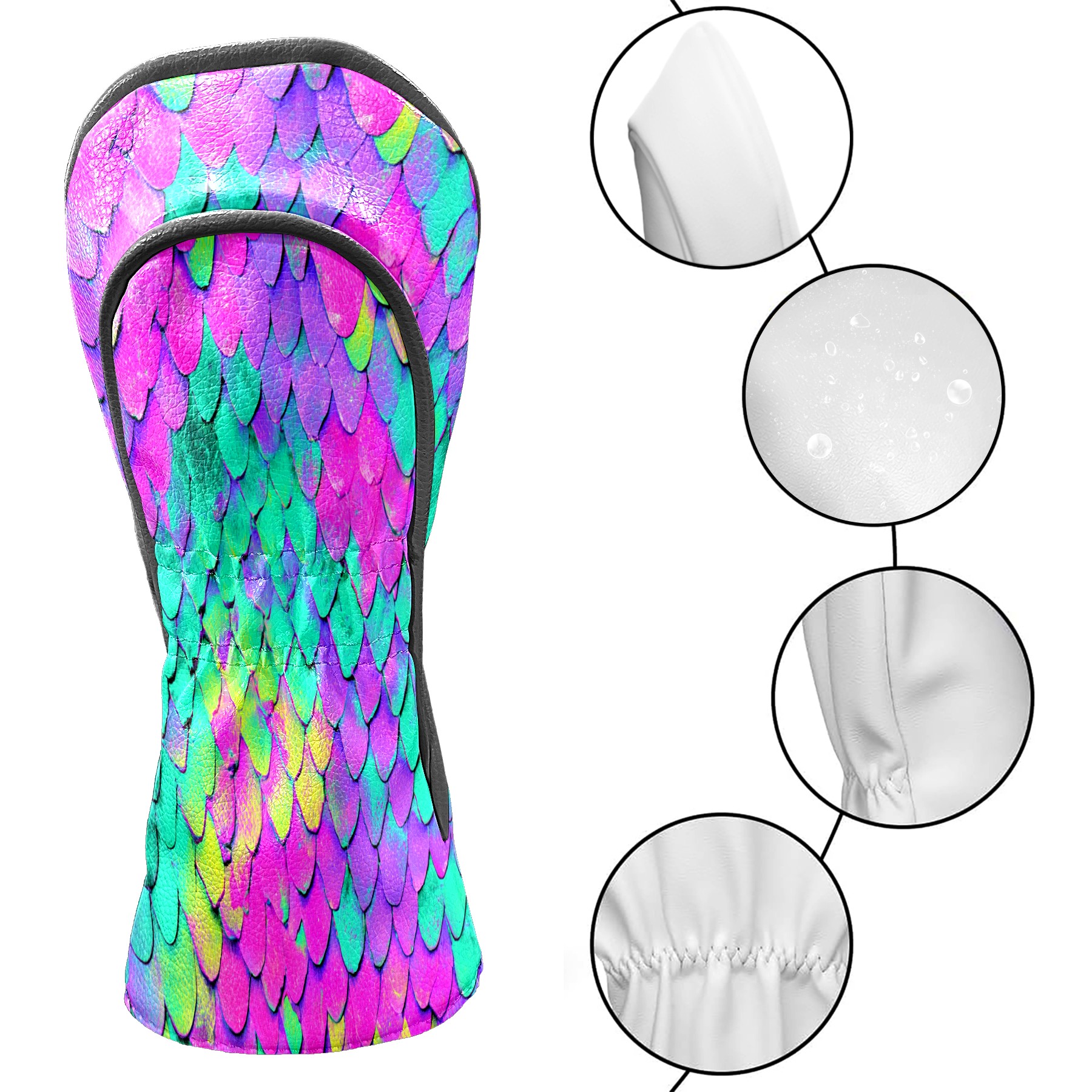 Counullo Golf Head Covers - Funny Multicolor Scales Driver Headcover, Durable PU Leather & Soft Velvet Lining, Secure Elastic Band, Perfect Christmas Golf Gift for Men