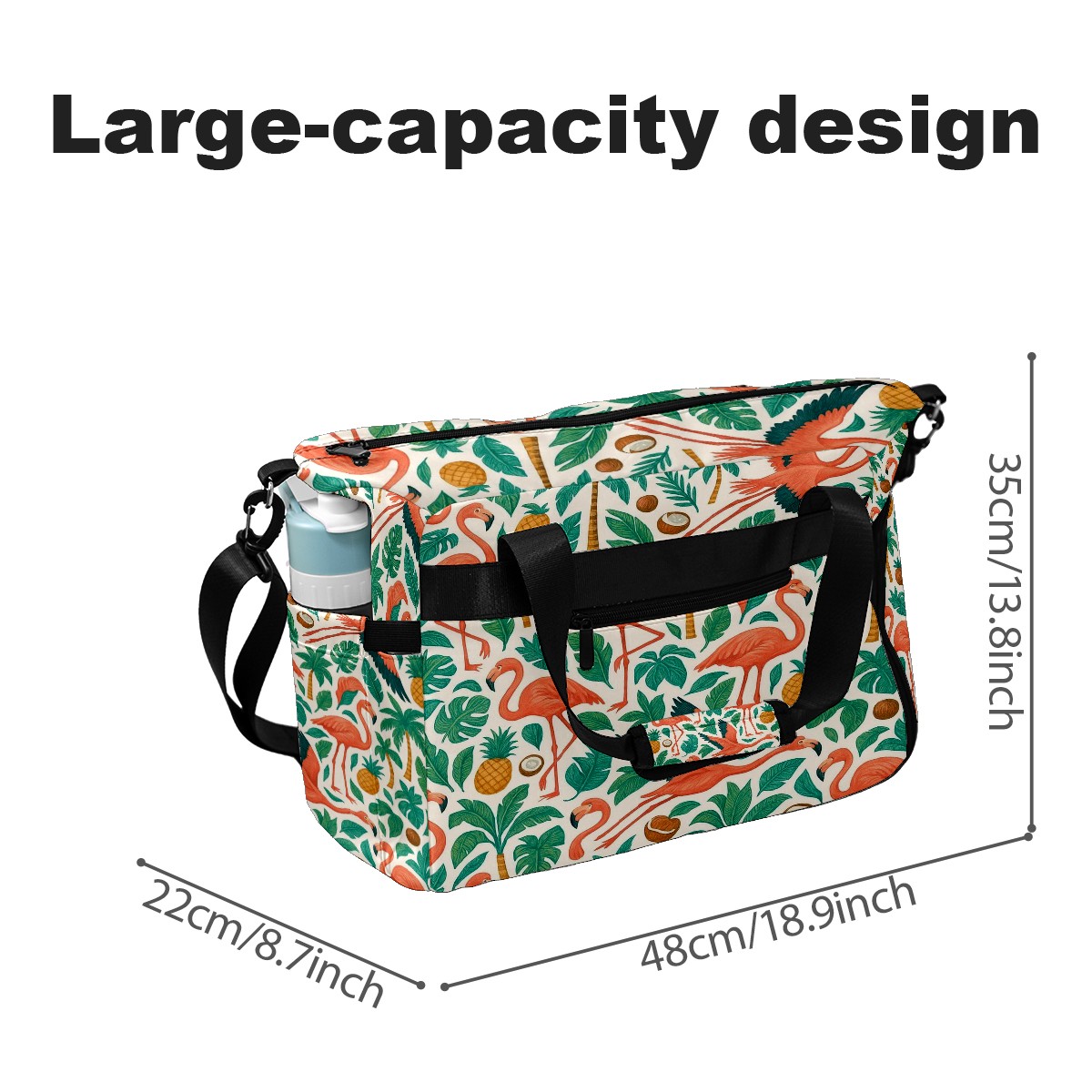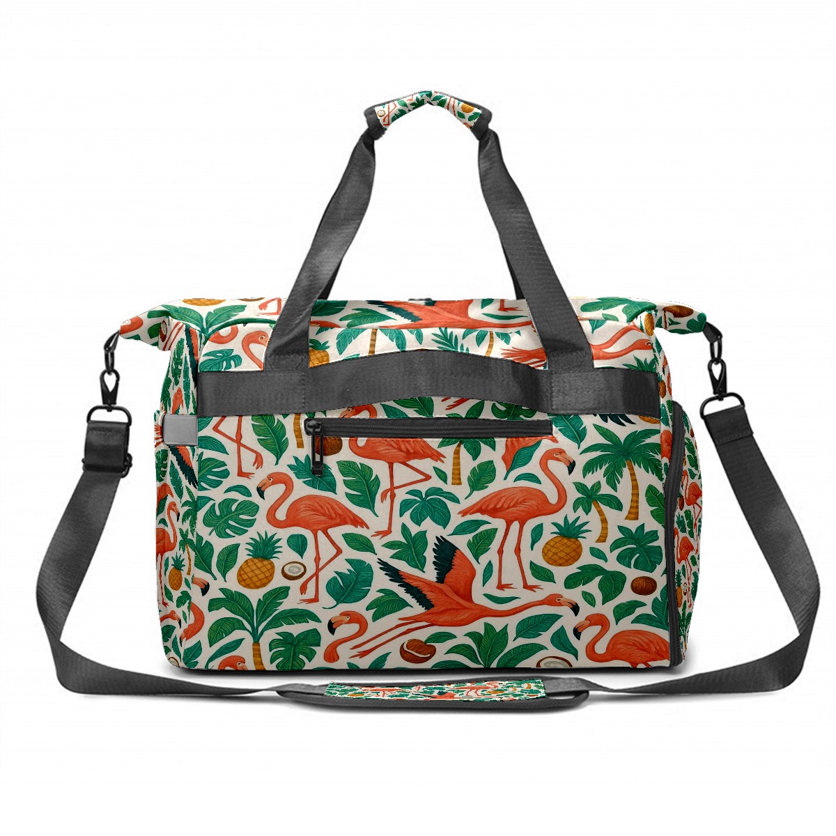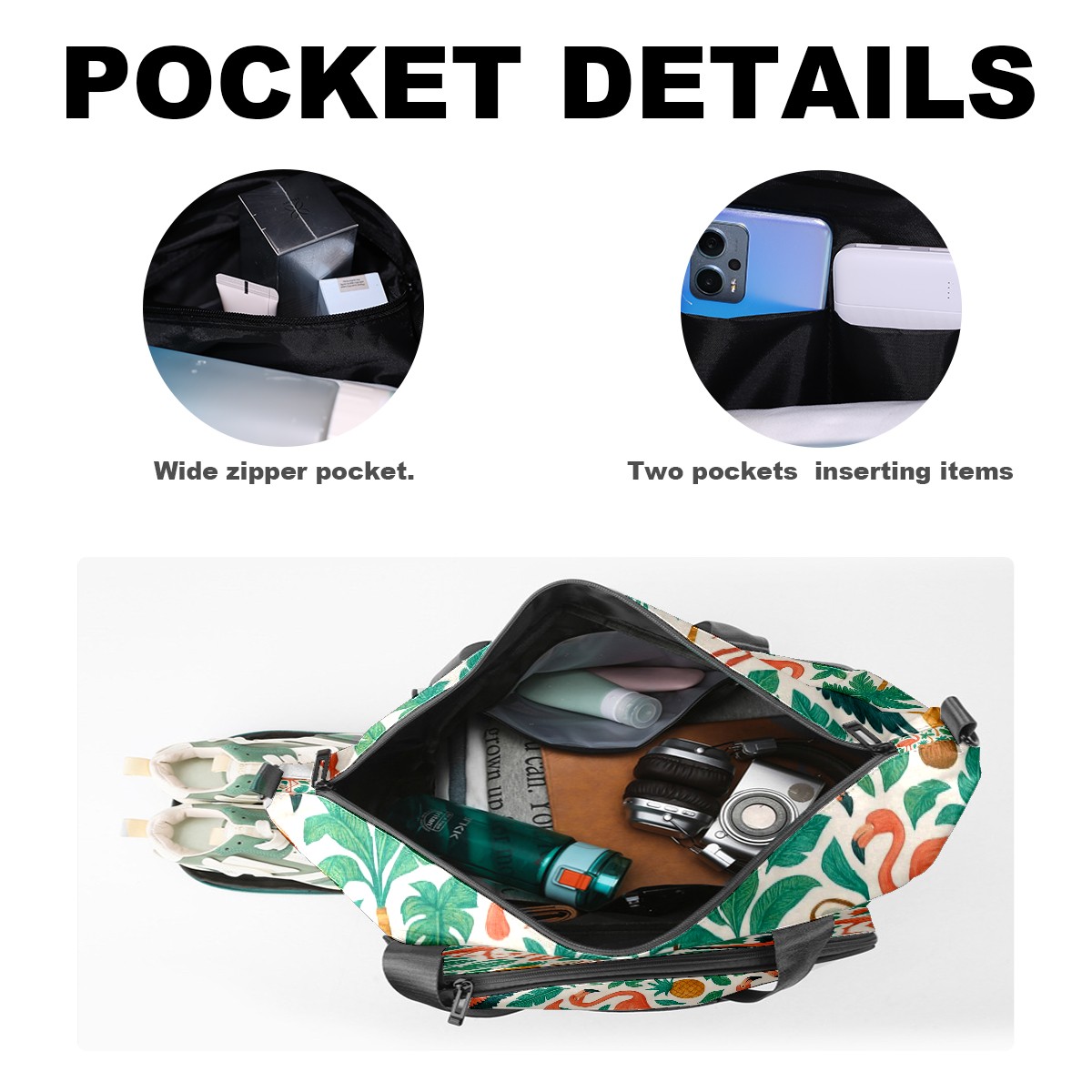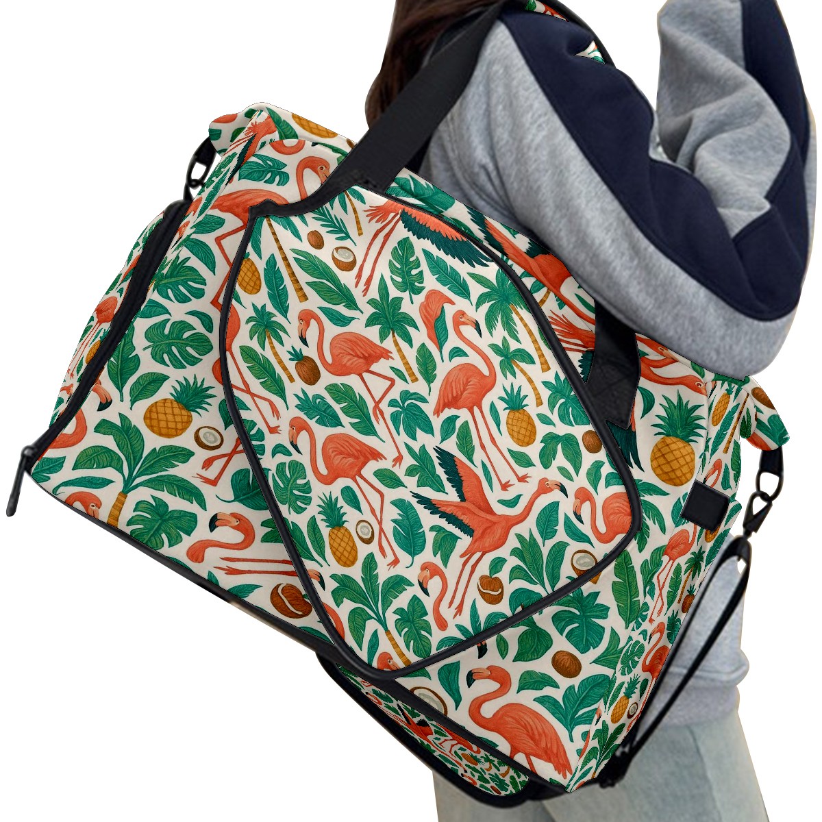 Women's Tennis Bag Large Capacity - Ventilated Shoe Compartment & Waterproof Wet Pocket, Multi-Functional Gym Duffel Bag for Tennis, Yoga, Travel (Green Tropical Flamingos)