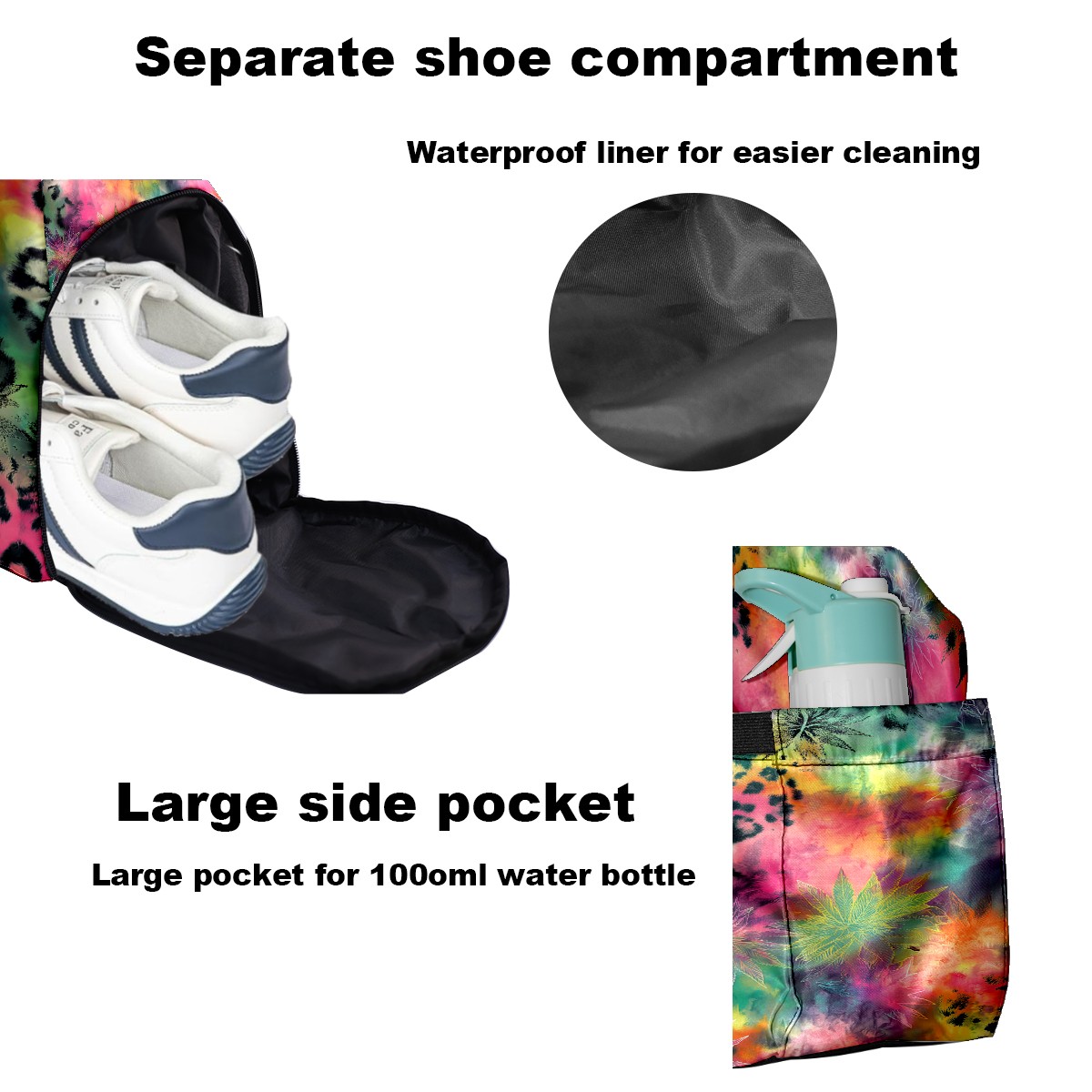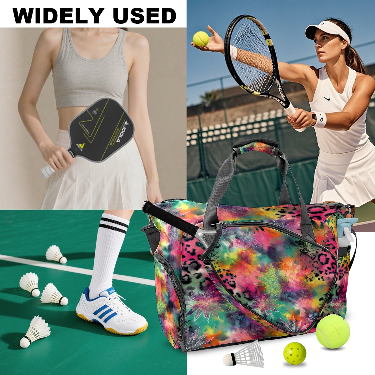 Women's Tennis Bag Large Capacity - Ventilated Shoe Compartment & Waterproof Wet Pocket, Multi-Functional Gym Duffel Bag for Tennis, Yoga, Travel (Multicolor Tie Dye)