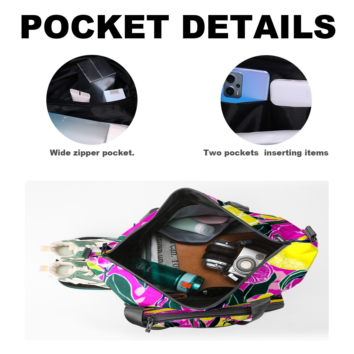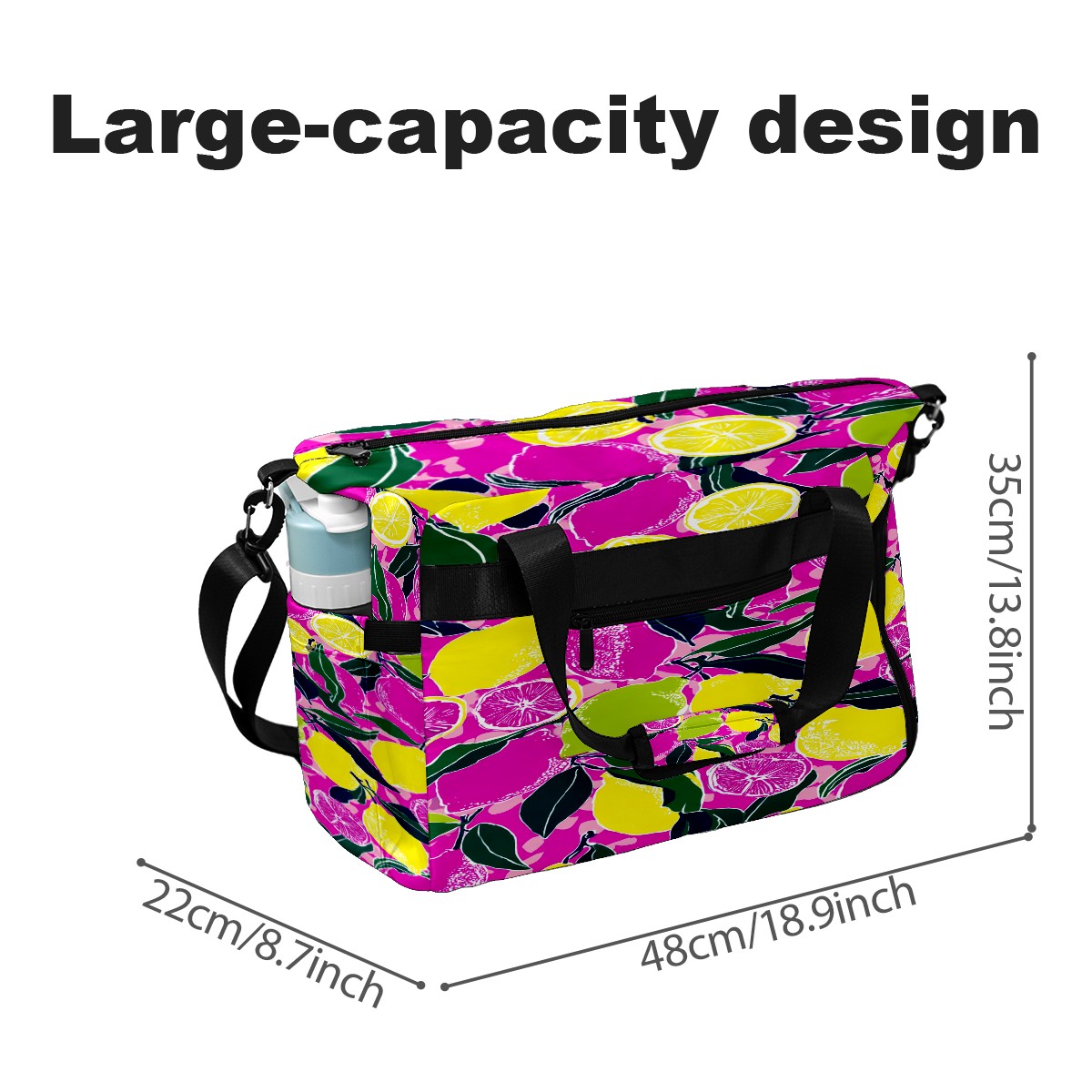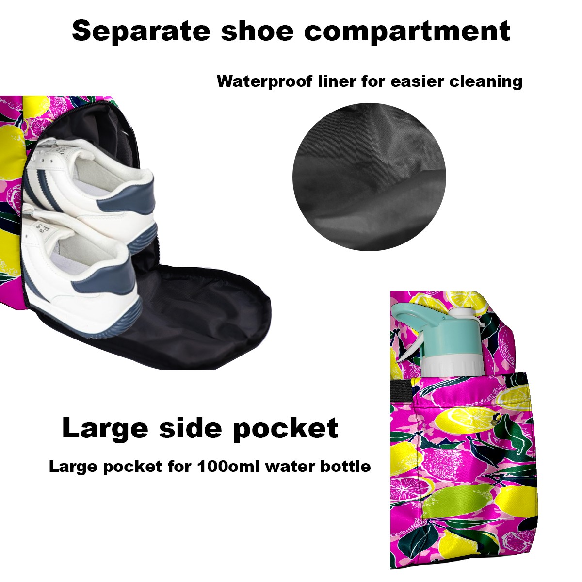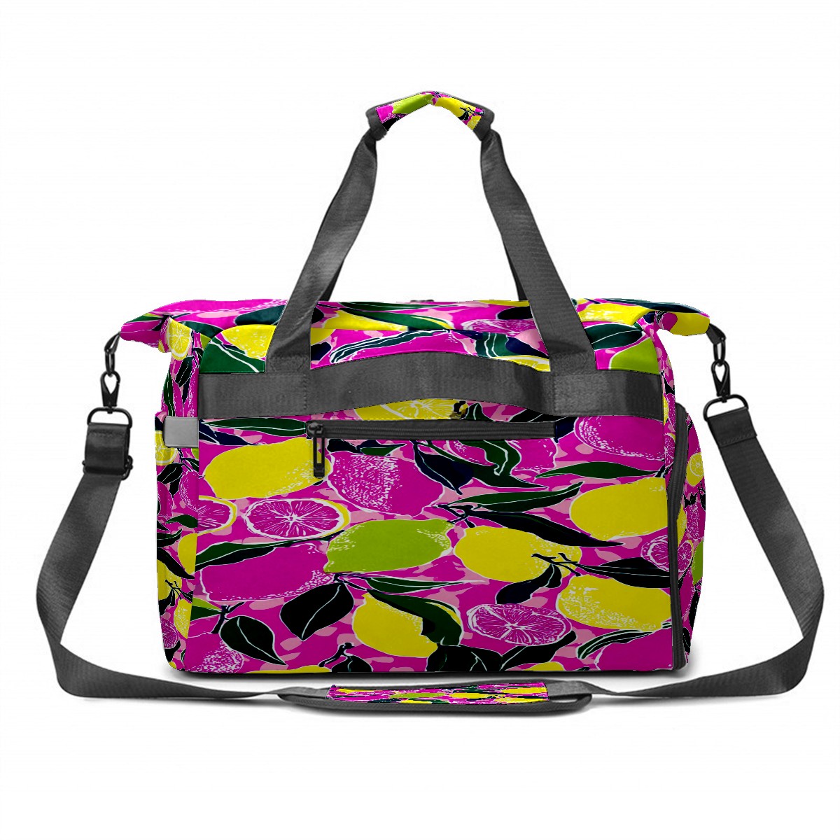 Women's Tennis Bag Large Capacity - Ventilated Shoe Compartment & Waterproof Wet Pocket, Multi-Functional Gym Duffel Bag for Tennis, Yoga, Travel (Pink Yellow Lemons Flowers)