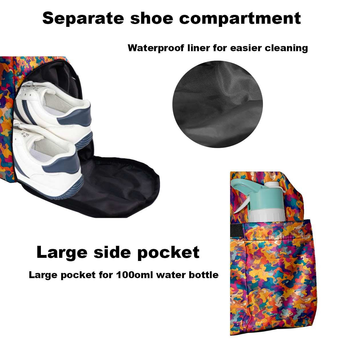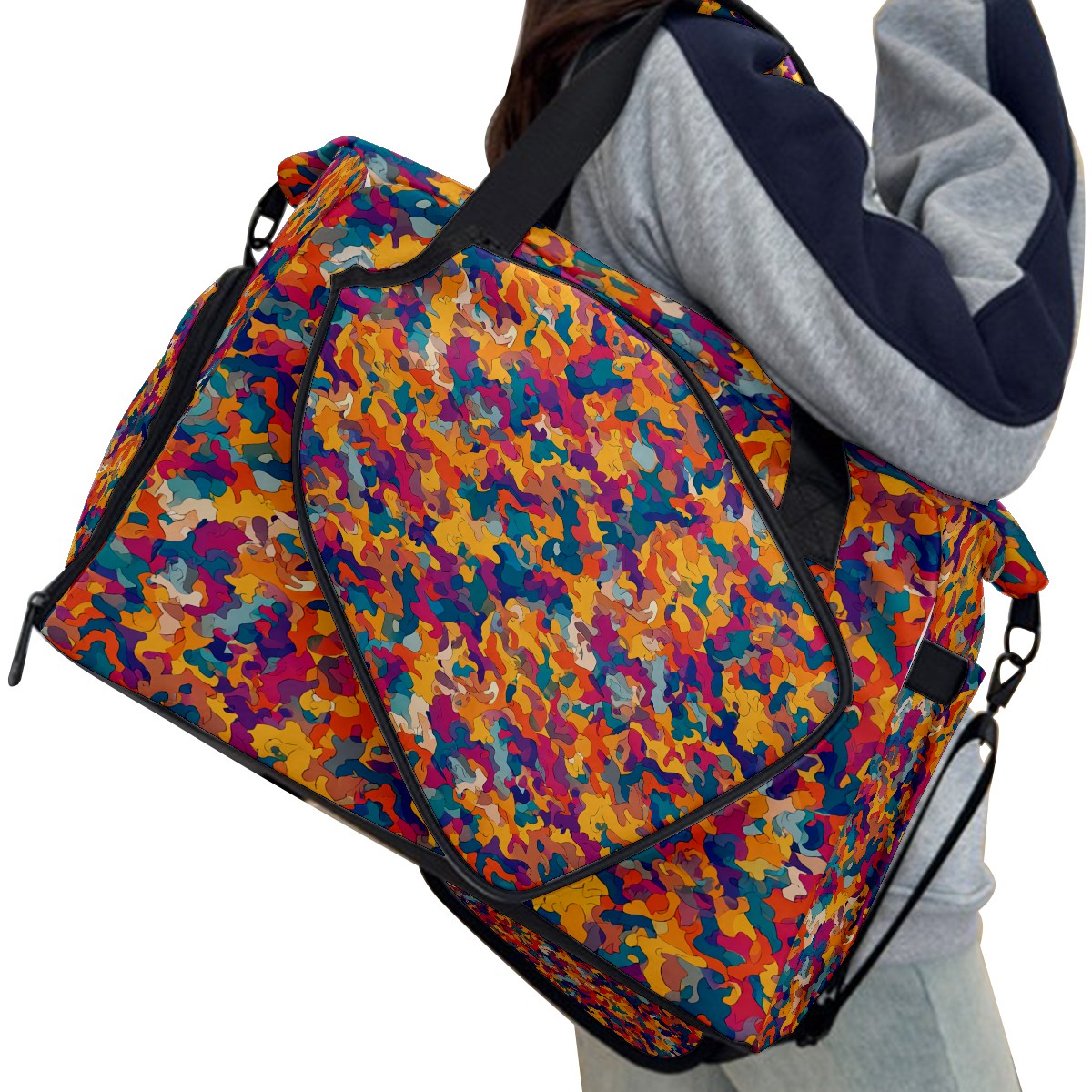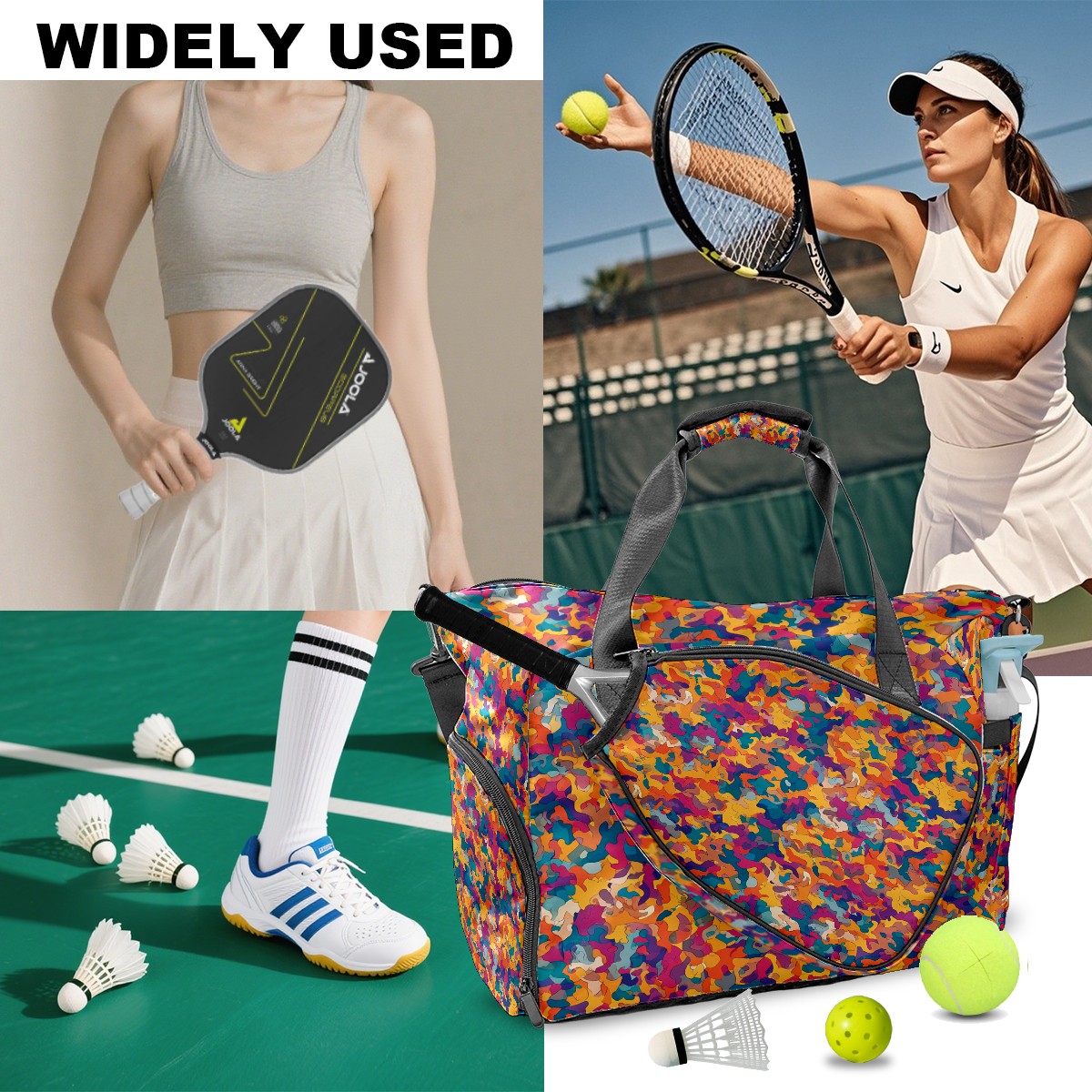 Women's Tennis Bag Large Capacity - Ventilated Shoe Compartment & Waterproof Wet Pocket, Multi-Functional Gym Duffel Bag for Tennis, Yoga, Travel (Multicolor Abstract)