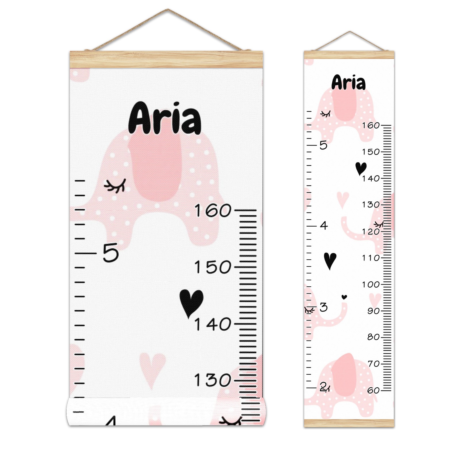 Personalized Kids Name Growth Chart Ruler for Wall Wood Frame Canvas Height Measure Chart 13.4x56 in Hanging Growth Chart Pink Elephant11.13 Boys Girls Room Decor