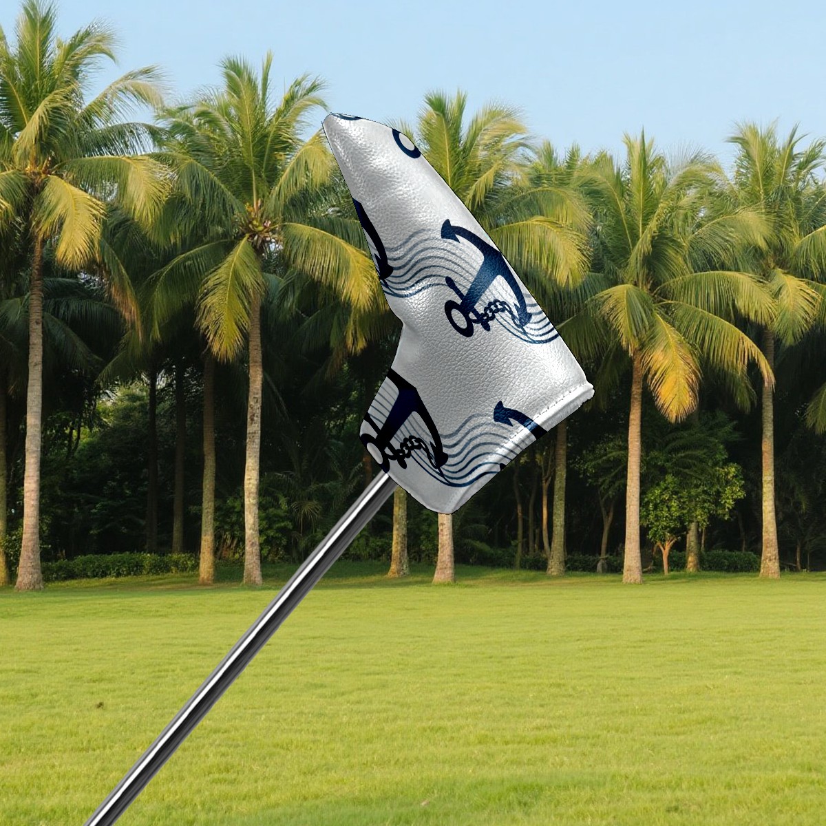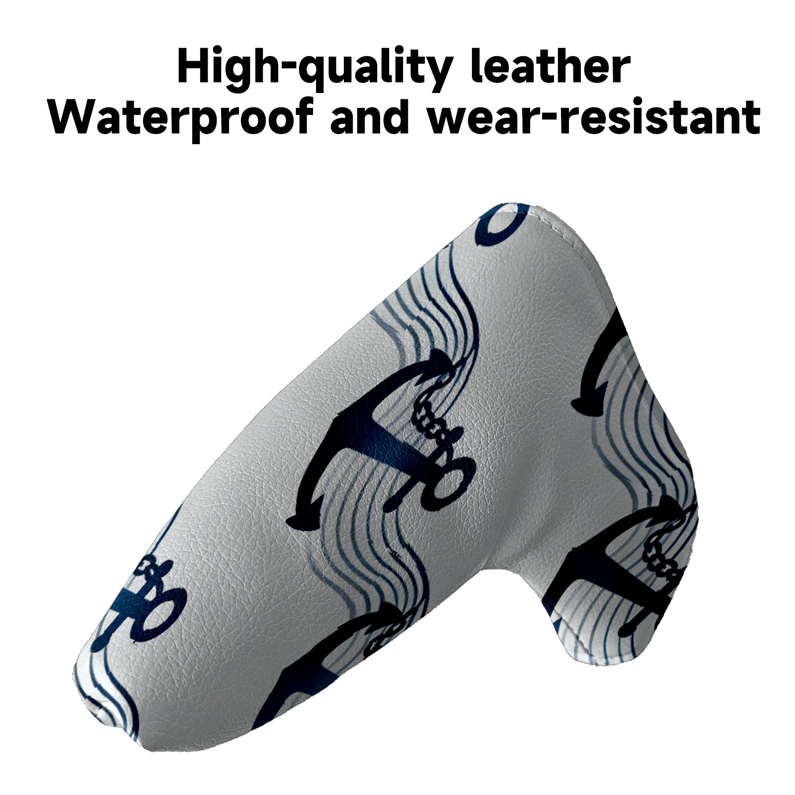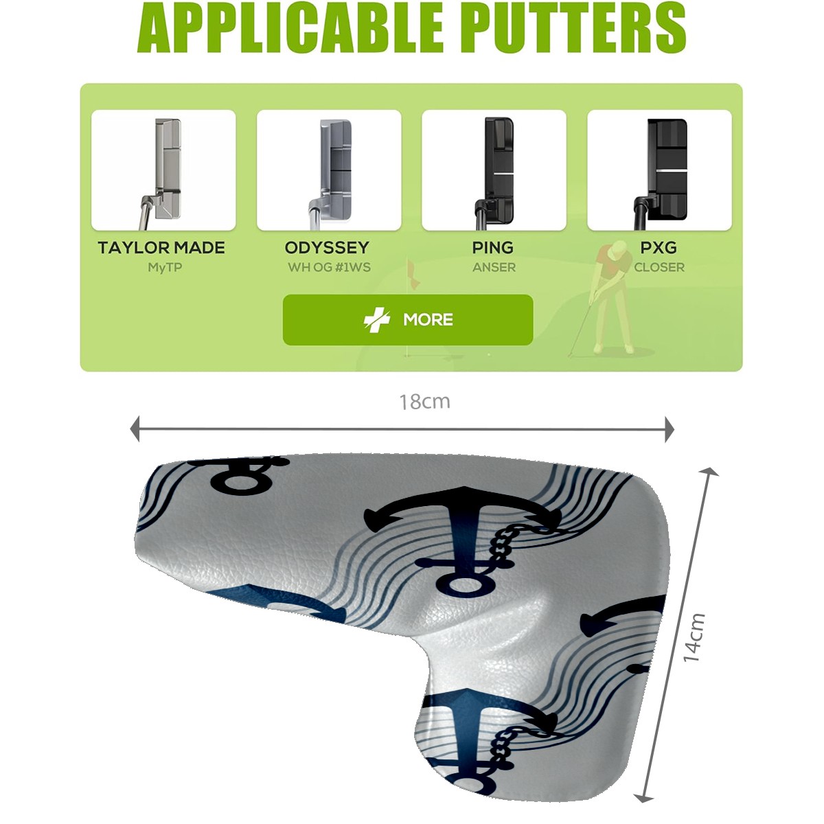 Lightweight Golf Putter Covers, Mid Mallet Putter Headcovers PU Leather Golf Club Covers for Man Women Golfer, Form Fitting Design Anchors And Waves