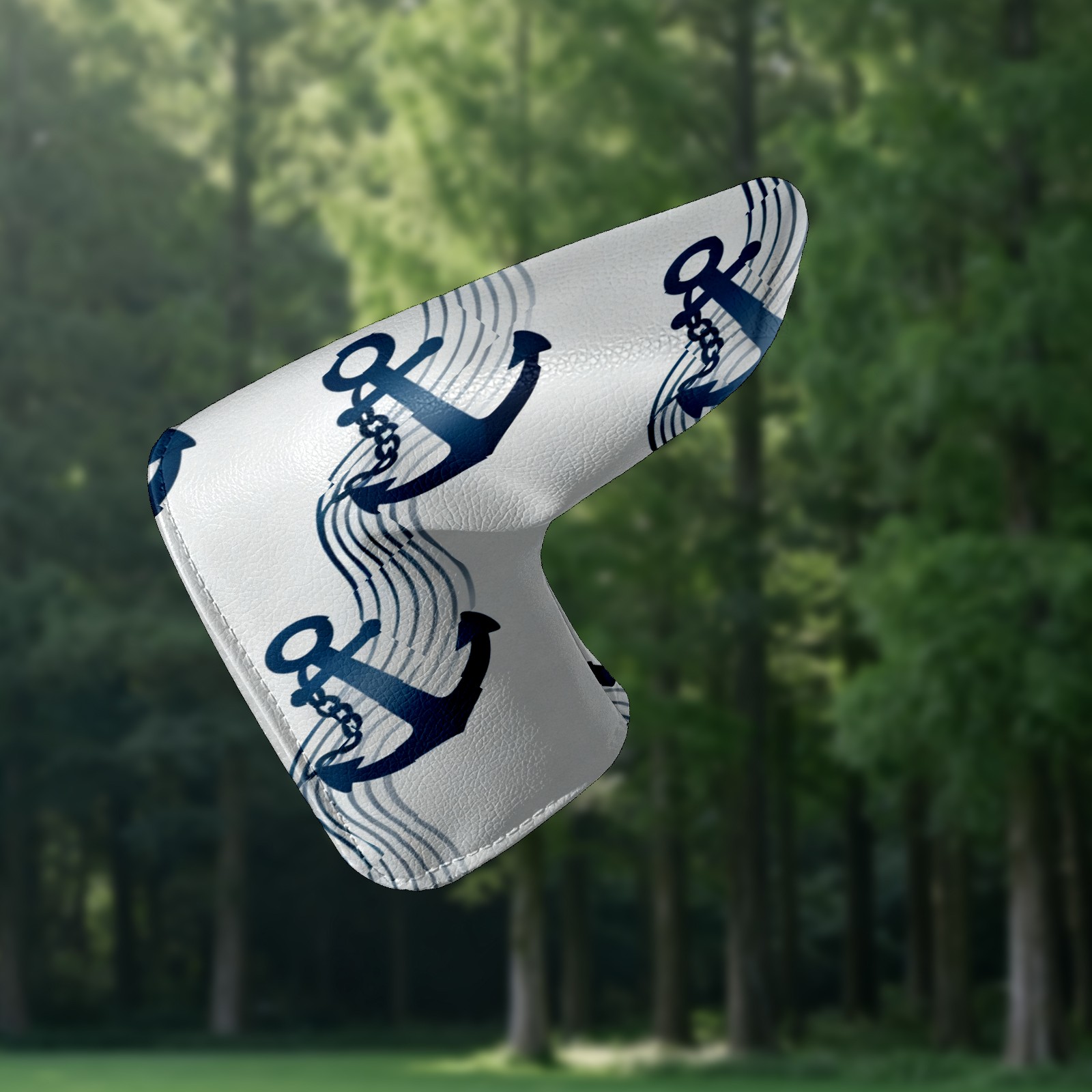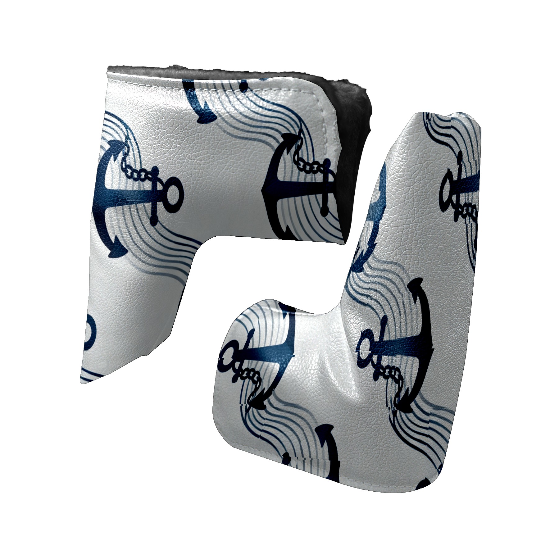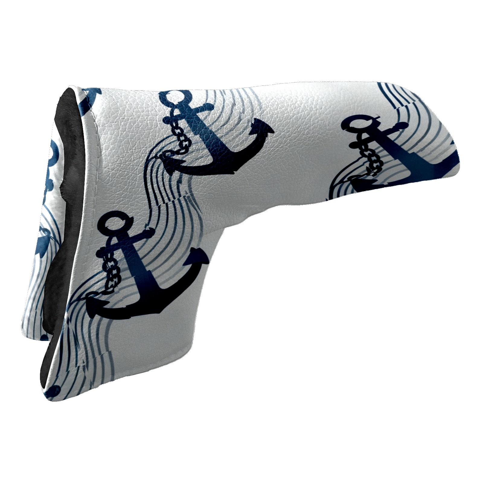 Lightweight Golf Putter Covers, Mid Mallet Putter Headcovers PU Leather Golf Club Covers for Man Women Golfer, Form Fitting Design Anchors And Waves