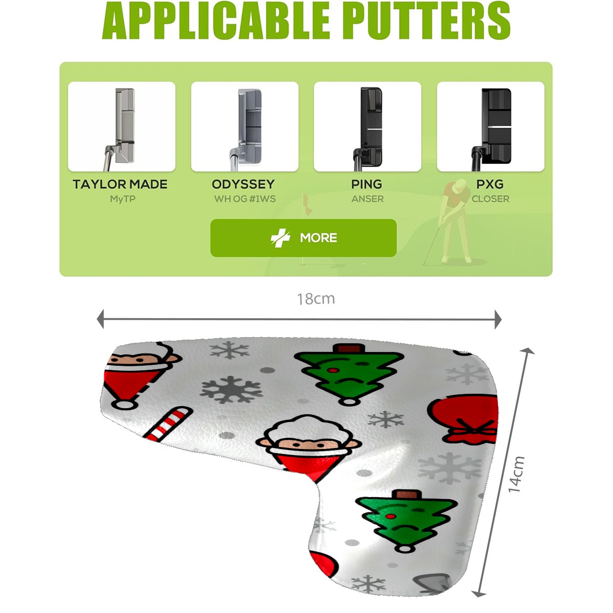 Lightweight Golf Putter Covers, Mid Mallet Putter Headcovers PU Leather Golf Club Covers for Man Women Golfer, Form Fitting Design Christmas-themed Patterns