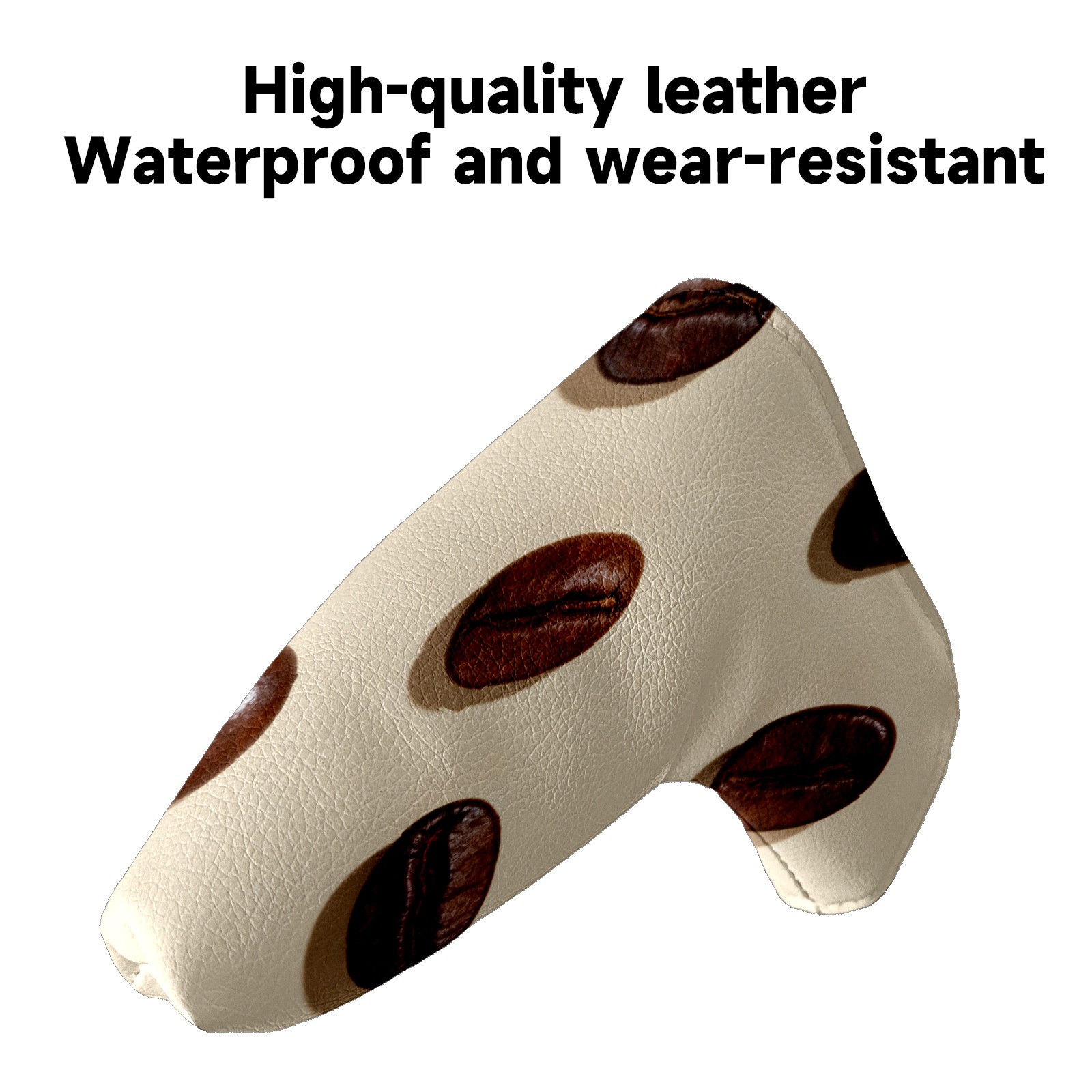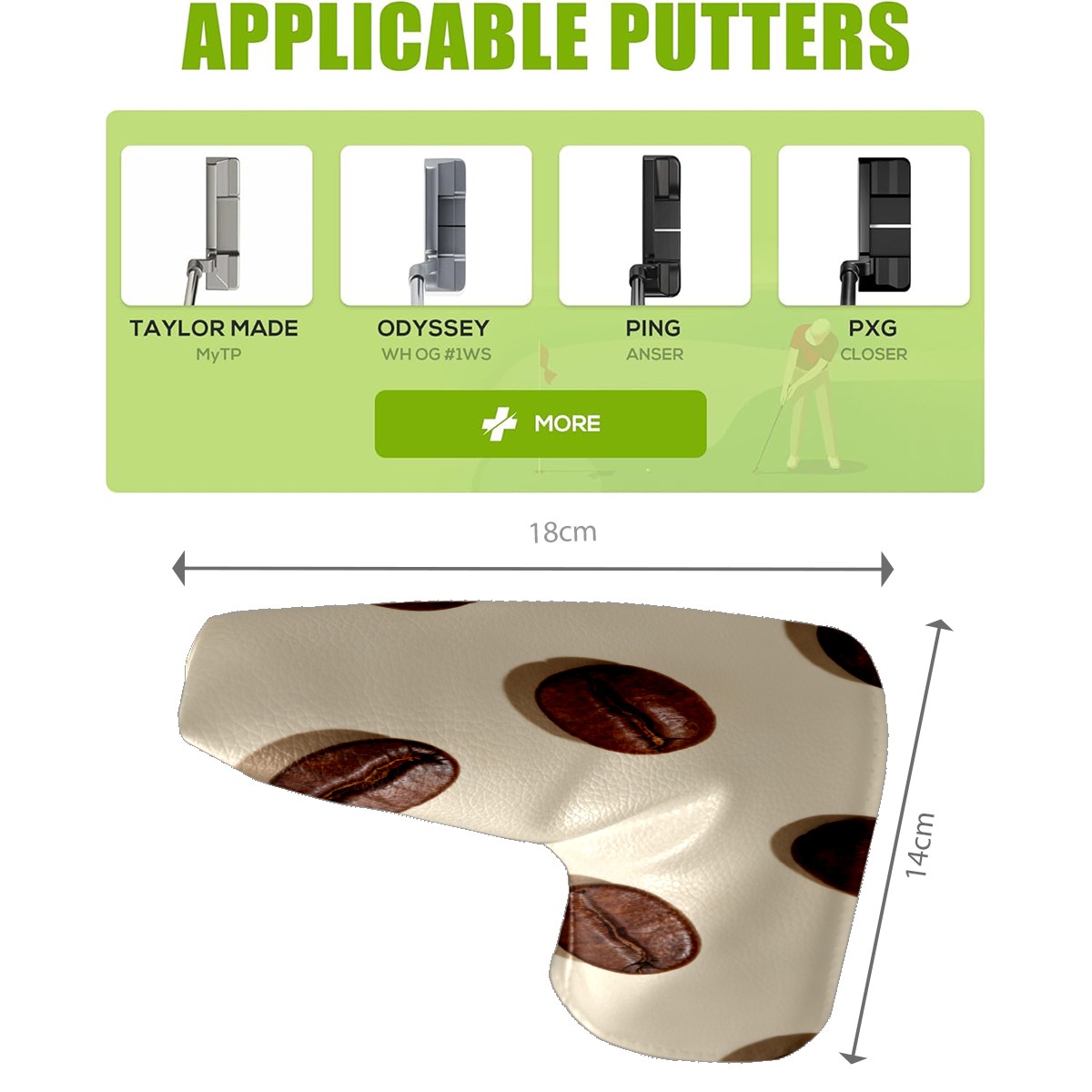 Lightweight Golf Putter Covers, Mid Mallet Putter Headcovers PU Leather Golf Club Covers for Man Women Golfer, Form Fitting Design Coffee Bean Pattern