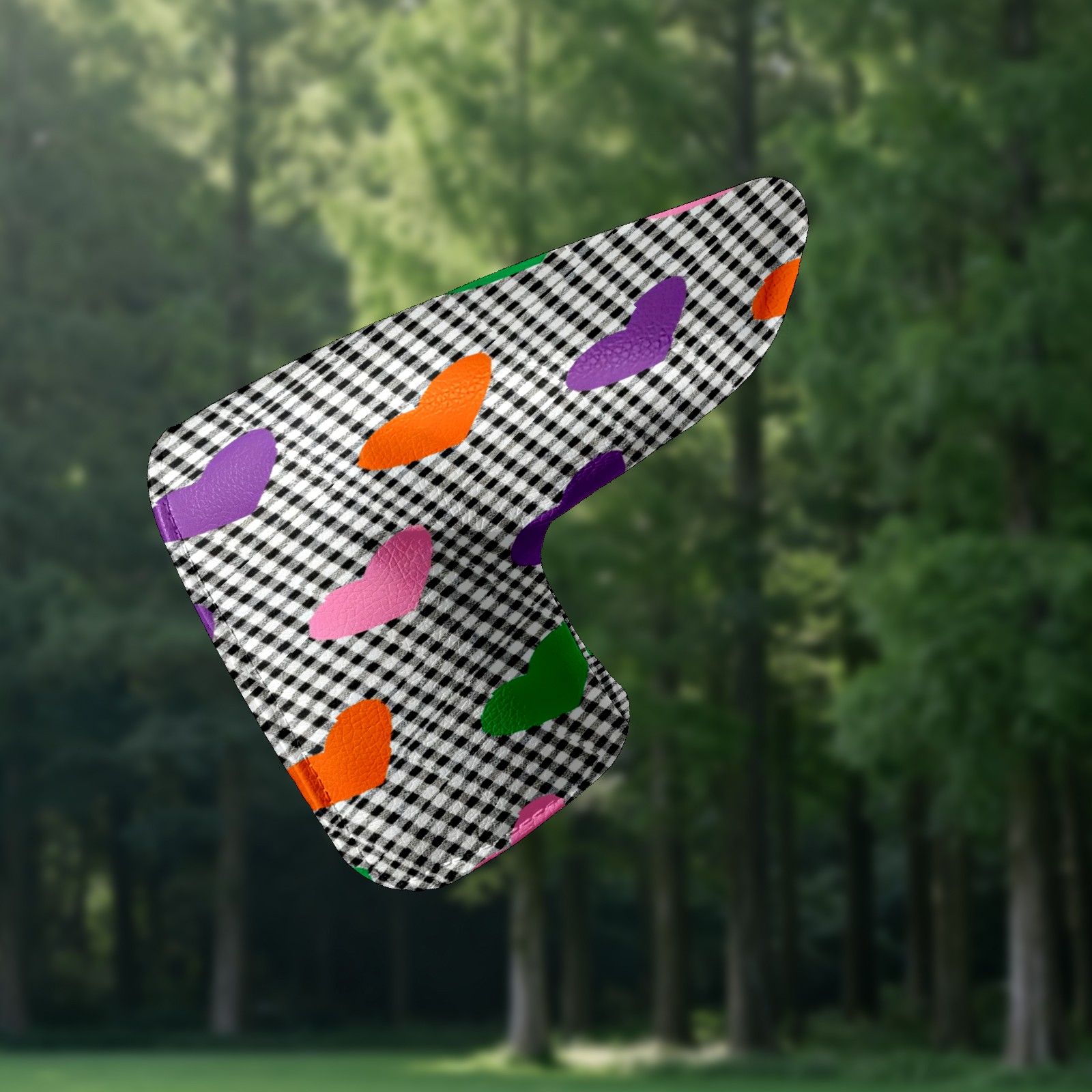 Lightweight Golf Putter Covers, Mid Mallet Putter Headcovers PU Leather Golf Club Covers for Man Women Golfer, Form Fitting Design Checkered Heart Pattern