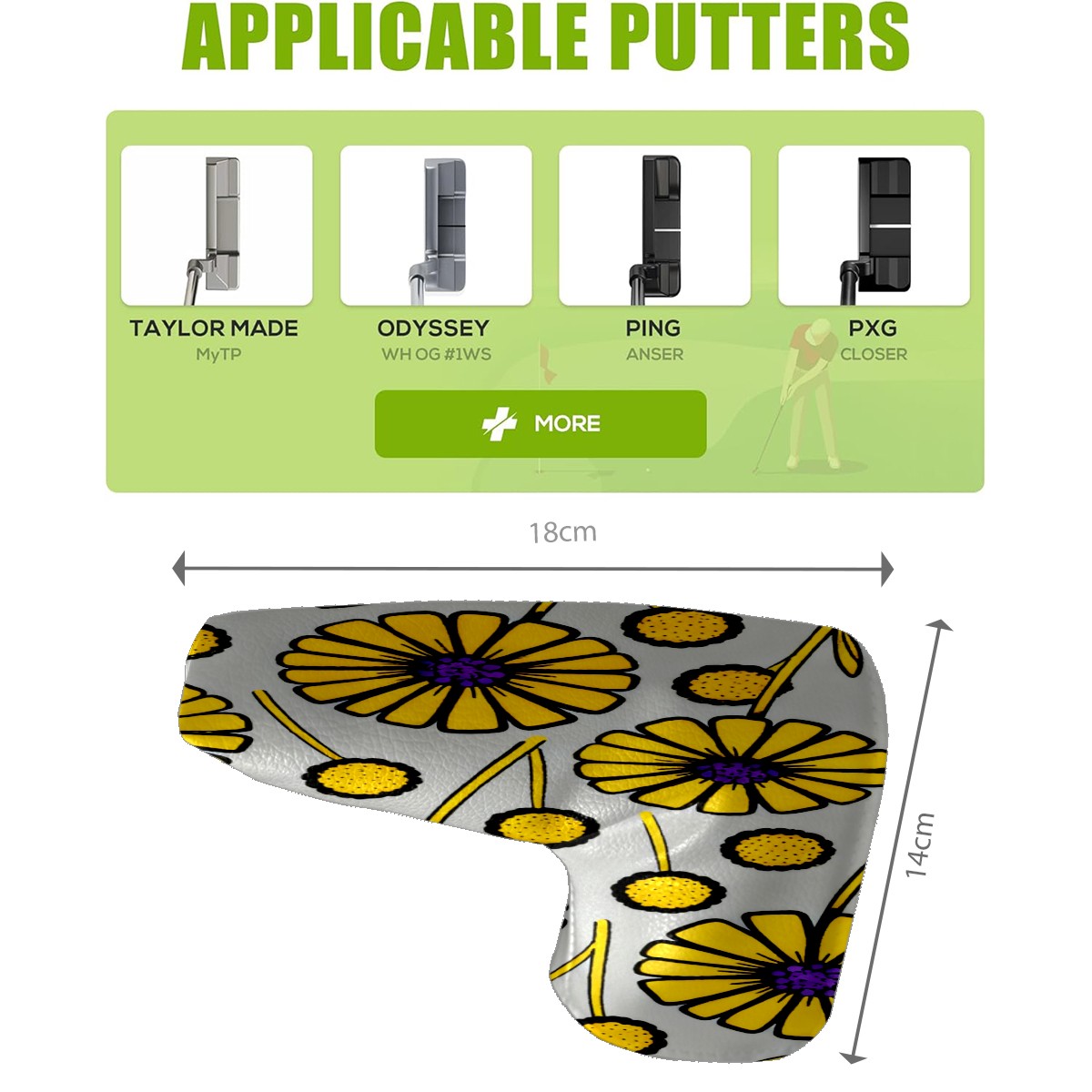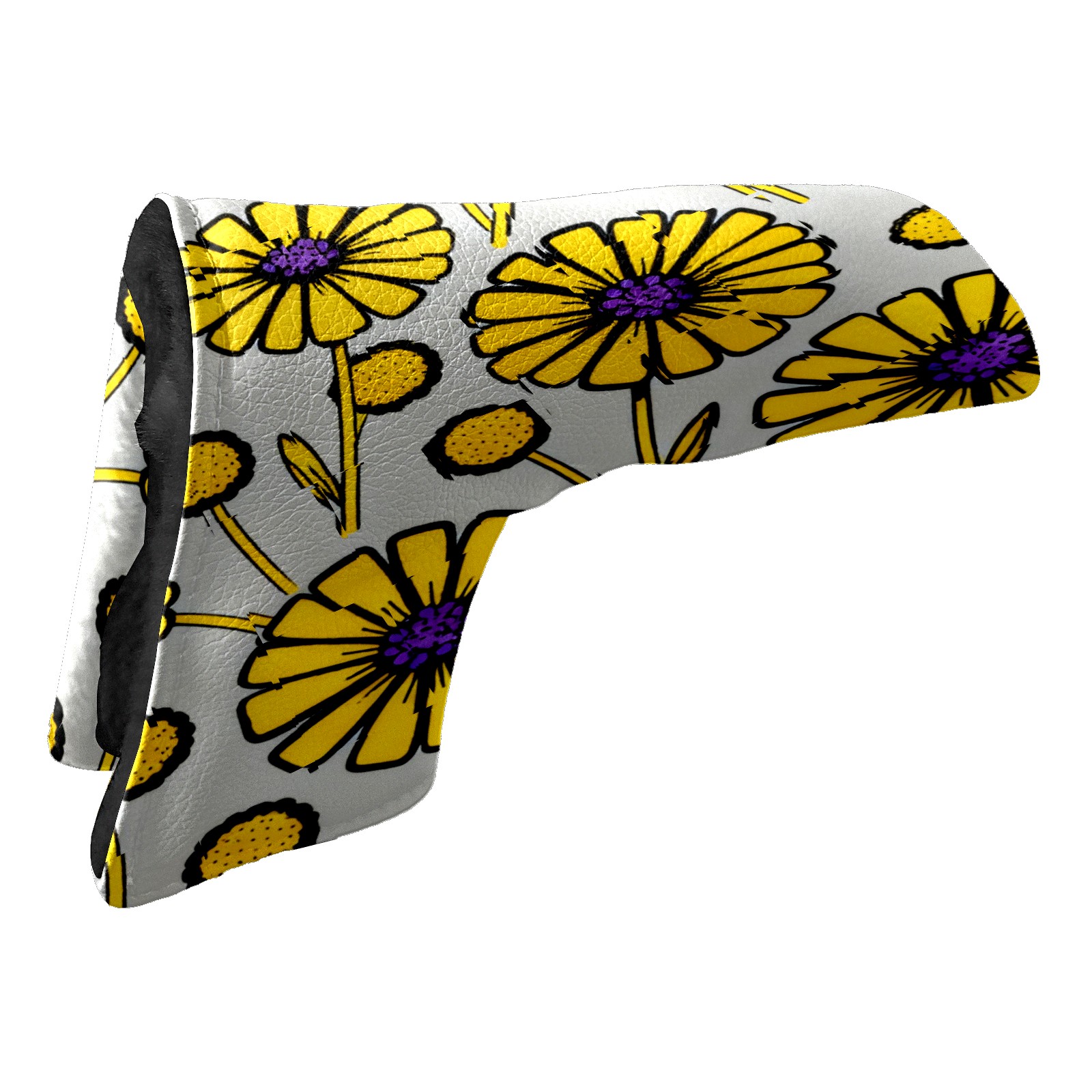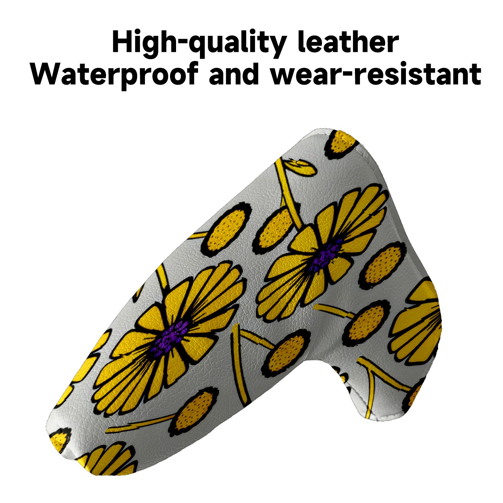 Lightweight Golf Putter Covers, Mid Mallet Putter Headcovers PU Leather Golf Club Covers for Man Women Golfer, Form Fitting Design Yellow Flowers