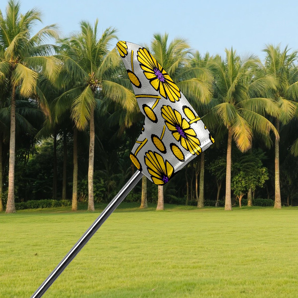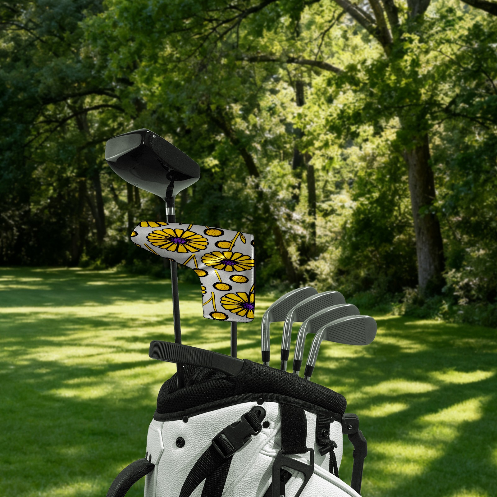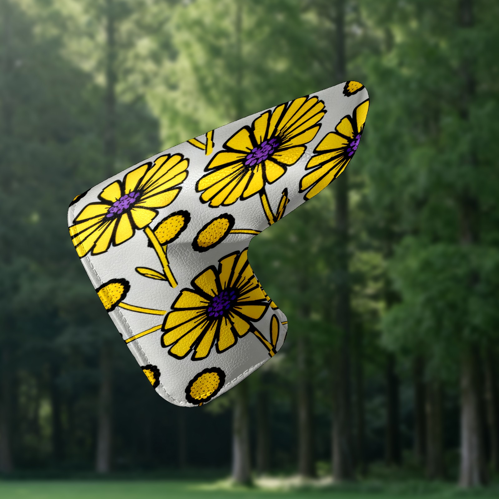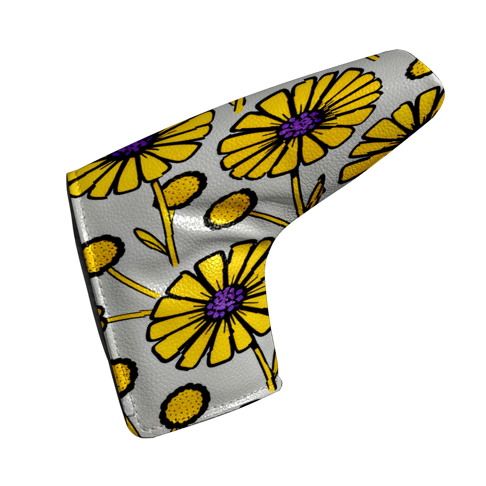 Lightweight Golf Putter Covers, Mid Mallet Putter Headcovers PU Leather Golf Club Covers for Man Women Golfer, Form Fitting Design Yellow Flowers