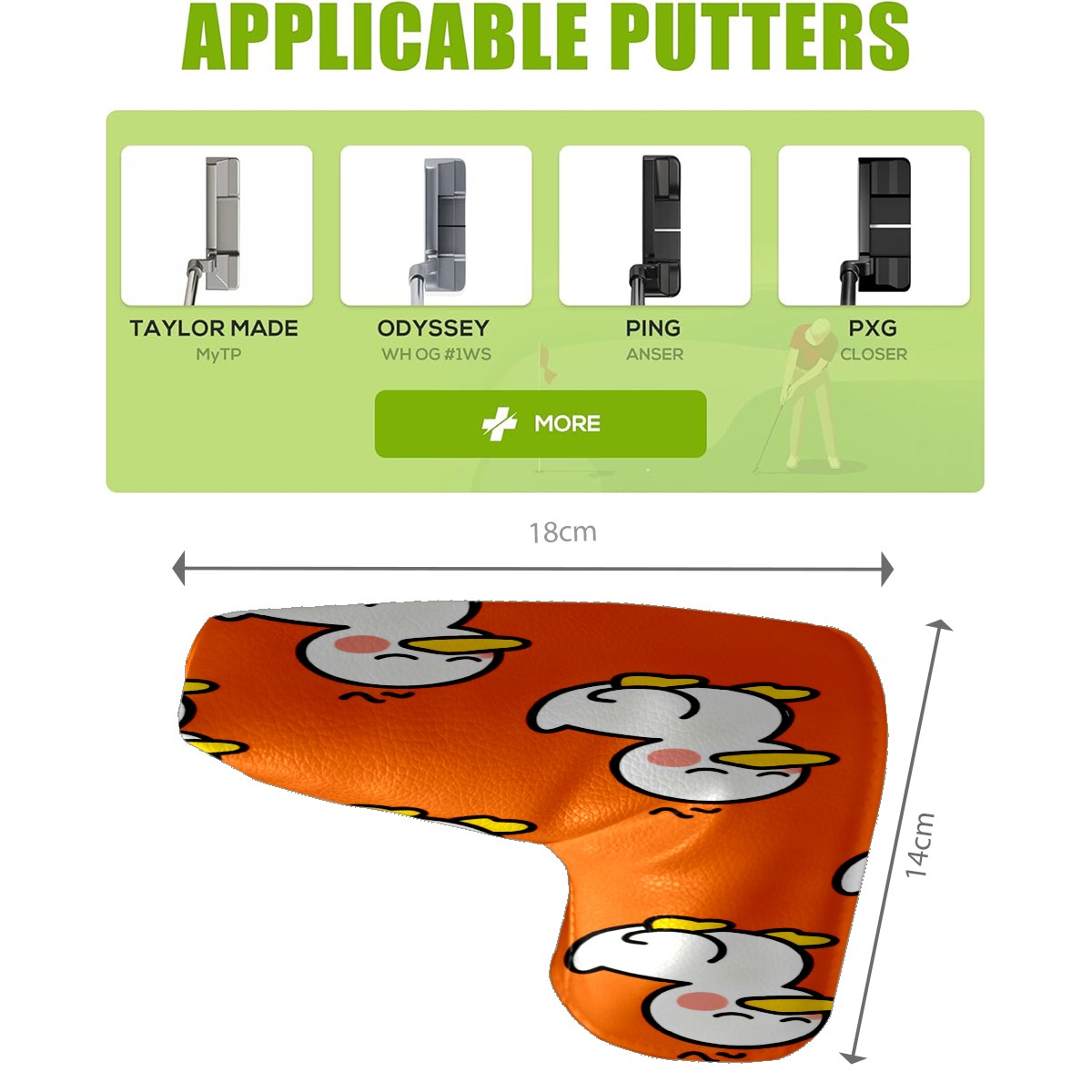 Lightweight Golf Putter Covers, Mid Mallet Putter Headcovers PU Leather Golf Club Covers for Man Women Golfer, Form Fitting Design White Cartoon Duck