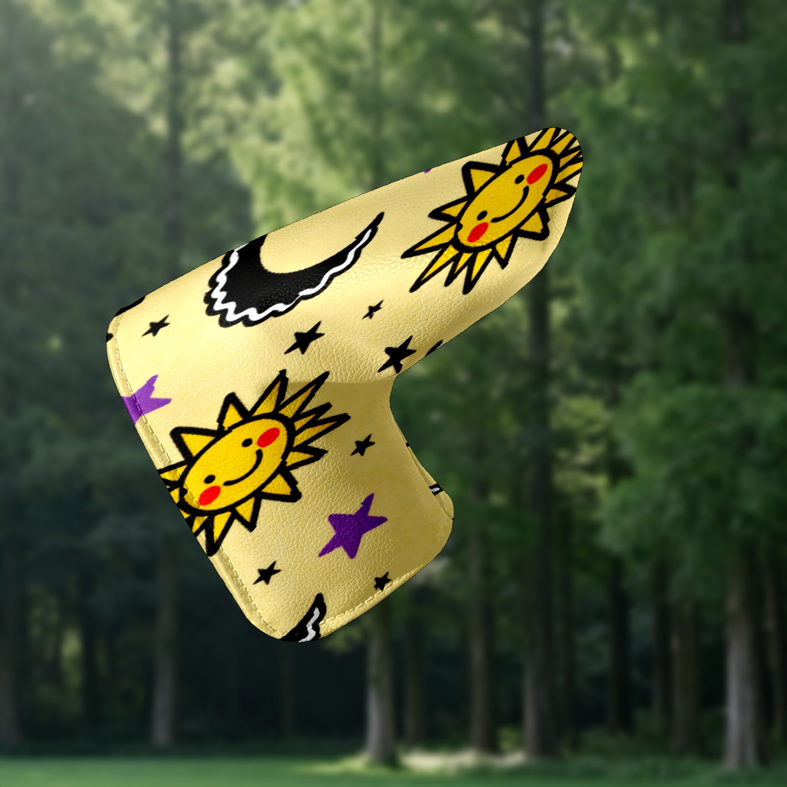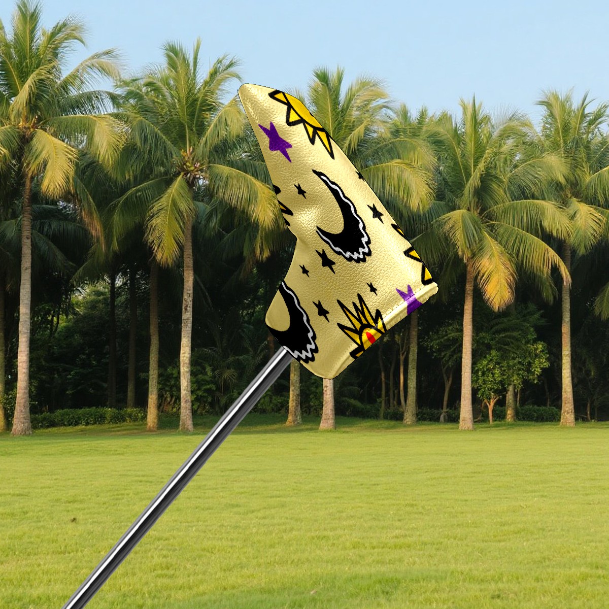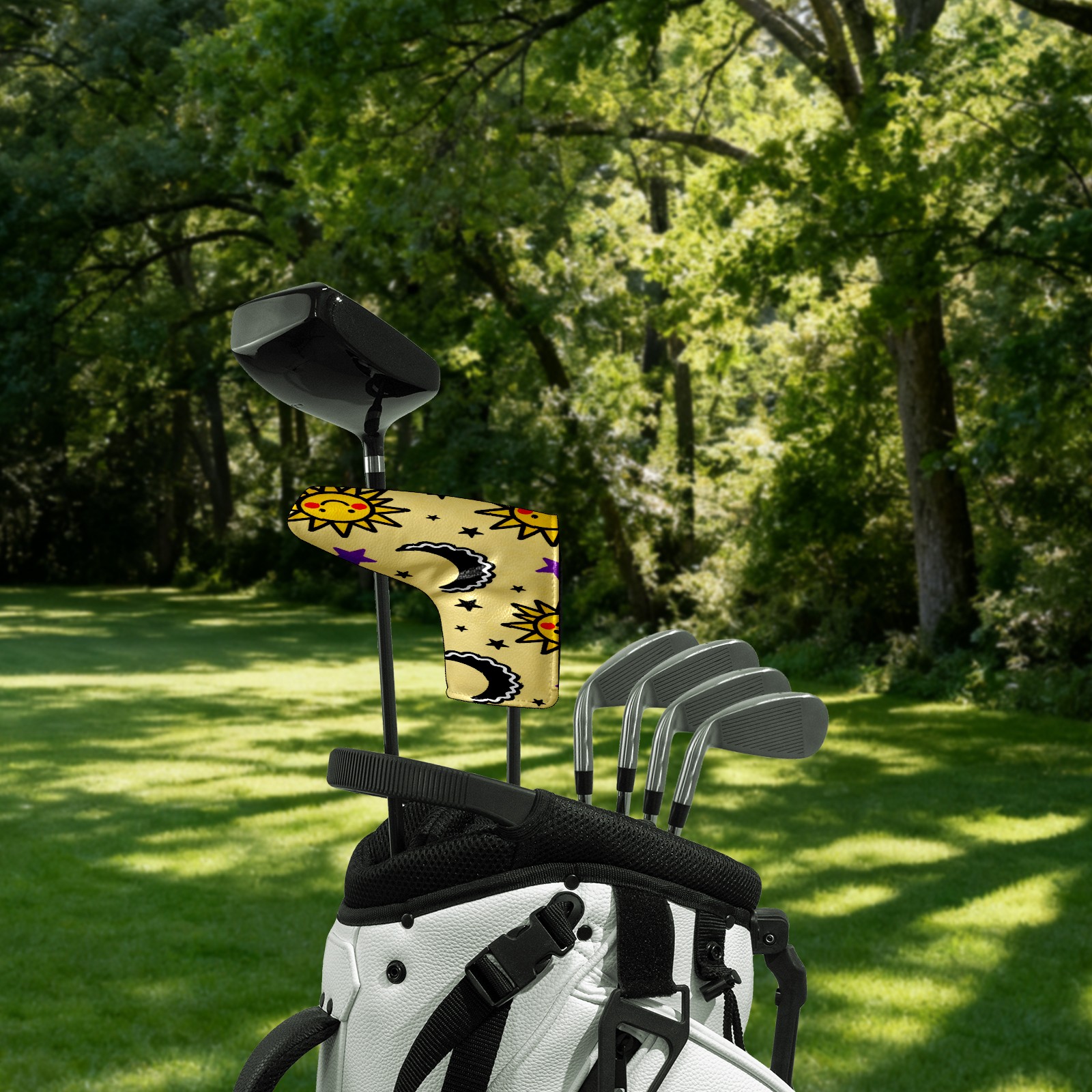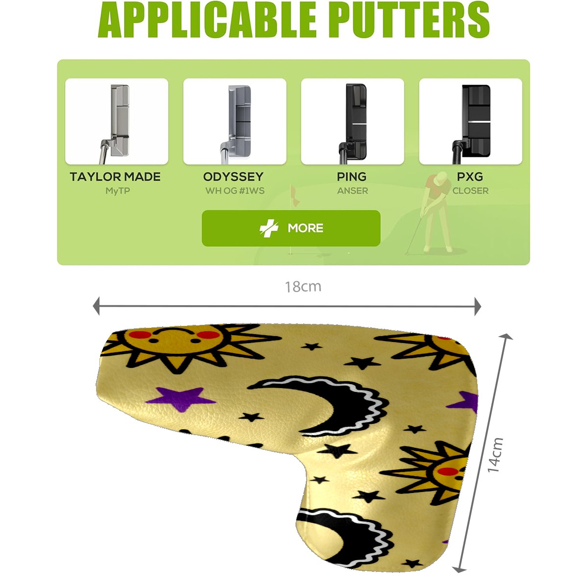 Lightweight Golf Putter Covers, Mid Mallet Putter Headcovers PU Leather Golf Club Covers for Man Women Golfer, Form Fitting Design Sun Moon Stars