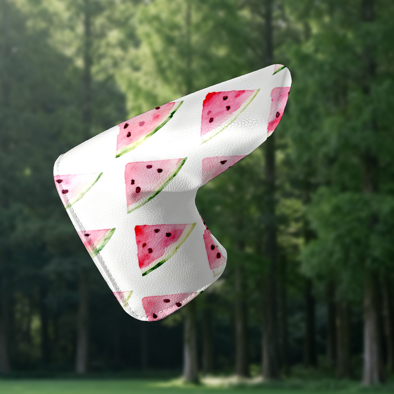 Lightweight Golf Putter Covers, Mid Mallet Putter Headcovers PU Leather Golf Club Covers for Man Women Golfer, Form Fitting Design Pink Watermelon Slices