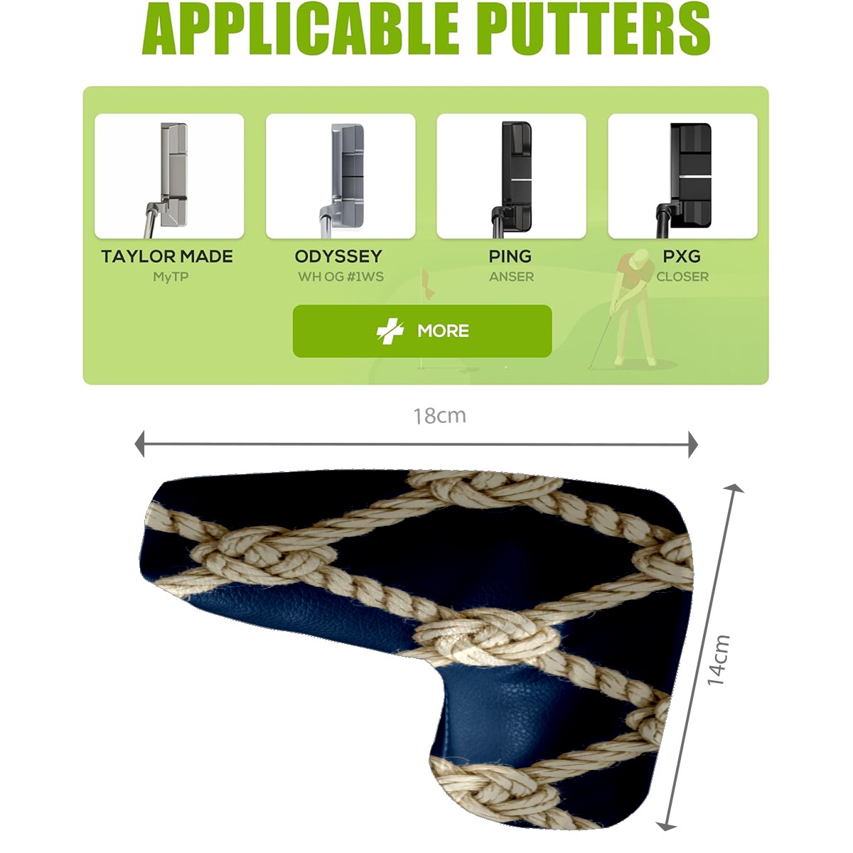 • <p>In the world of golfing equipment, the details often show professionalism and care. We carefully present this putter head protector as a classic golf accessory that will bring a new upgrade to your golf experience. It is a fusion of precision and fashion. The exterior is made of high-quality leather with a tough and textured texture that can effectively resist wear and tear and scratches from daily use. The soft inner lining wraps a gentle protective film around the putter head, avoiding minor scratches and damages caused by collisions and prolonging the life of the putter. The unique closure design is the finishing touch, super strong adhesive force, no matter how you walk on the course, bumps, it is as stable as a mountain, will not easily fall off. It is very convenient to take off the putter cover and put it into the stroke with just one pull, so that every operation is smooth and natural. It is the crystallization of retro and practical. With a strong retro flavor, it pays tribute to the classic tradition of golf. Its shape perfectly fits the unique shape of a mallet putter, providing all-around wrap-around protection for the putter head. The design of the mallet putter head protector is inspired by the golden age of golf, and the retro pattern and color combination make people feel as if they have traveled through time and space to experience the deep historical heritage of the game of golf. Whether on a traditional style golf course or a modern and fashionable course, it fits perfectly and adds a unique charm to your clubs.<br></p>