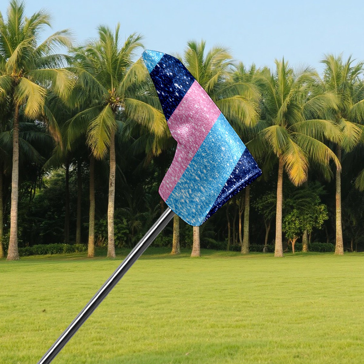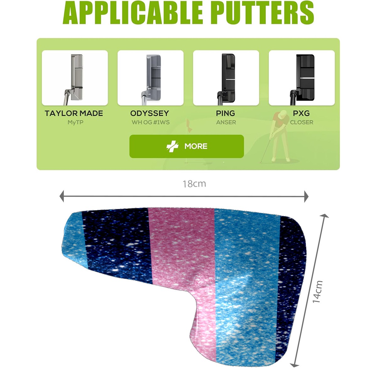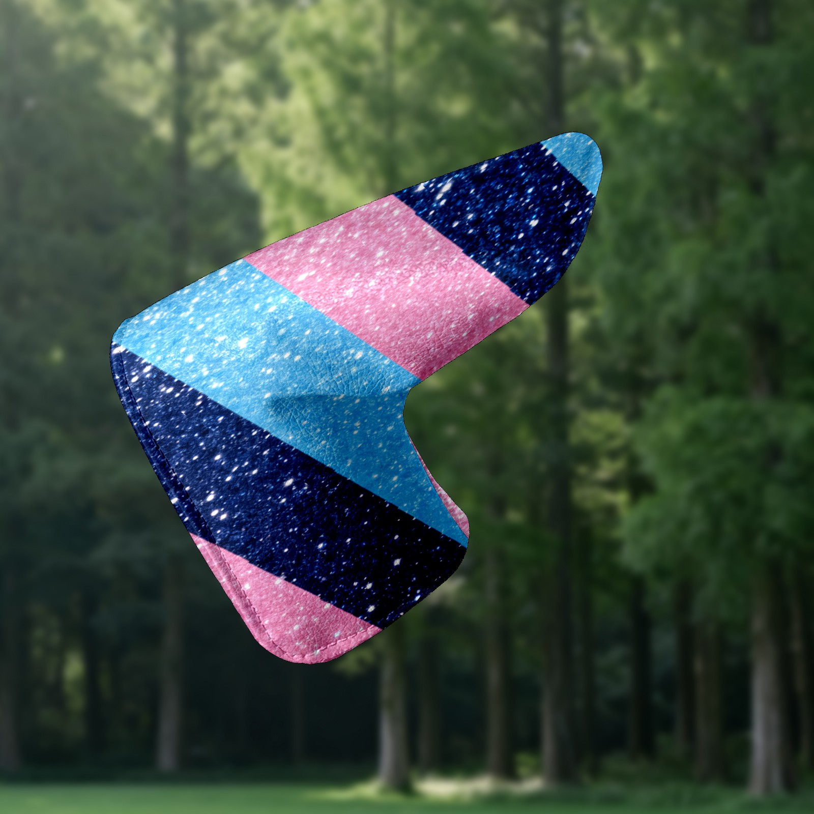 Lightweight Golf Putter Covers, Mid Mallet Putter Headcovers PU Leather Golf Club Covers for Man Women Golfer, Form Fitting Design Pink And Blue Stripes