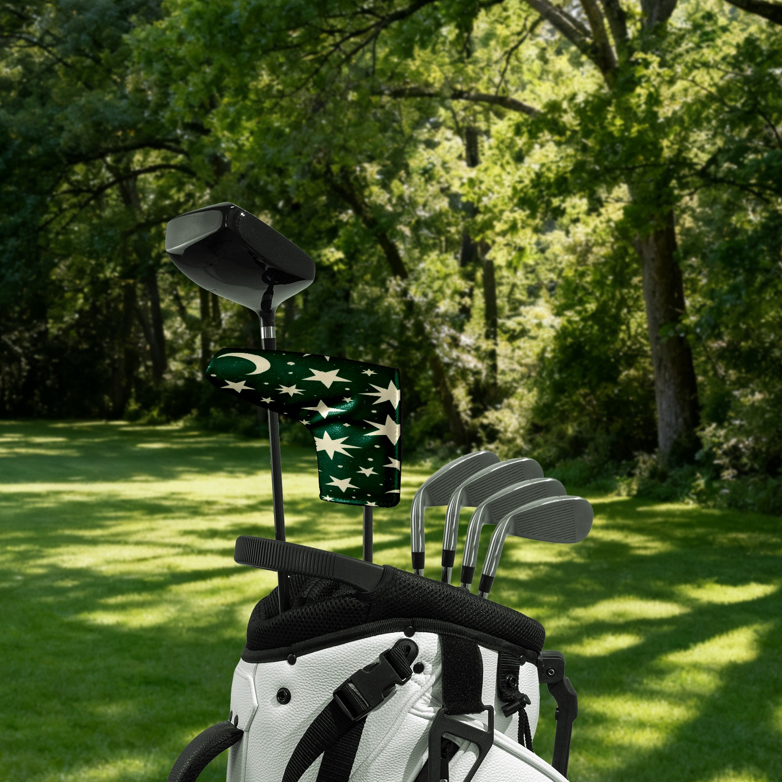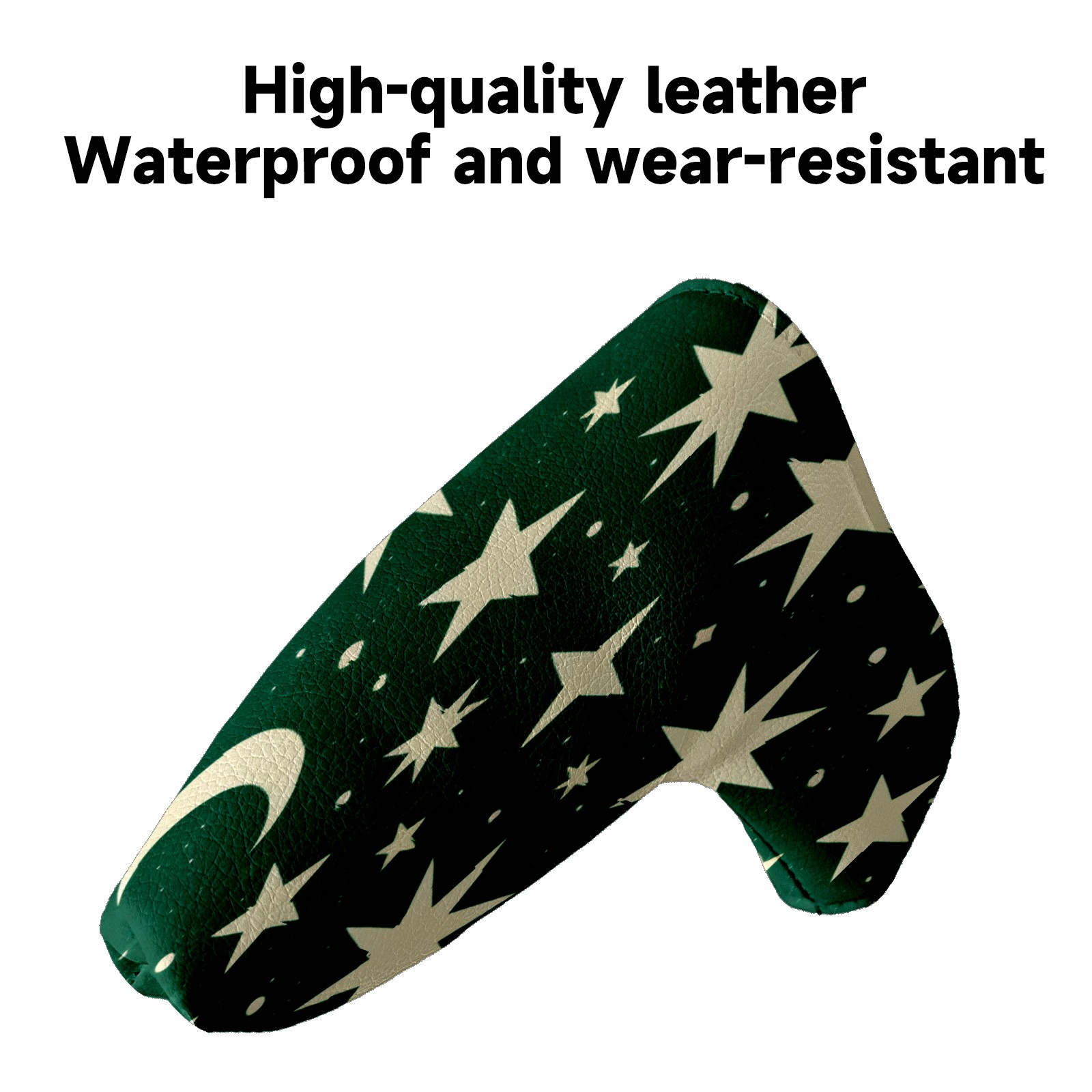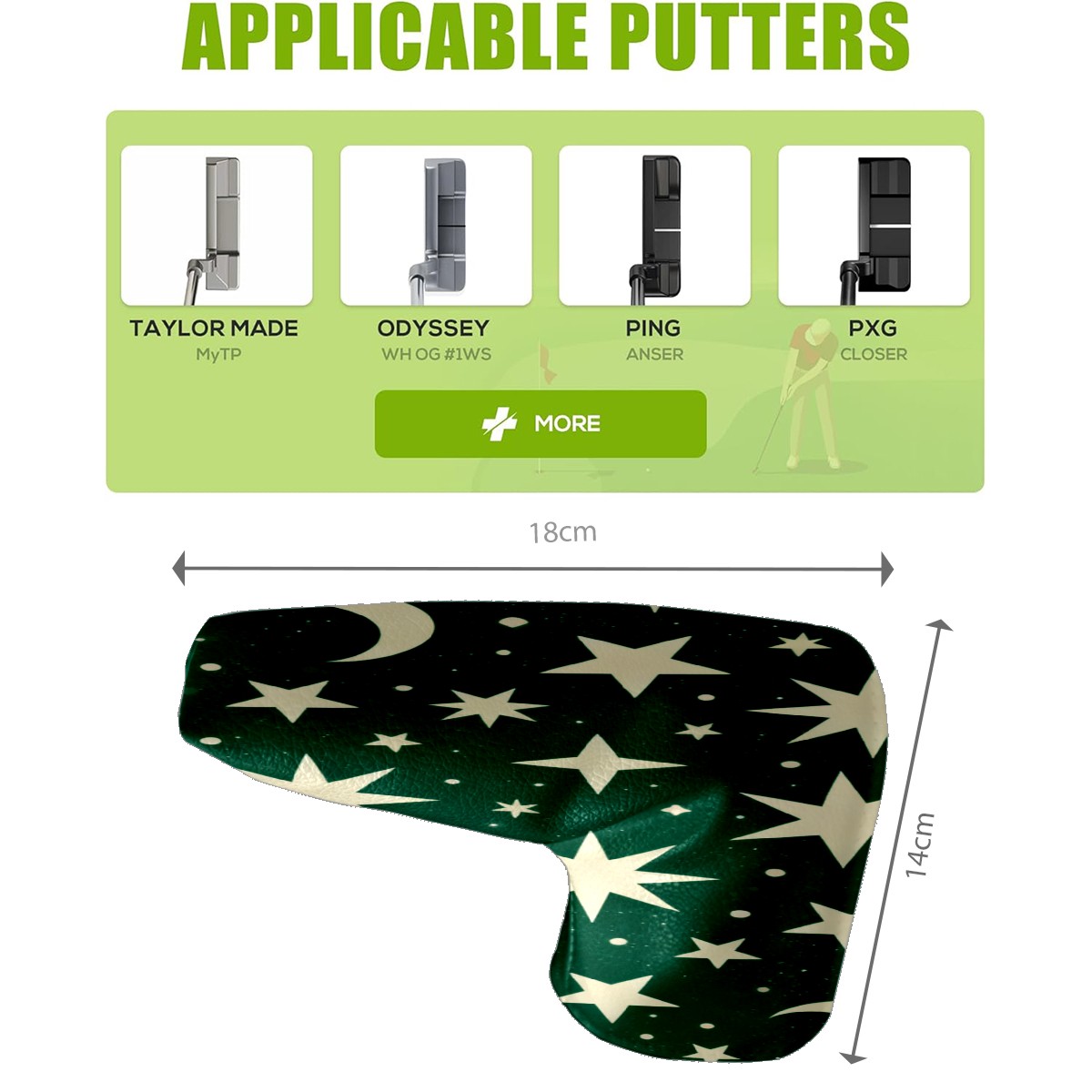 Lightweight Golf Putter Covers, Mid Mallet Putter Headcovers PU Leather Golf Club Covers for Man Women Golfer, Form Fitting Design Beige Stars And Crescent Moon