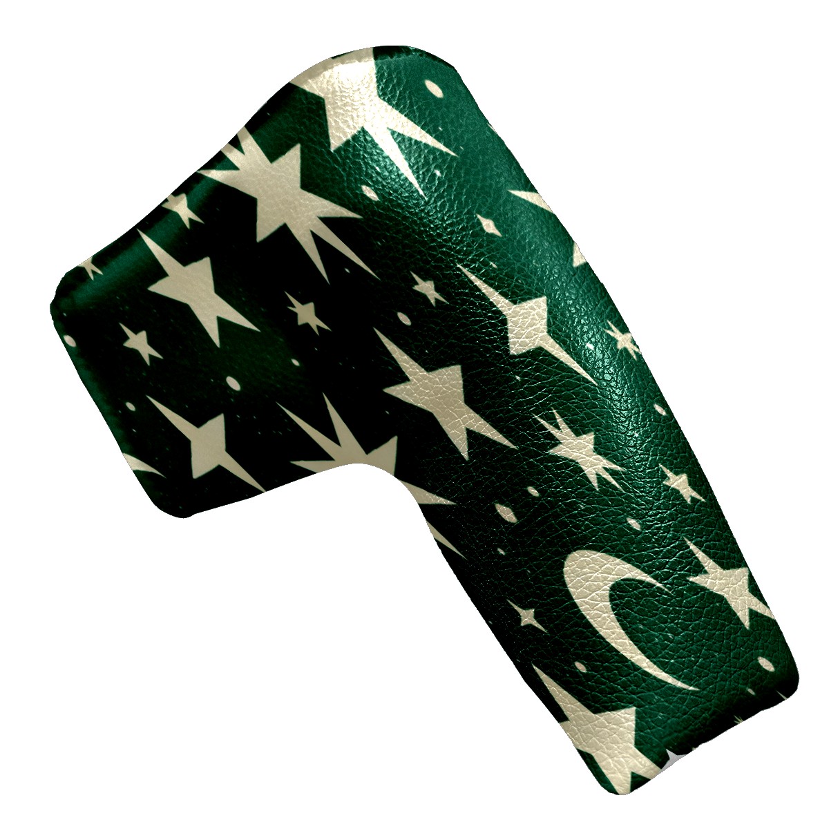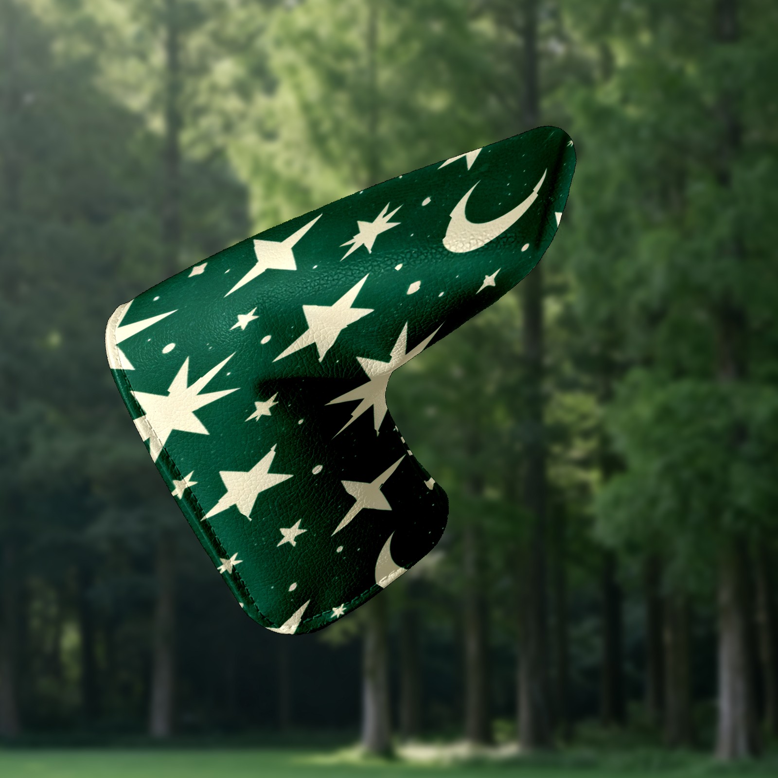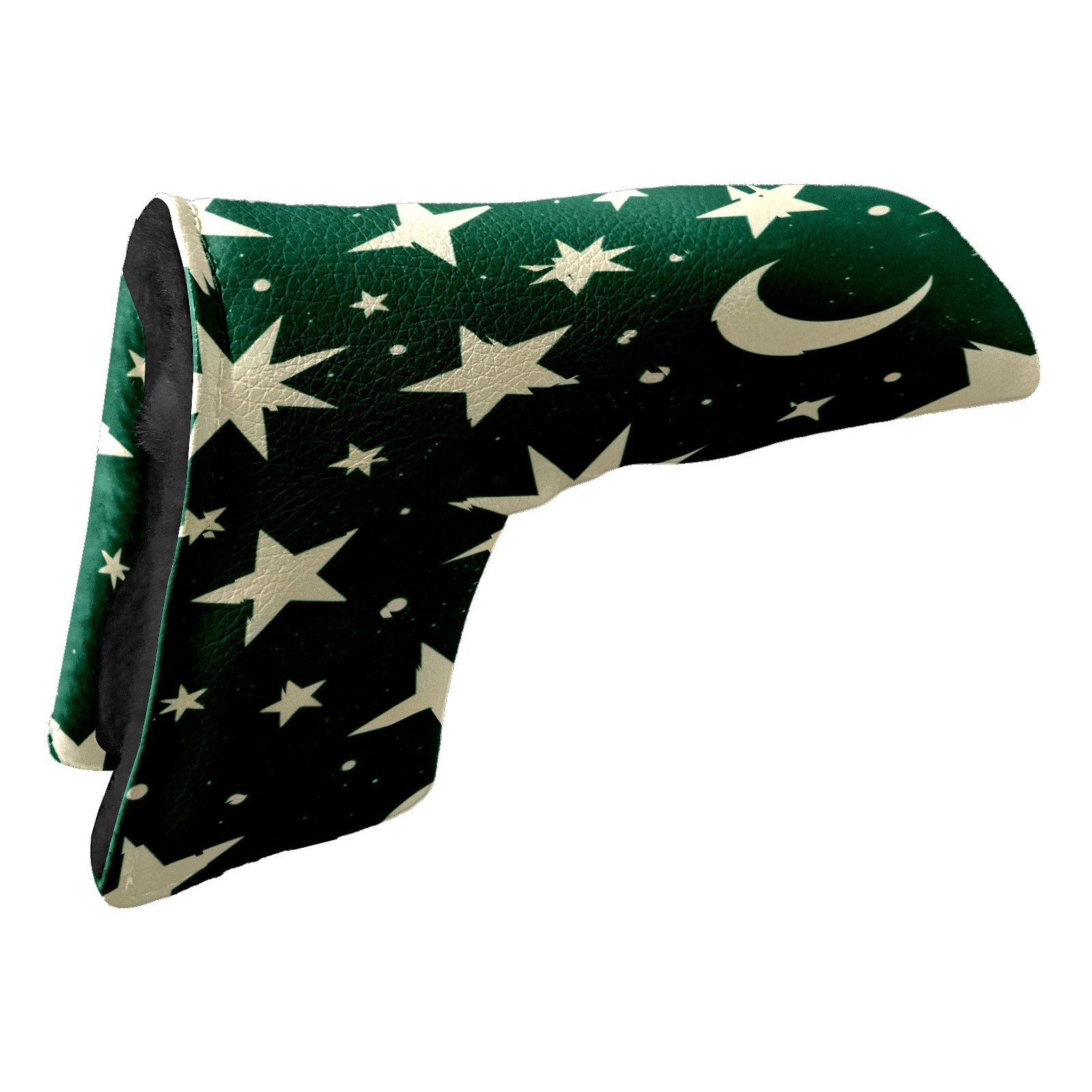 Lightweight Golf Putter Covers, Mid Mallet Putter Headcovers PU Leather Golf Club Covers for Man Women Golfer, Form Fitting Design Beige Stars And Crescent Moon