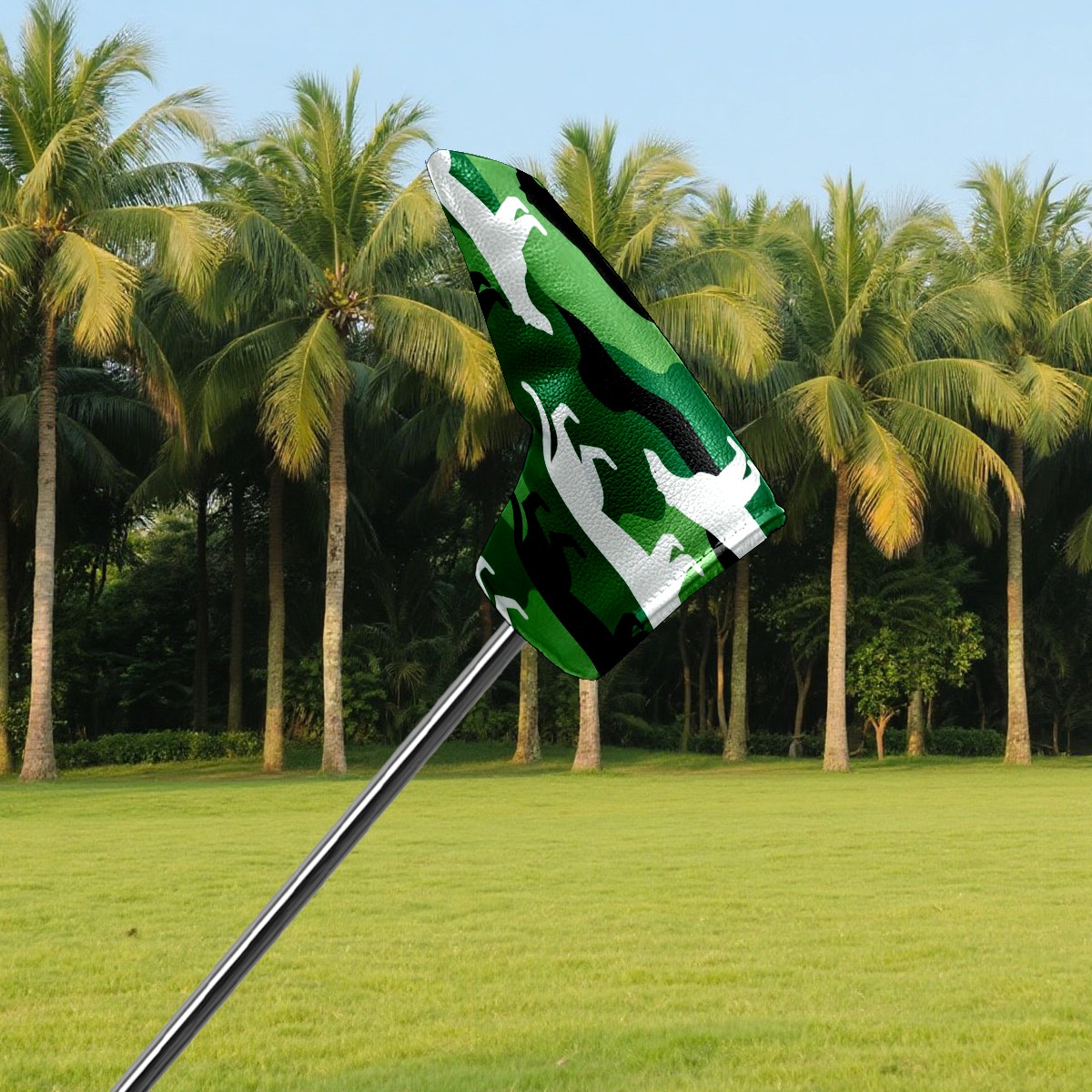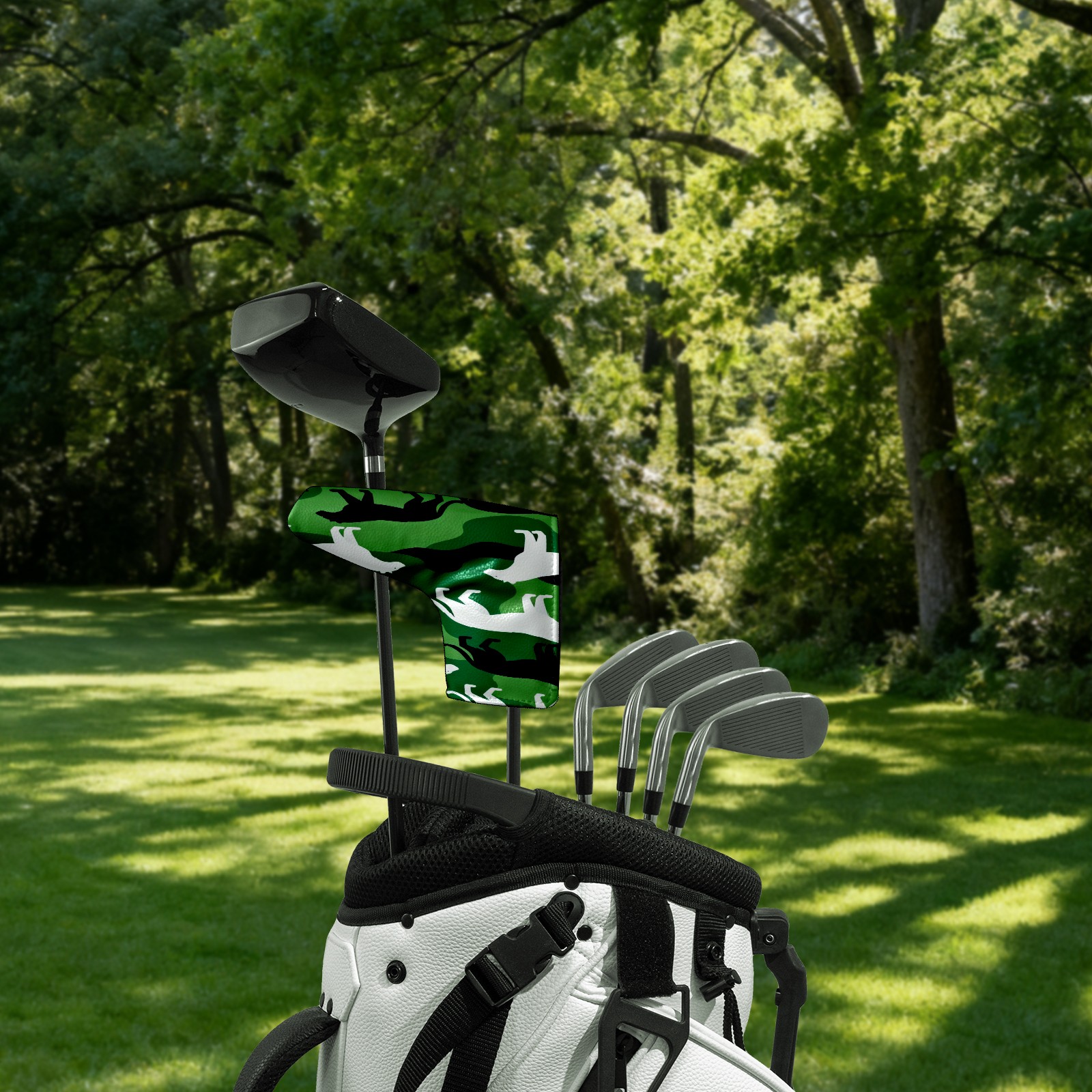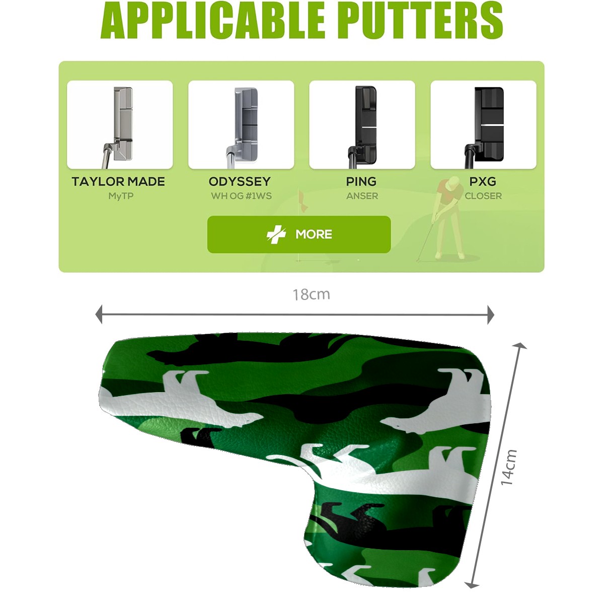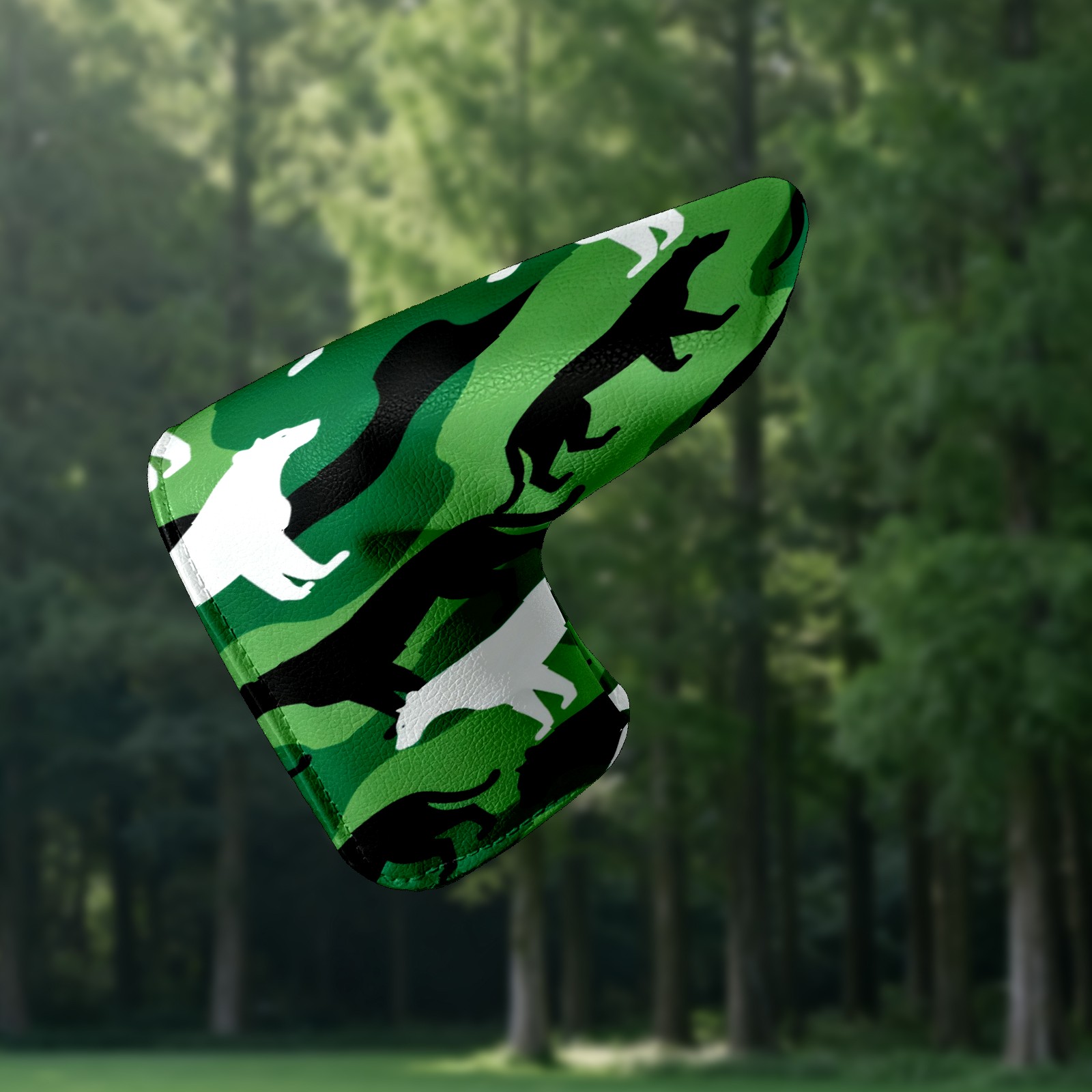 Lightweight Golf Putter Covers, Mid Mallet Putter Headcovers PU Leather Golf Club Covers for Man Women Golfer, Form Fitting Design Camouflage Silhouette Pattern Green