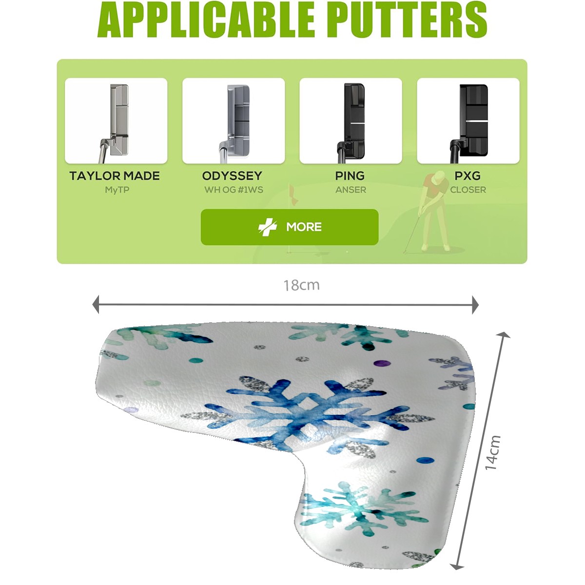 • <p>In the world of golfing equipment, the details often show professionalism and care. We carefully present this putter head protector as a classic golf accessory that will bring a new upgrade to your golf experience. It is a fusion of precision and fashion. The exterior is made of high-quality leather with a tough and textured texture that can effectively resist wear and tear and scratches from daily use. The soft inner lining wraps a gentle protective film around the putter head, avoiding minor scratches and damages caused by collisions and prolonging the life of the putter. The unique closure design is the finishing touch, super strong adhesive force, no matter how you walk on the course, bumps, it is as stable as a mountain, will not easily fall off. It is very convenient to take off the putter cover and put it into the stroke with just one pull, so that every operation is smooth and natural. It is the crystallization of retro and practical. With a strong retro flavor, it pays tribute to the classic tradition of golf. Its shape perfectly fits the unique shape of a mallet putter, providing all-around wrap-around protection for the putter head. The design of the mallet putter head protector is inspired by the golden age of golf, and the retro pattern and color combination make people feel as if they have traveled through time and space to experience the deep historical heritage of the game of golf. Whether on a traditional style golf course or a modern and fashionable course, it fits perfectly and adds a unique charm to your clubs.<br></p>