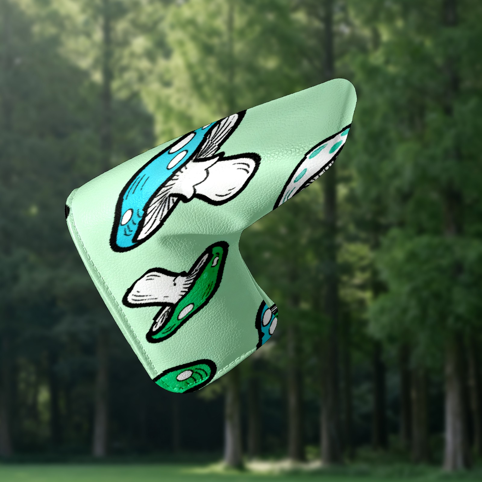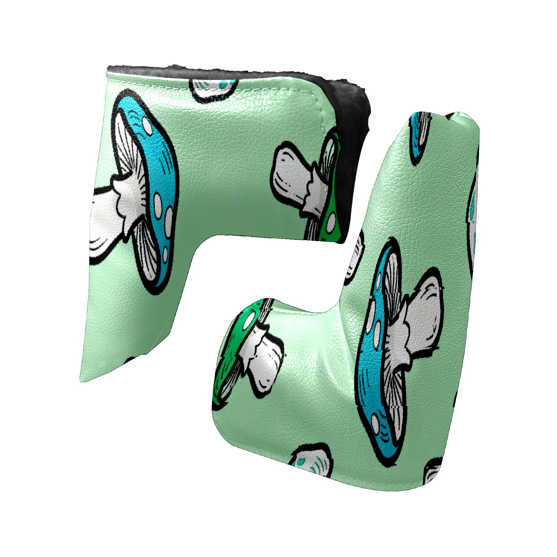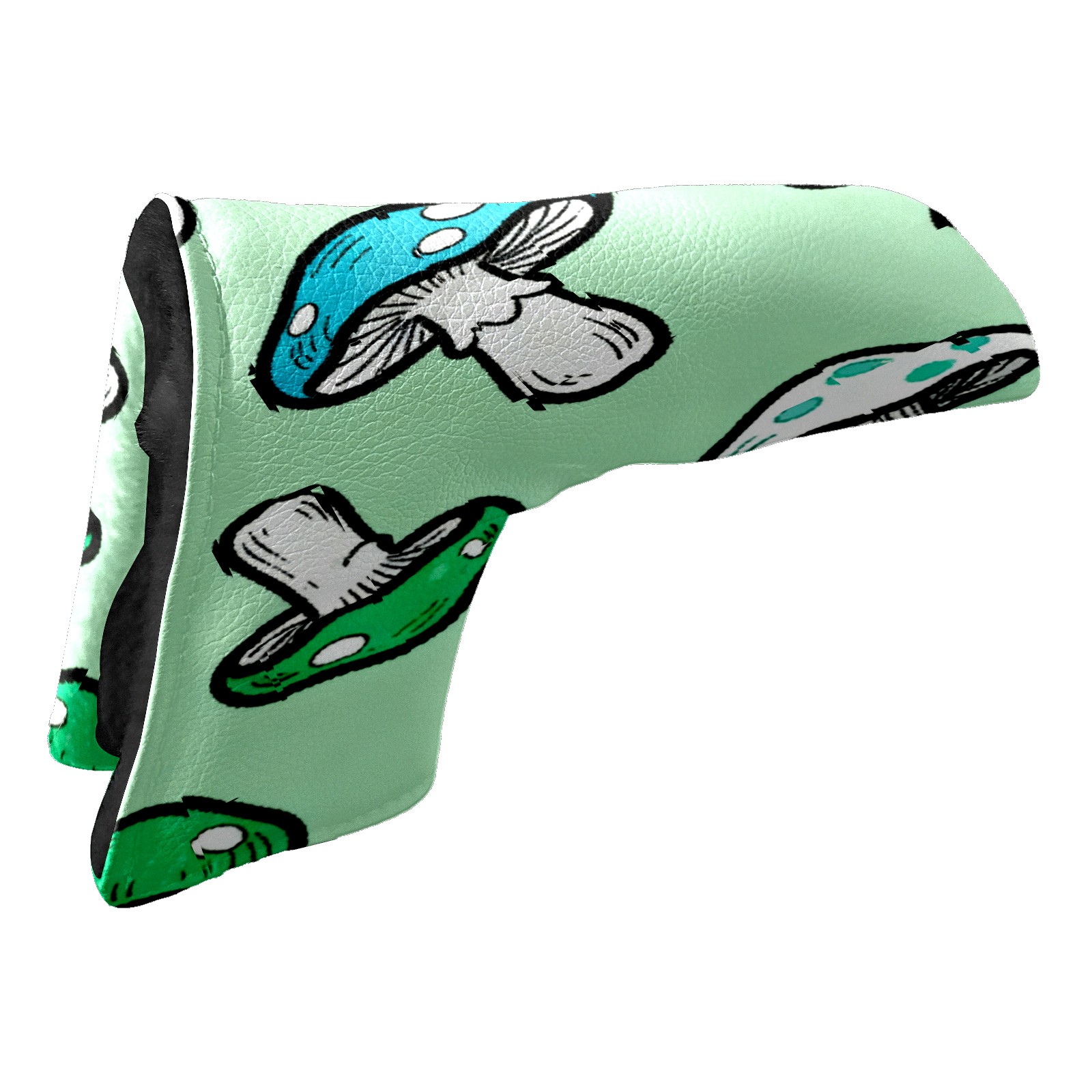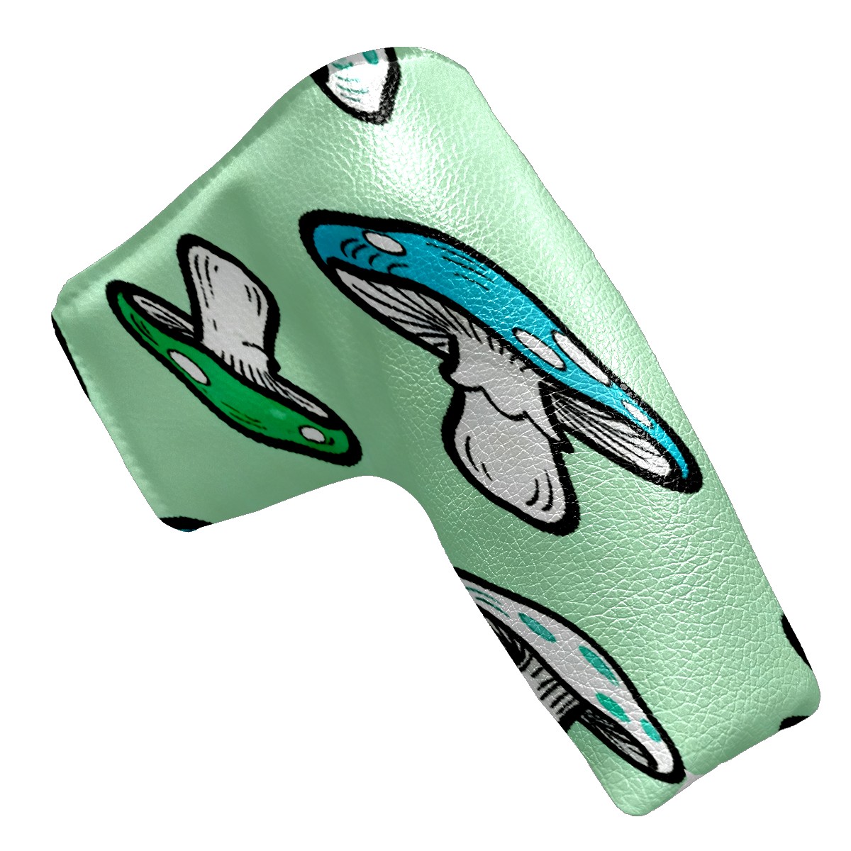 Lightweight Golf Putter Covers, Mid Mallet Putter Headcovers PU Leather Golf Club Covers for Man Women Golfer, Form Fitting Design Blue-green Mushrooms