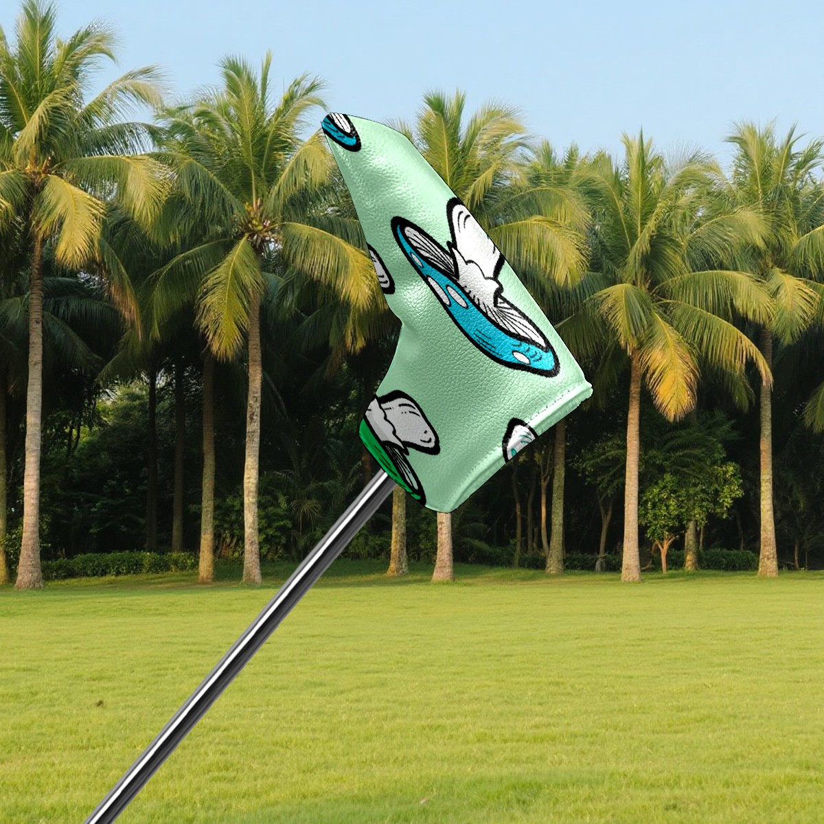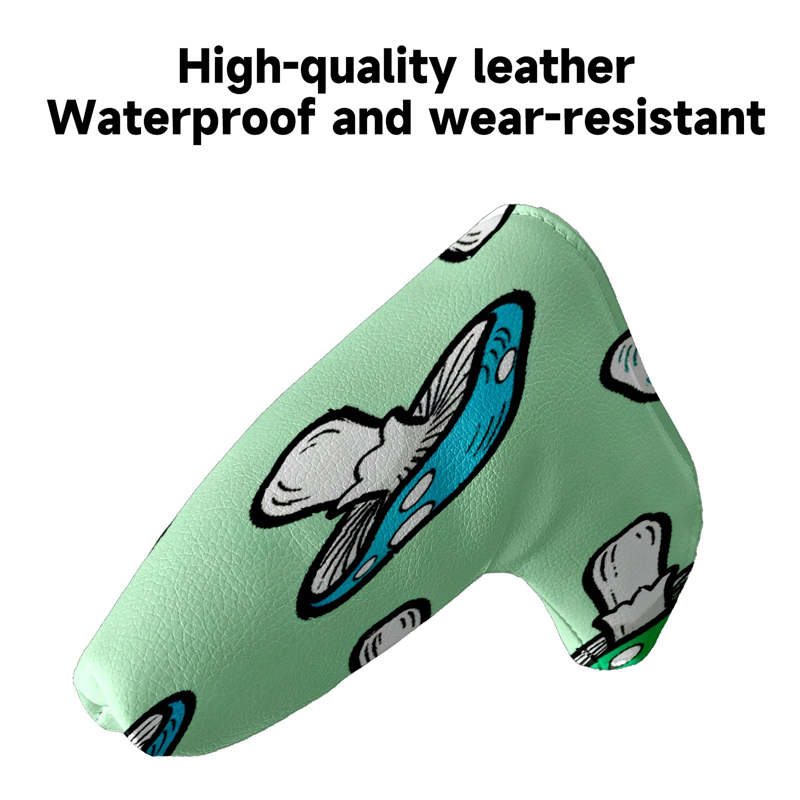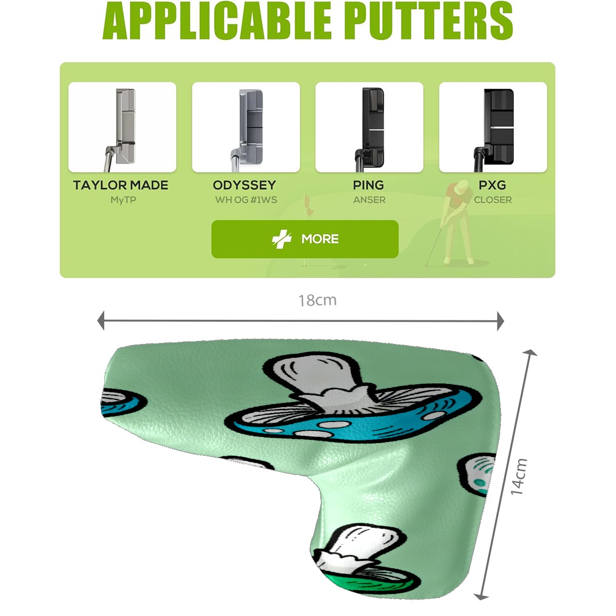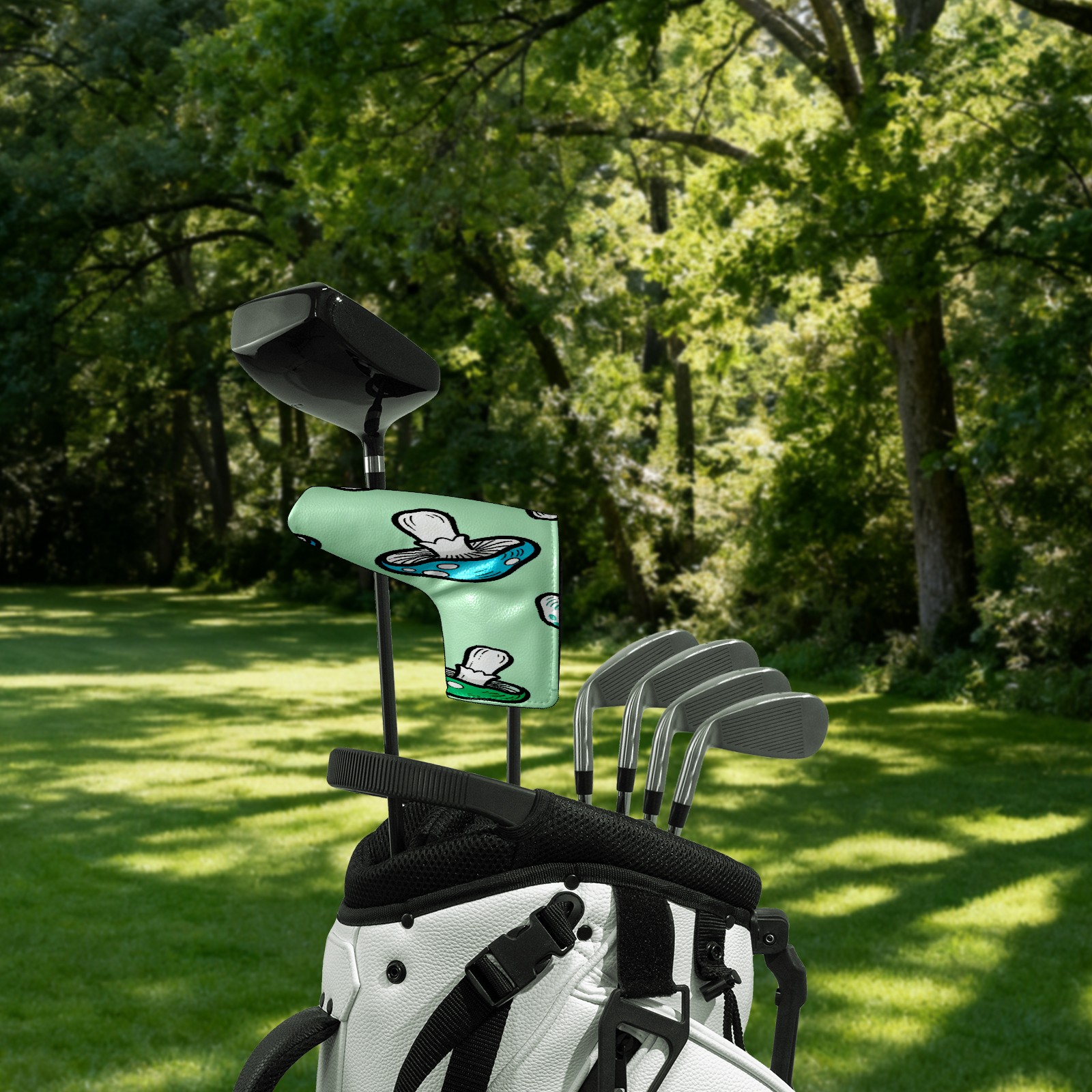 Lightweight Golf Putter Covers, Mid Mallet Putter Headcovers PU Leather Golf Club Covers for Man Women Golfer, Form Fitting Design Blue-green Mushrooms