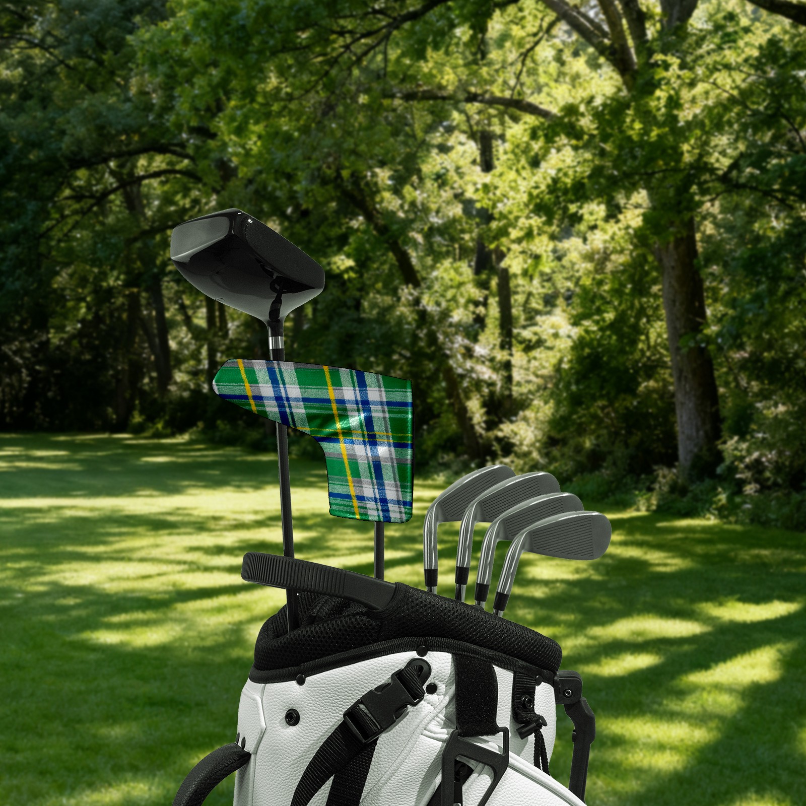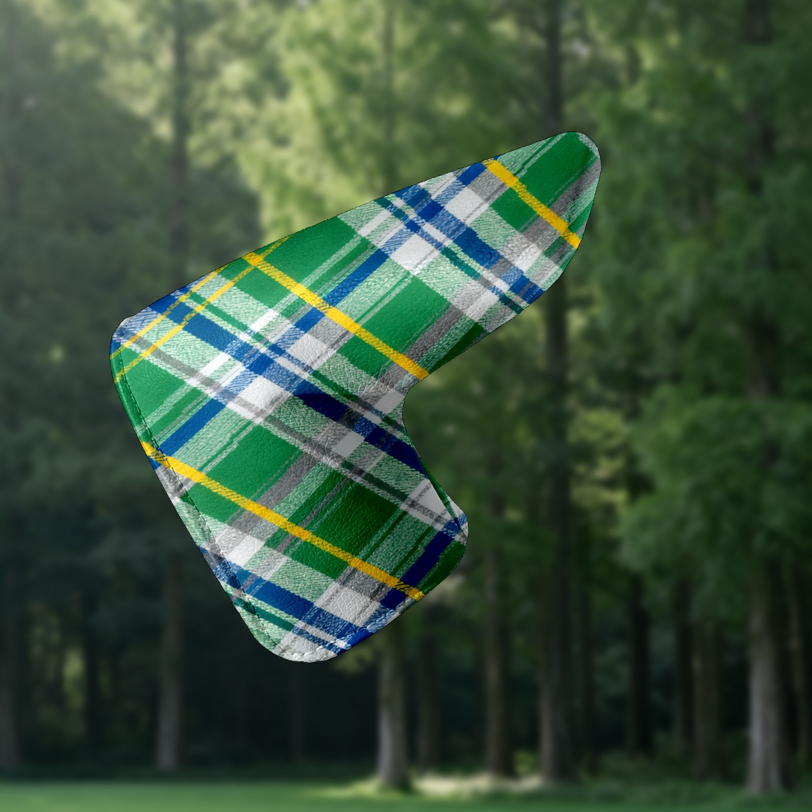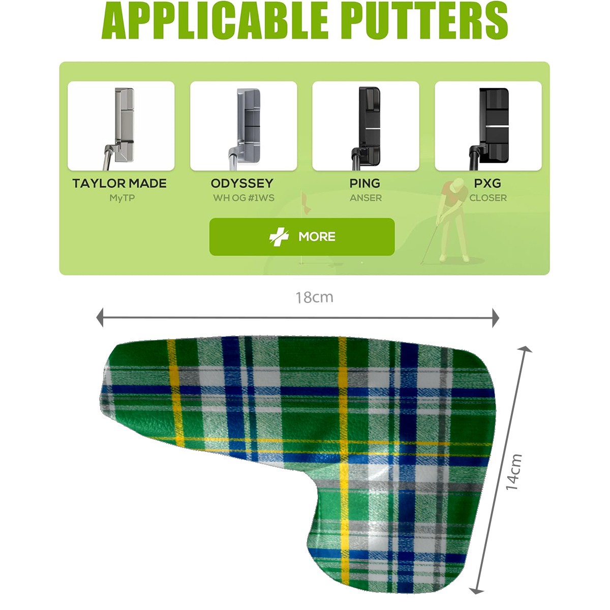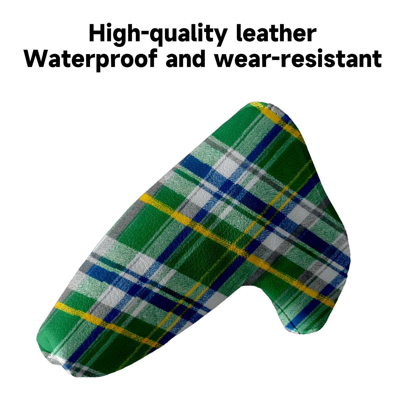 Lightweight Golf Putter Covers, Mid Mallet Putter Headcovers PU Leather Golf Club Covers for Man Women Golfer, Form Fitting Design Green Checkered Fabric