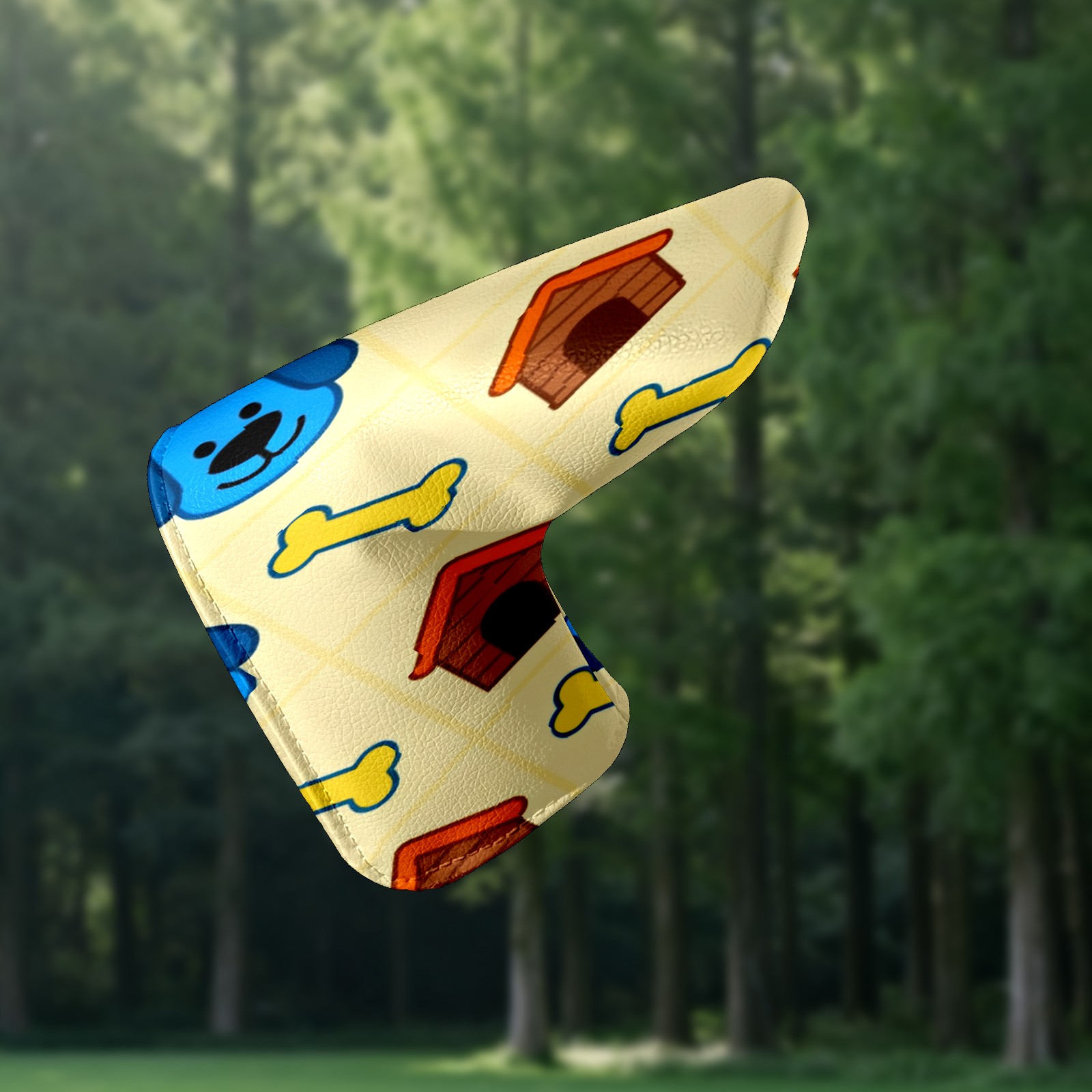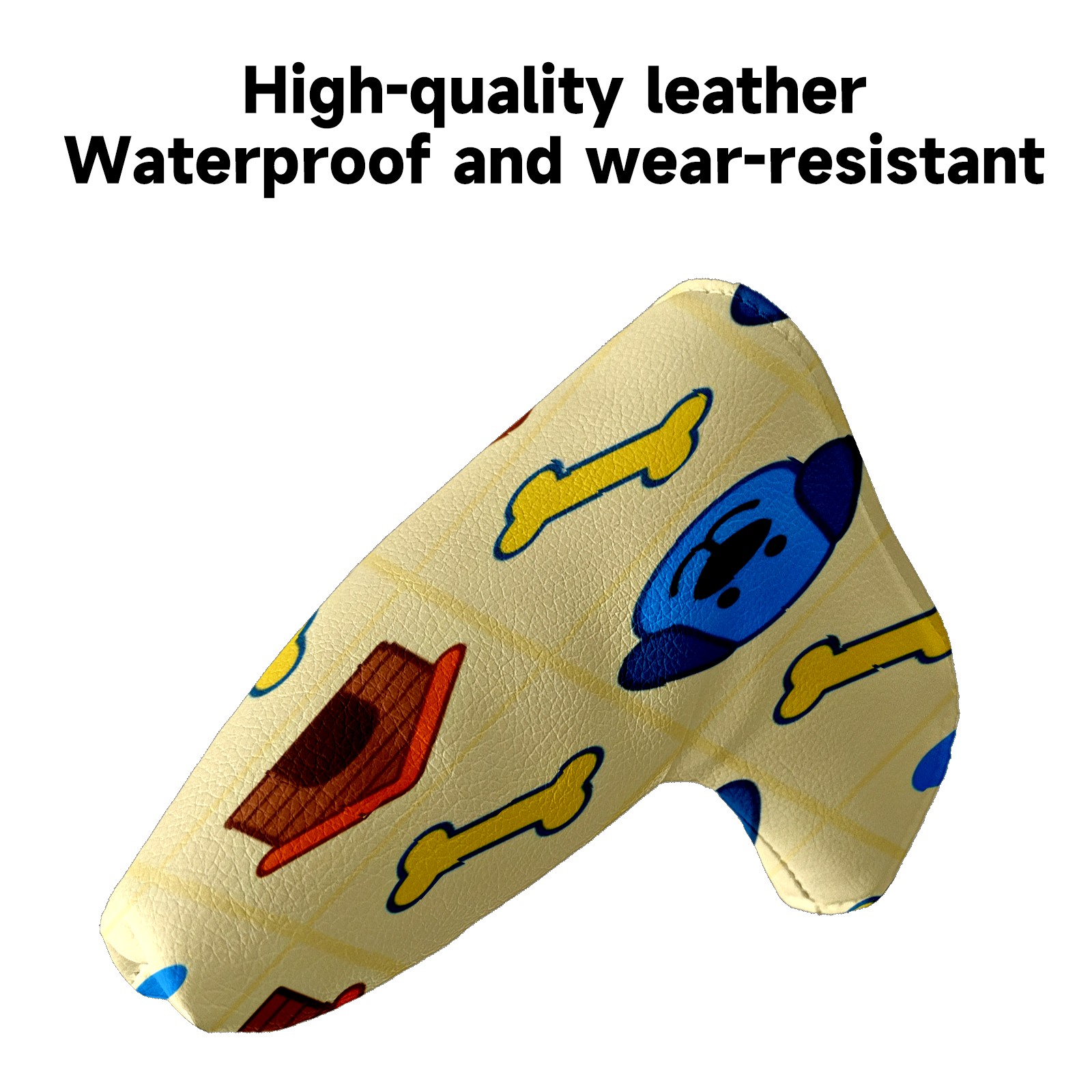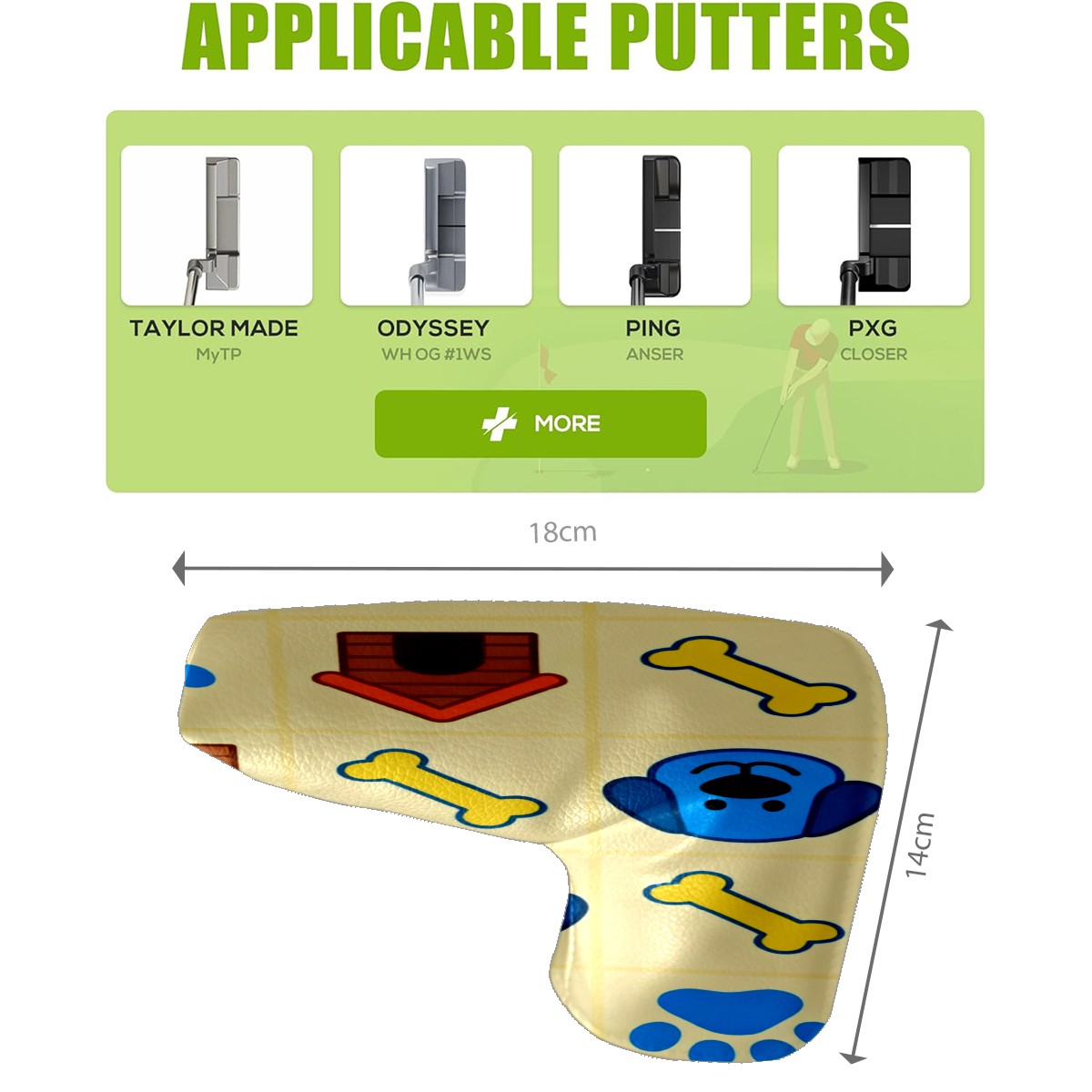 Lightweight Golf Putter Covers, Mid Mallet Putter Headcovers PU Leather Golf Club Covers for Man Women Golfer, Form Fitting Design Blue Dog Head Doghouse