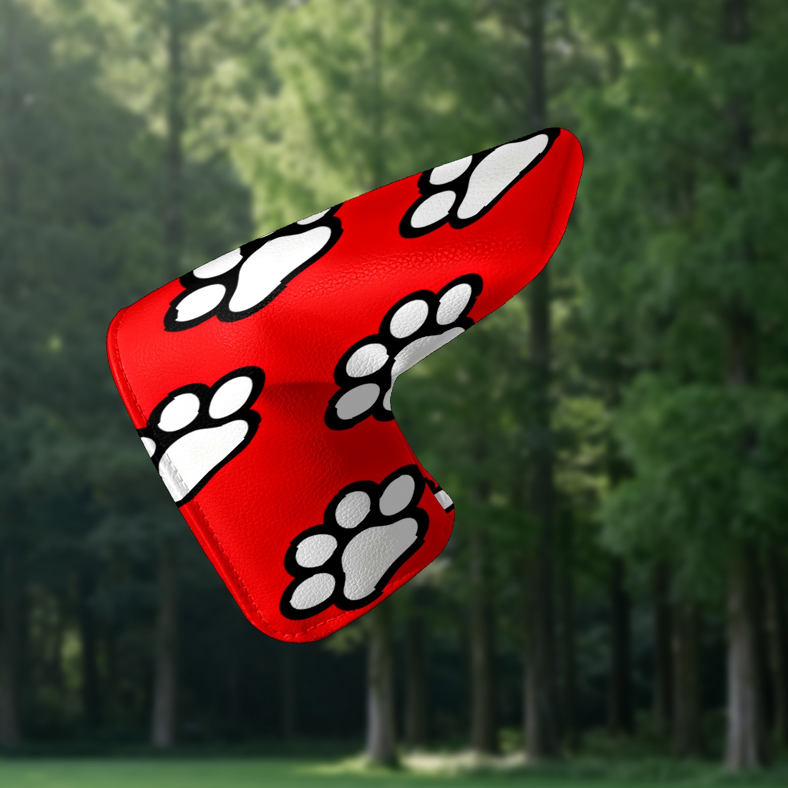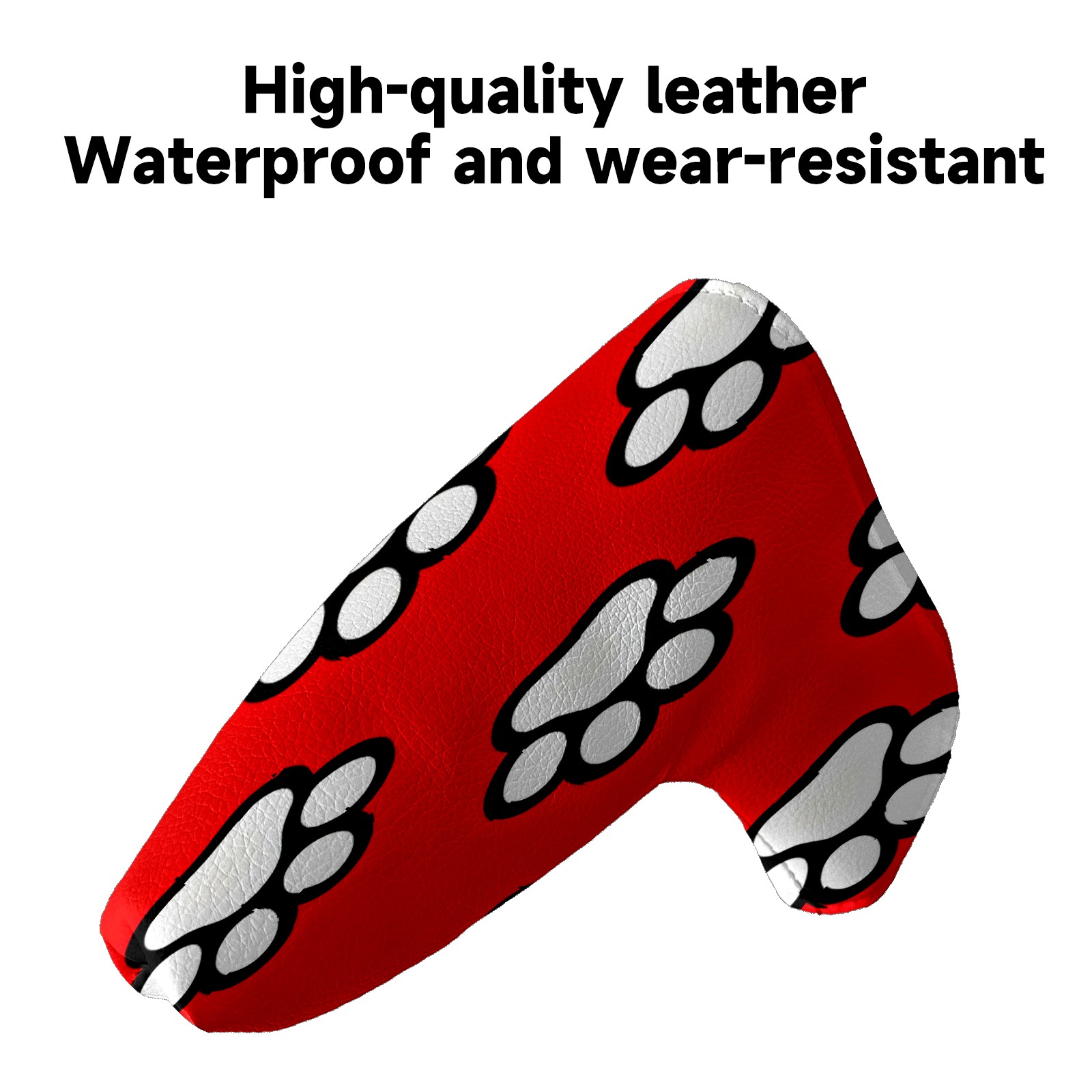 Lightweight Golf Putter Covers, Mid Mallet Putter Headcovers PU Leather Golf Club Covers for Man Women Golfer, Form Fitting Design White Footprints