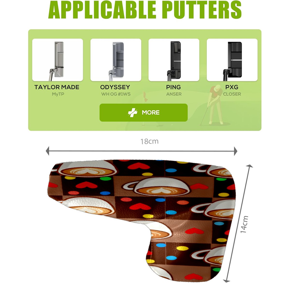 Lightweight Golf Putter Covers, Mid Mallet Putter Headcovers PU Leather Golf Club Covers for Man Women Golfer, Form Fitting Design Heart-shaped Coffee Cup