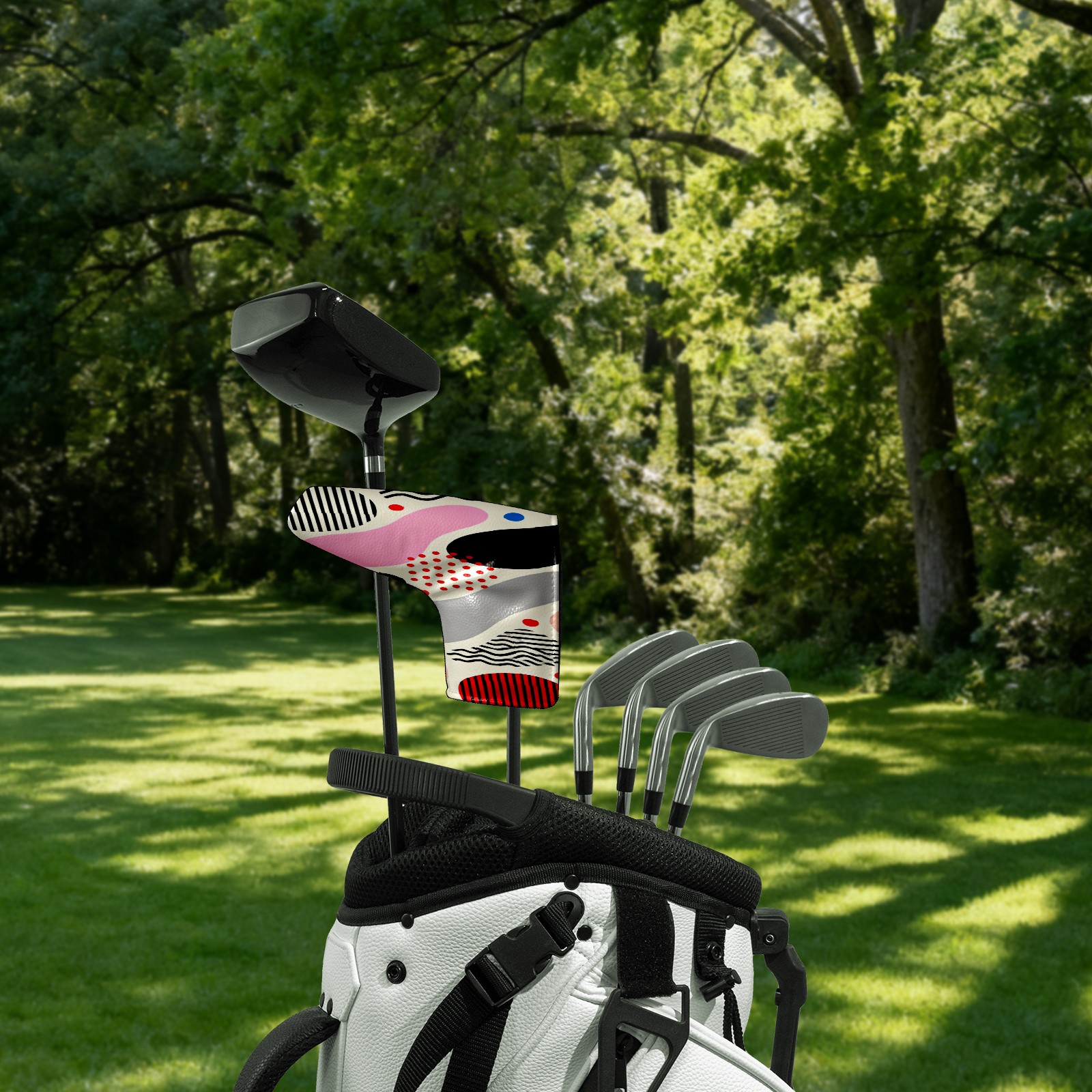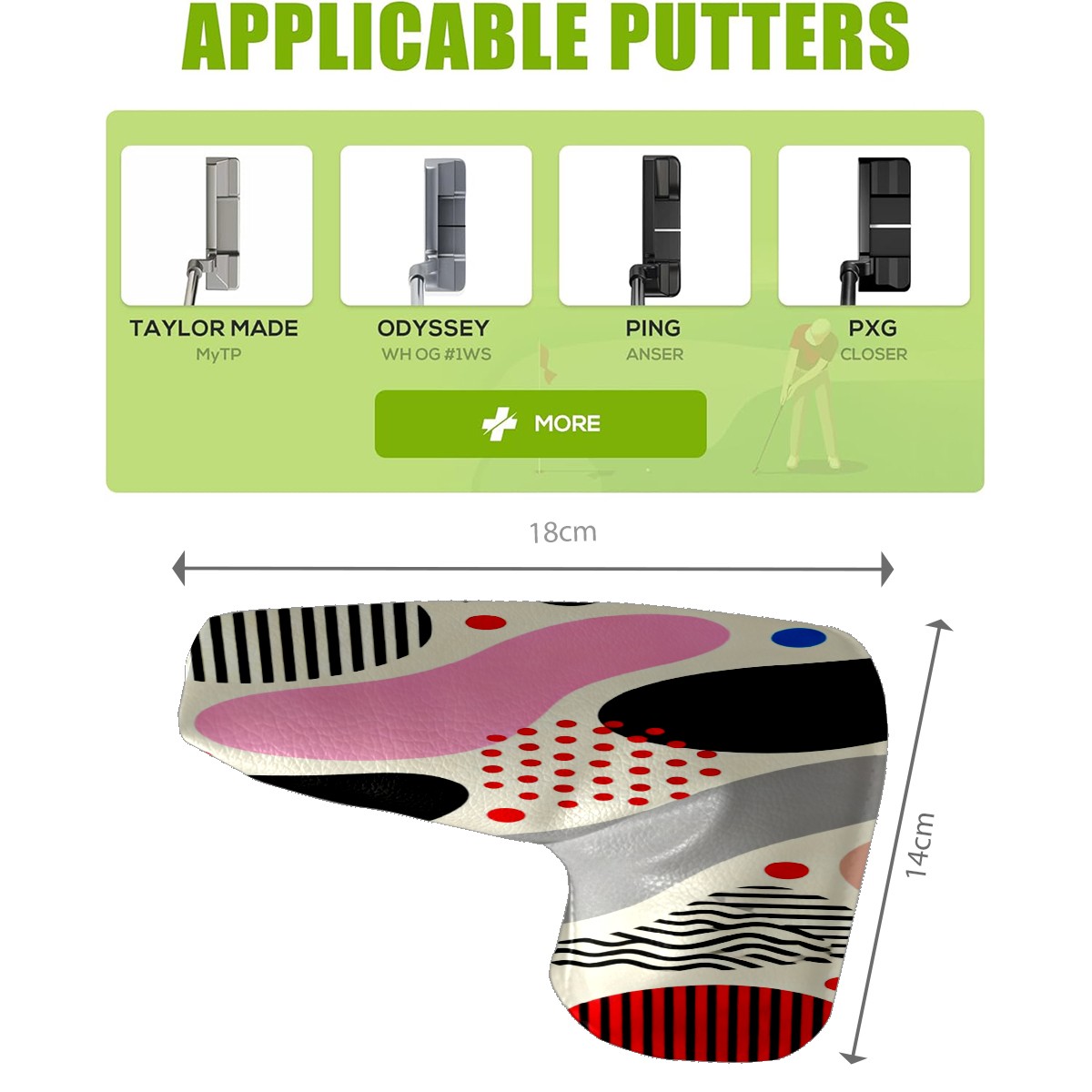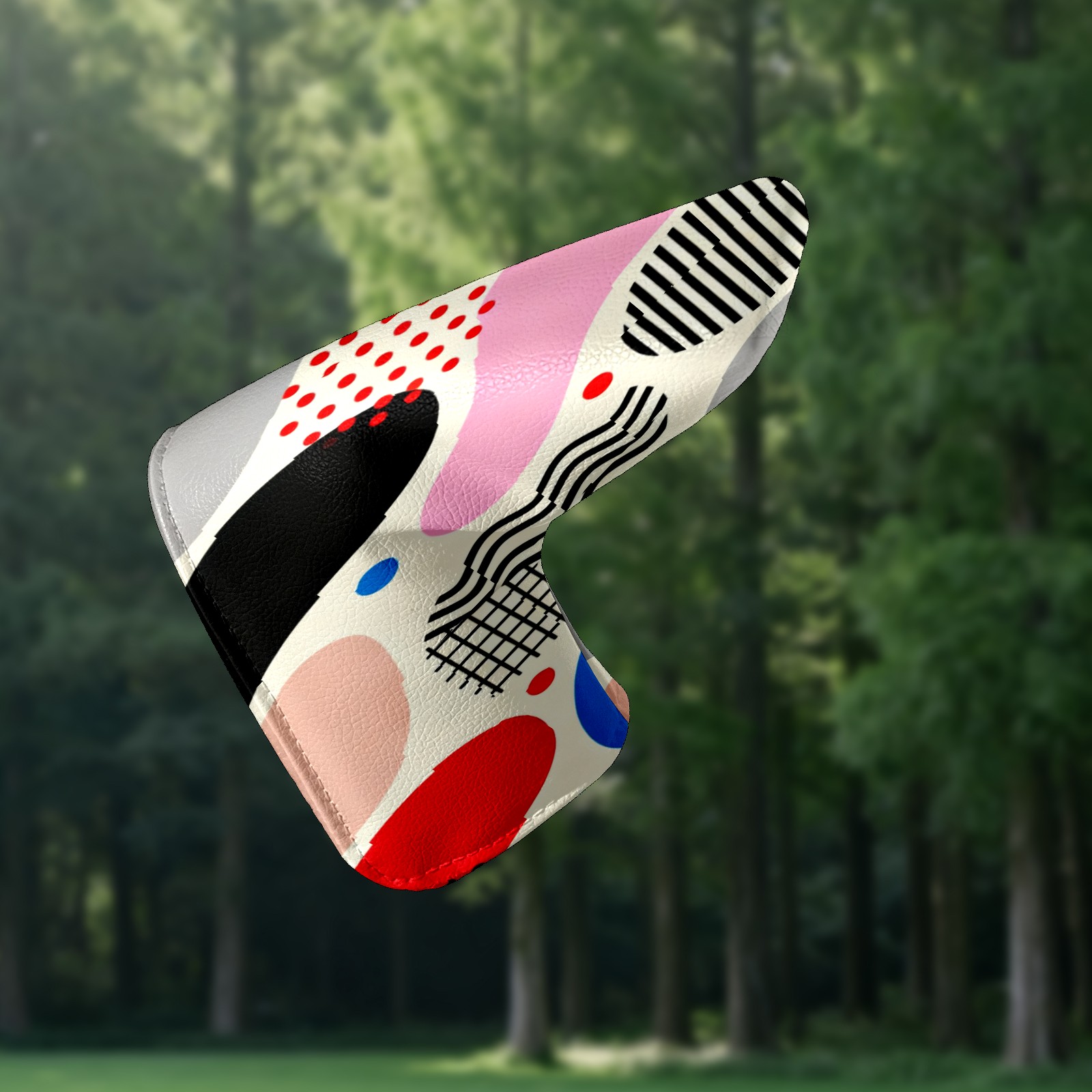 Lightweight Golf Putter Covers, Mid Mallet Putter Headcovers PU Leather Golf Club Covers for Man Women Golfer, Form Fitting Design Memphis-style Abstract Patterns