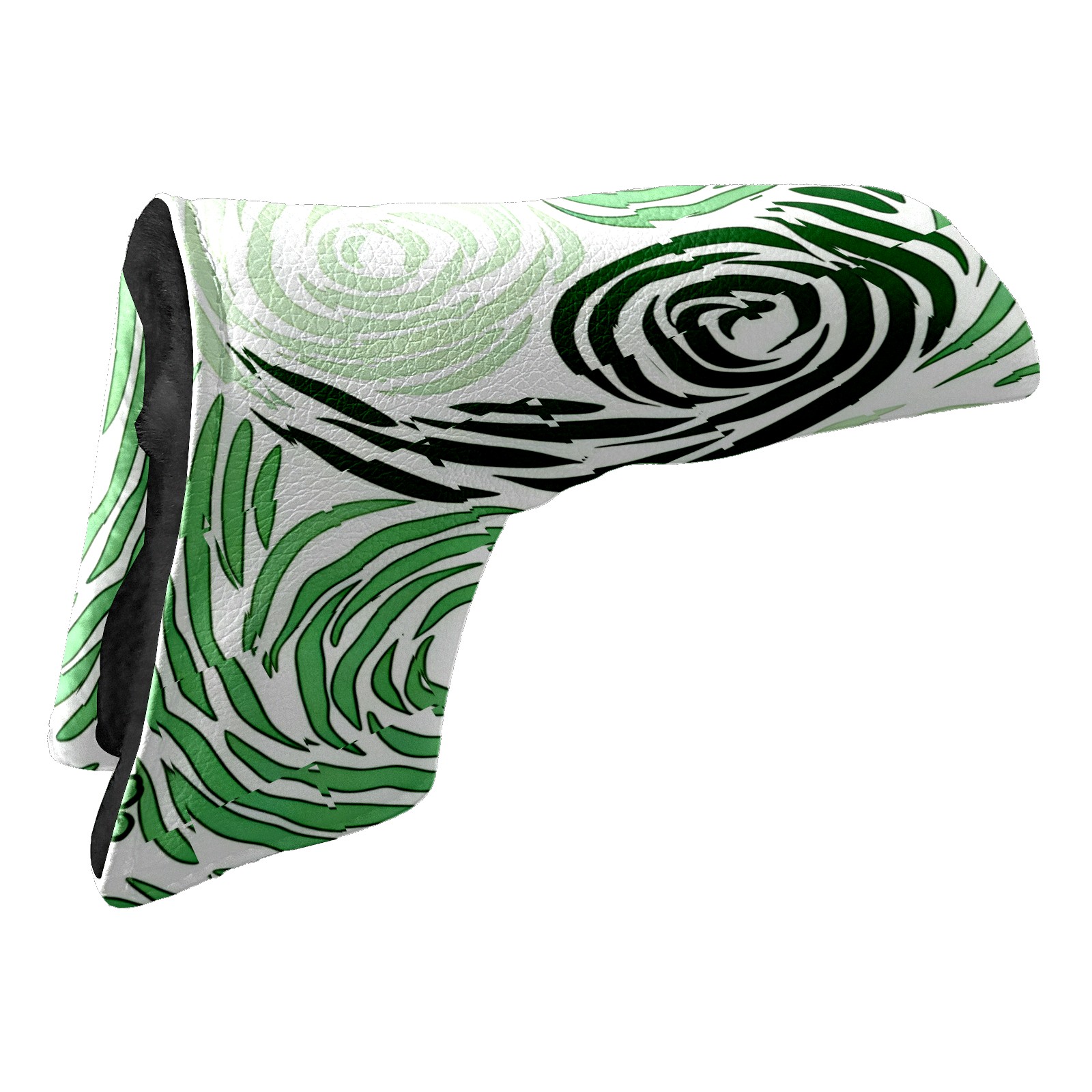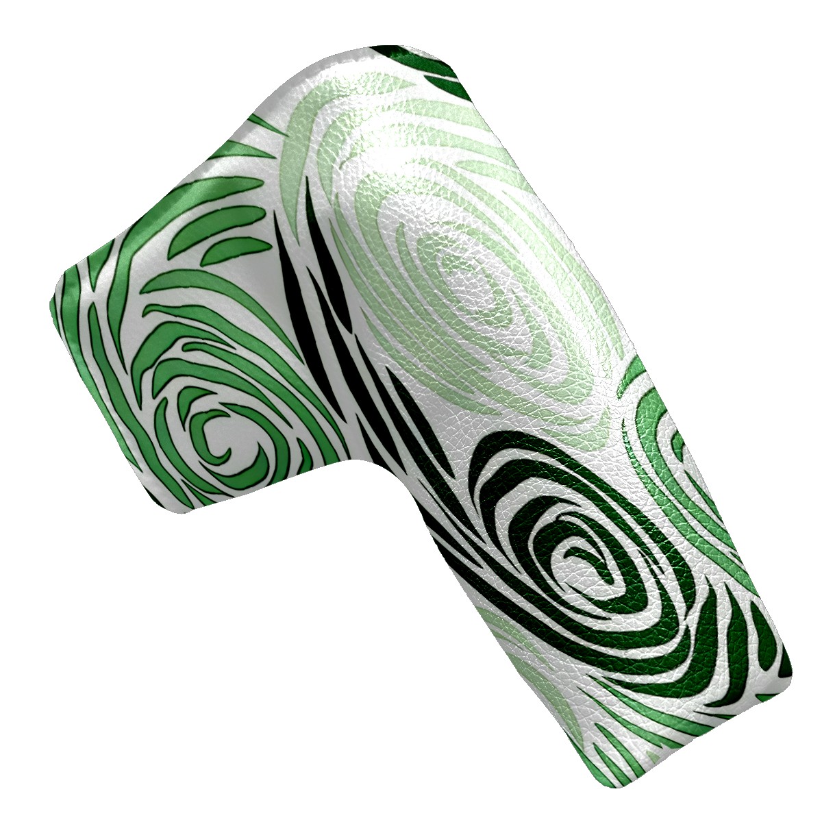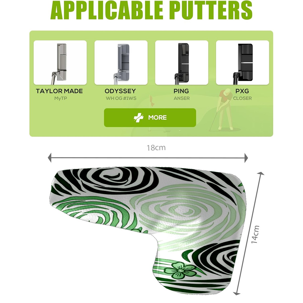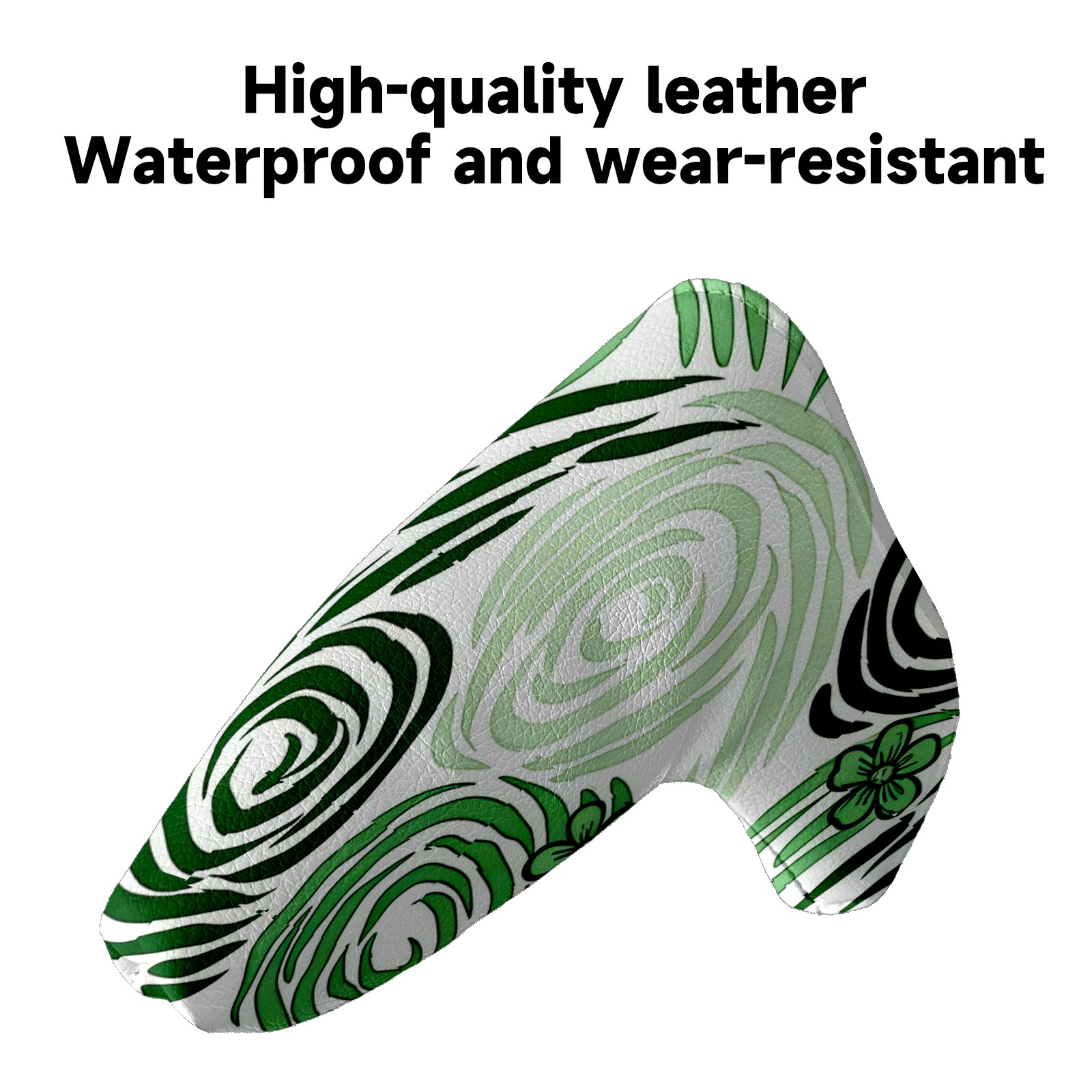 Lightweight Golf Putter Covers, Mid Mallet Putter Headcovers PU Leather Golf Club Covers for Man Women Golfer, Form Fitting Design Green Striped Swirls