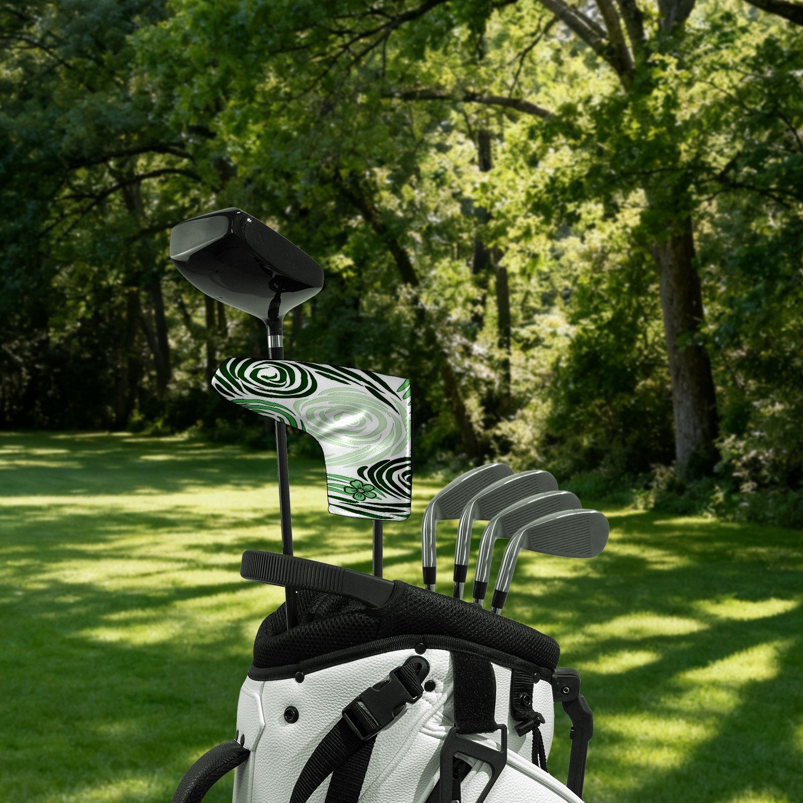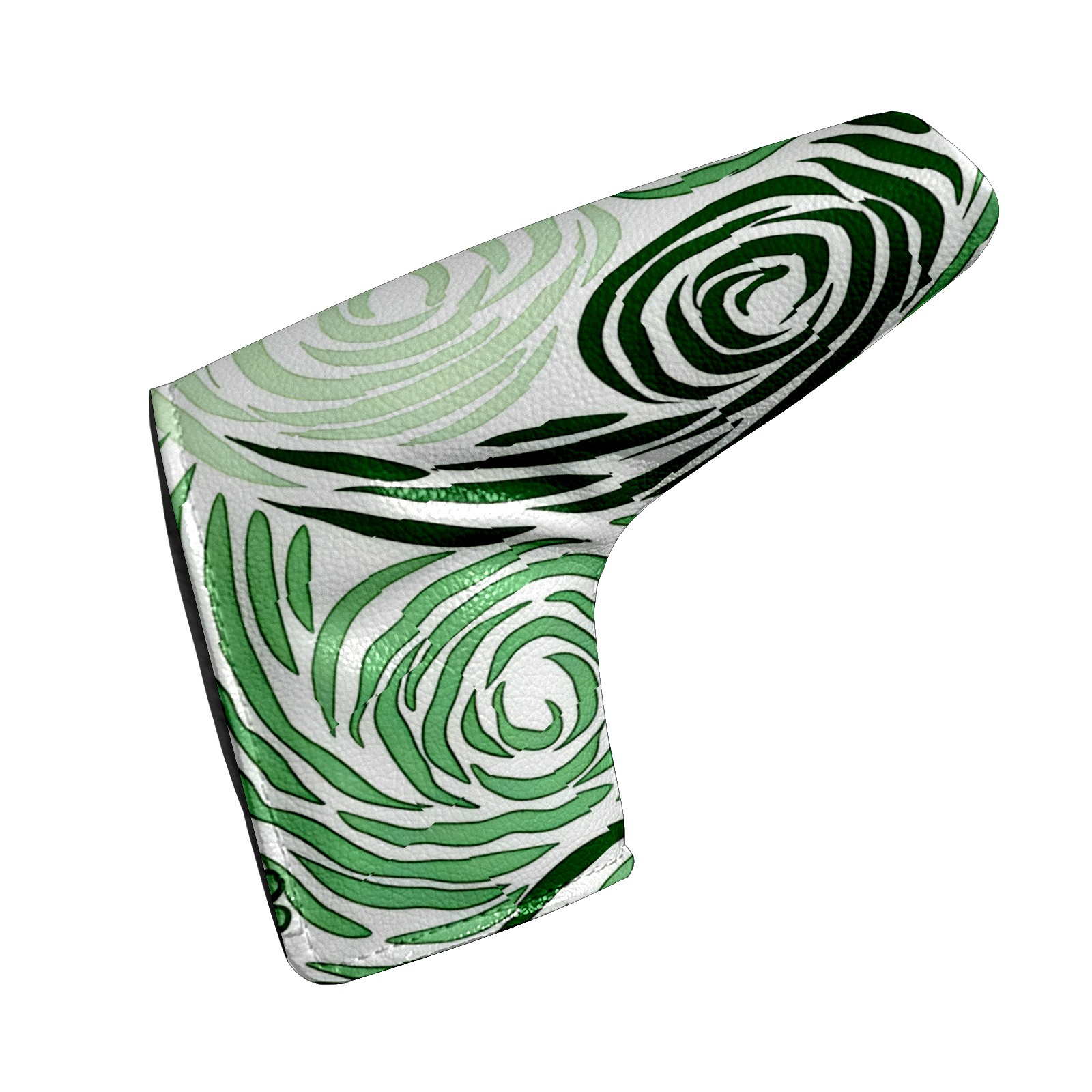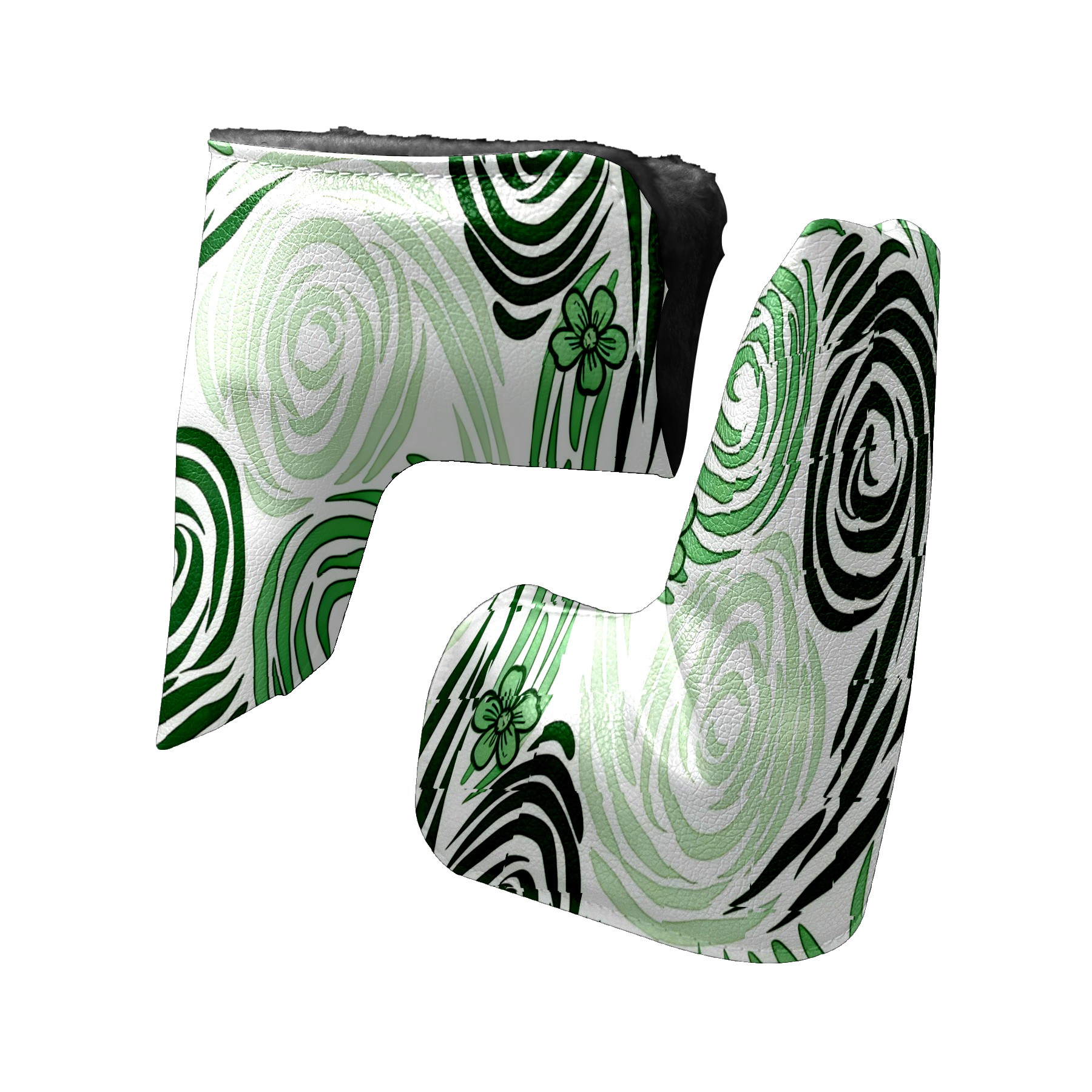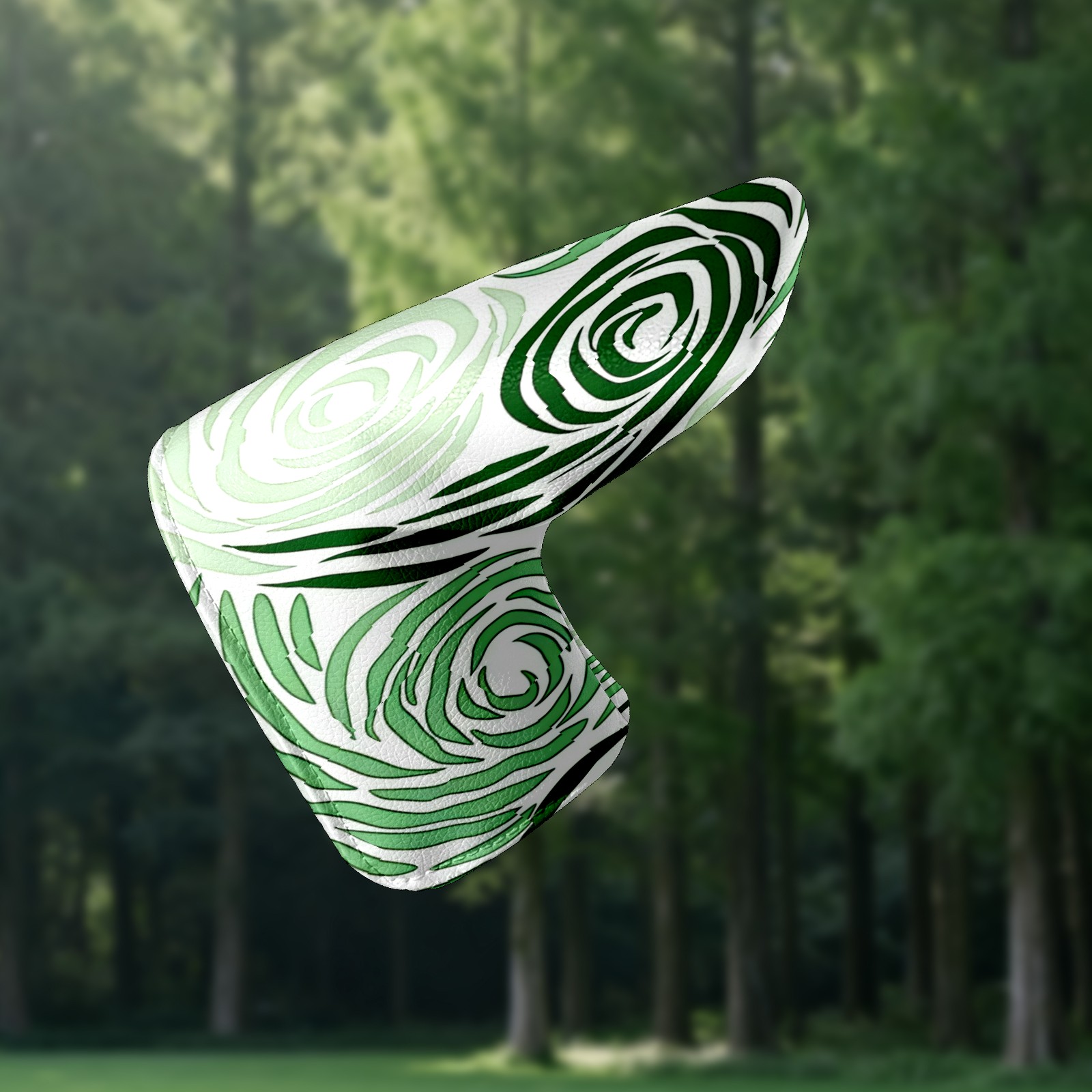Lightweight Golf Putter Covers, Mid Mallet Putter Headcovers PU Leather Golf Club Covers for Man Women Golfer, Form Fitting Design Green Striped Swirls