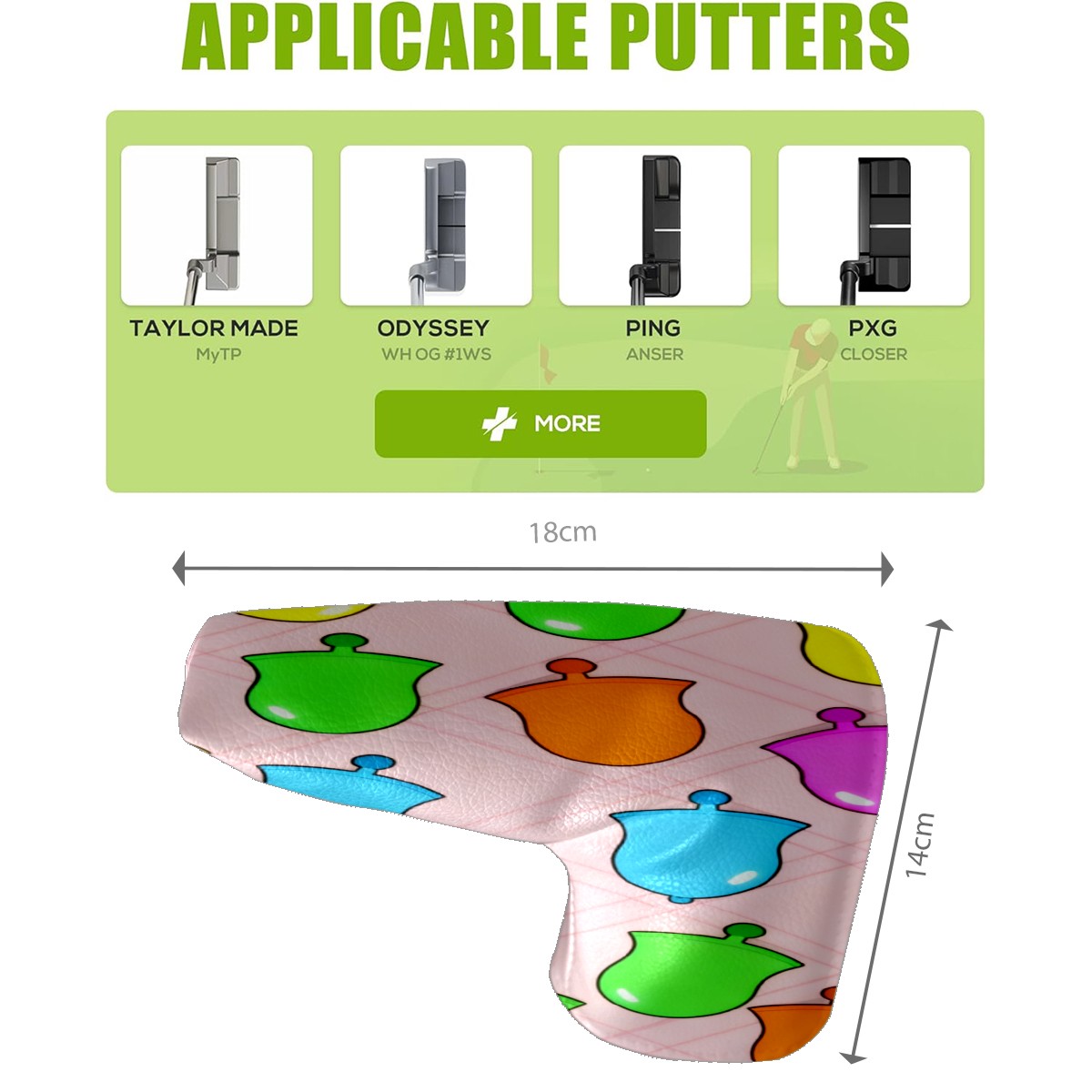 Lightweight Golf Putter Covers, Mid Mallet Putter Headcovers PU Leather Golf Club Covers for Man Women Golfer, Form Fitting Design Colorful Bells