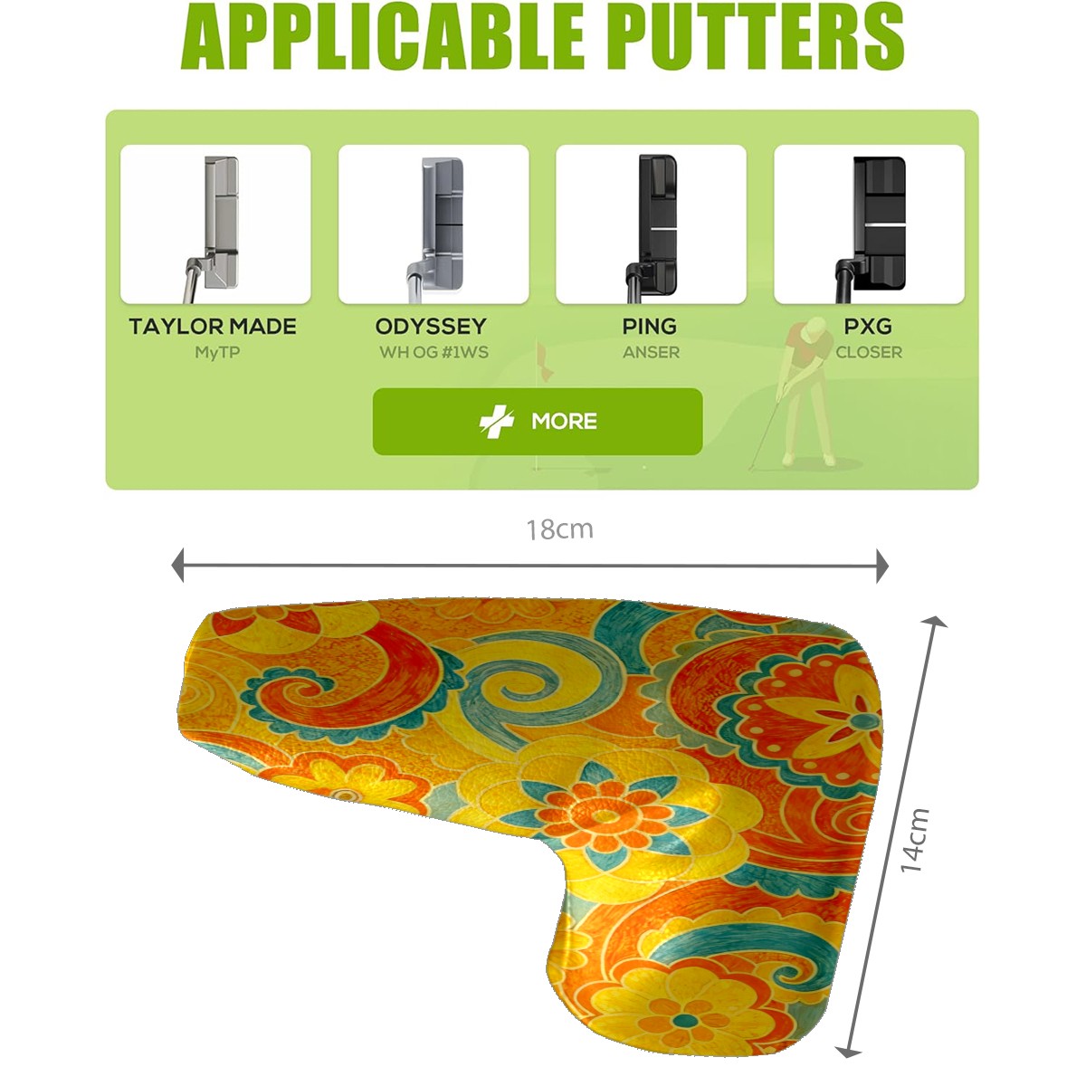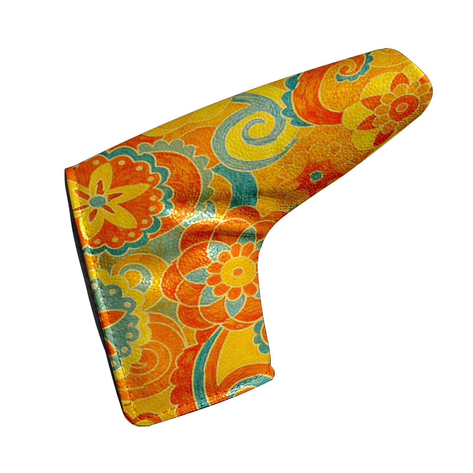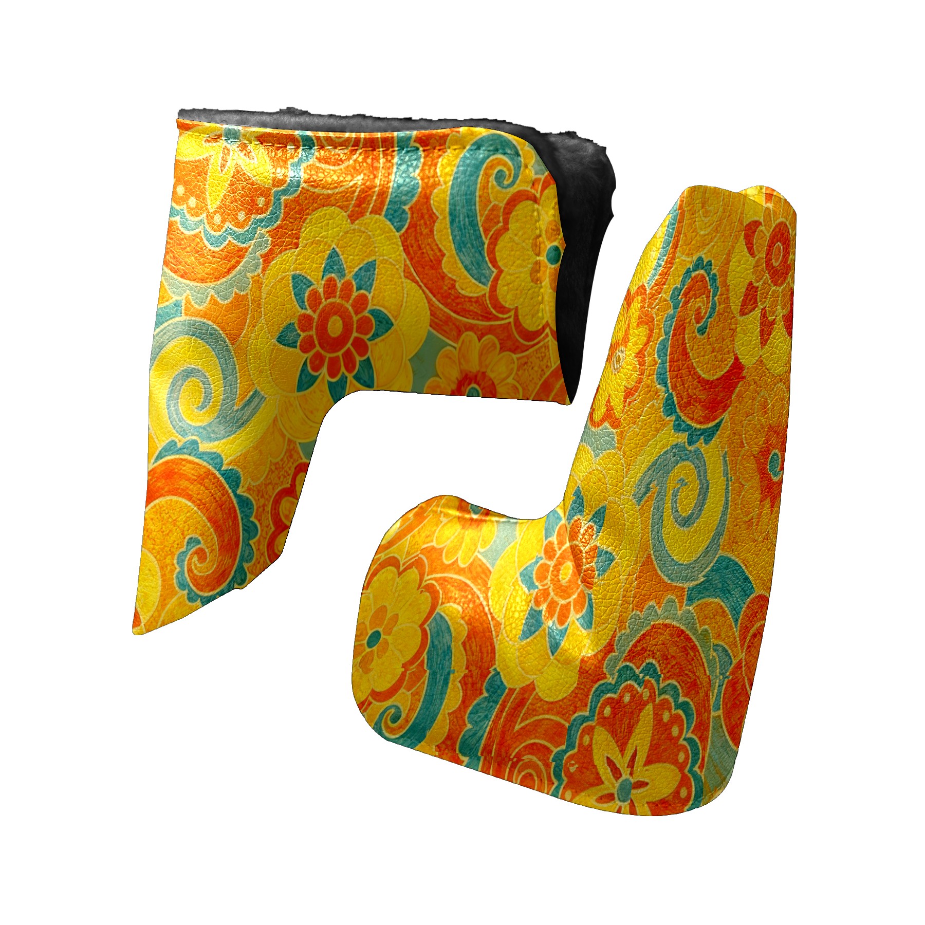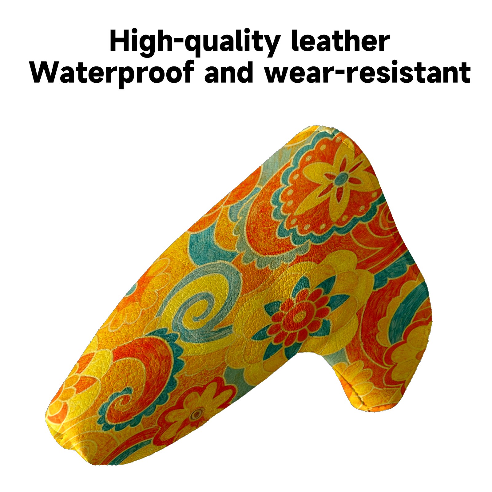 Lightweight Golf Putter Covers, Mid Mallet Putter Headcovers PU Leather Golf Club Covers for Man Women Golfer, Form Fitting Design Orange Flower