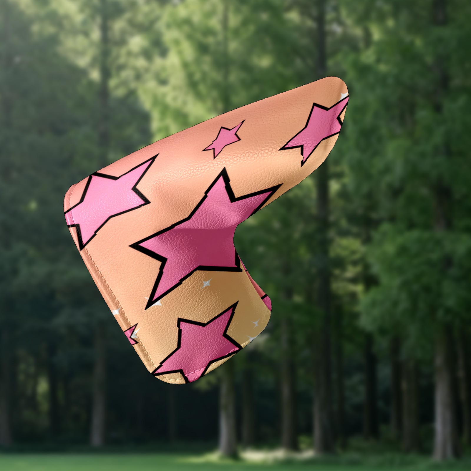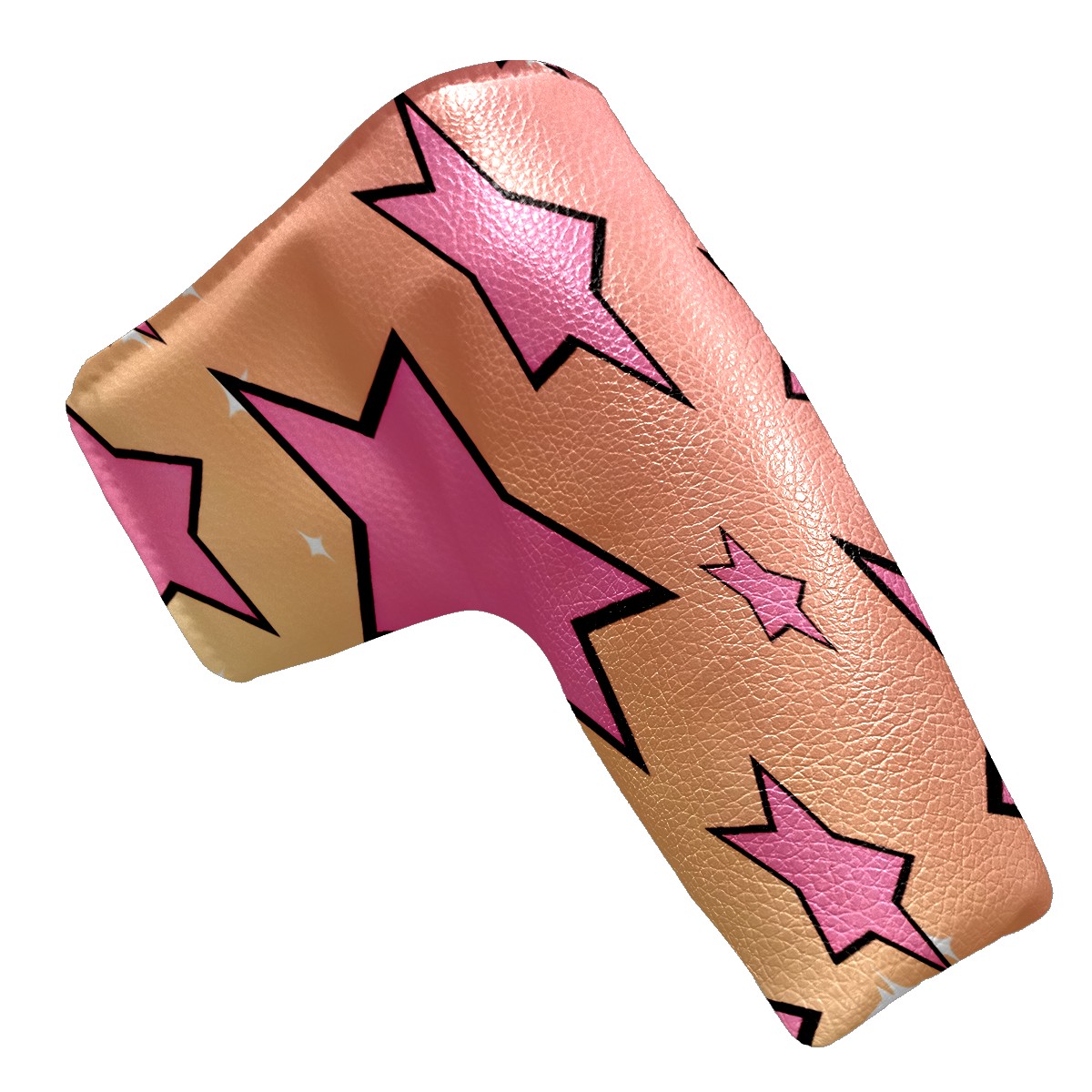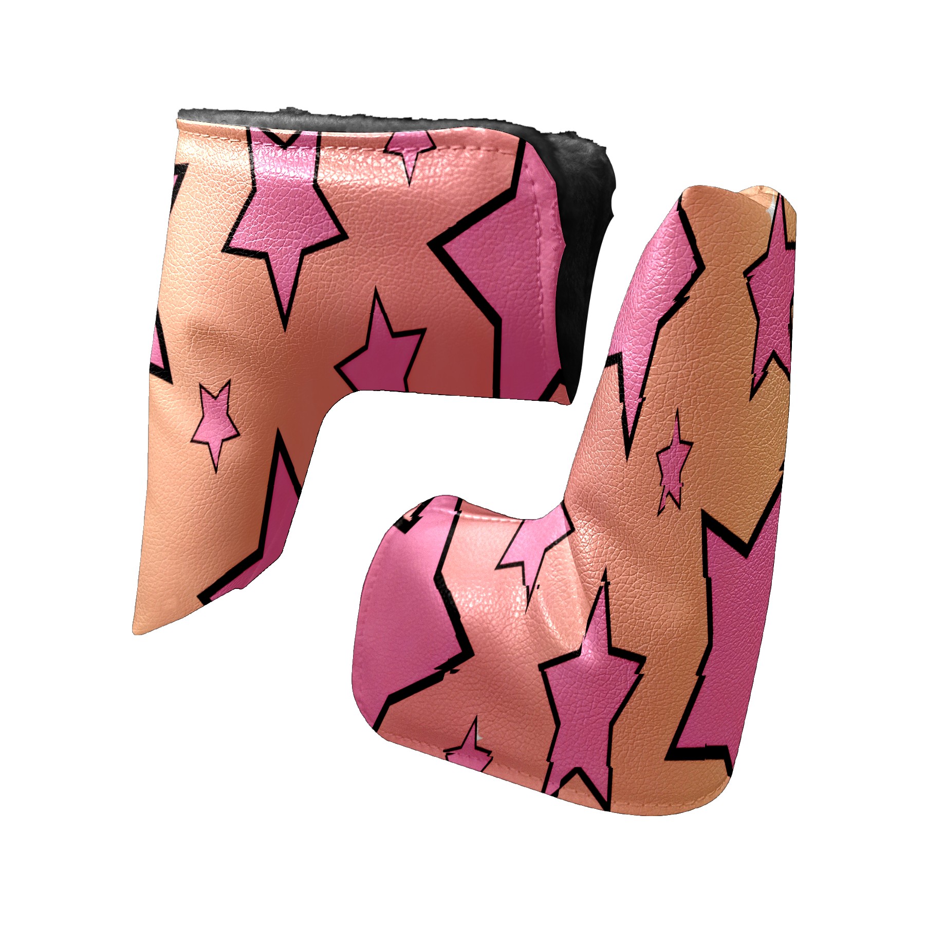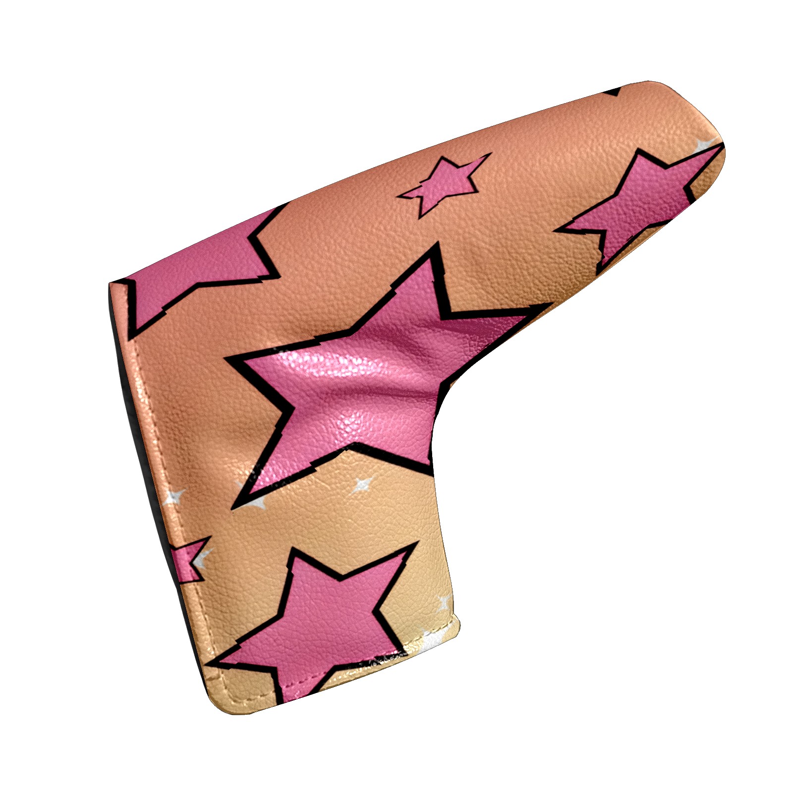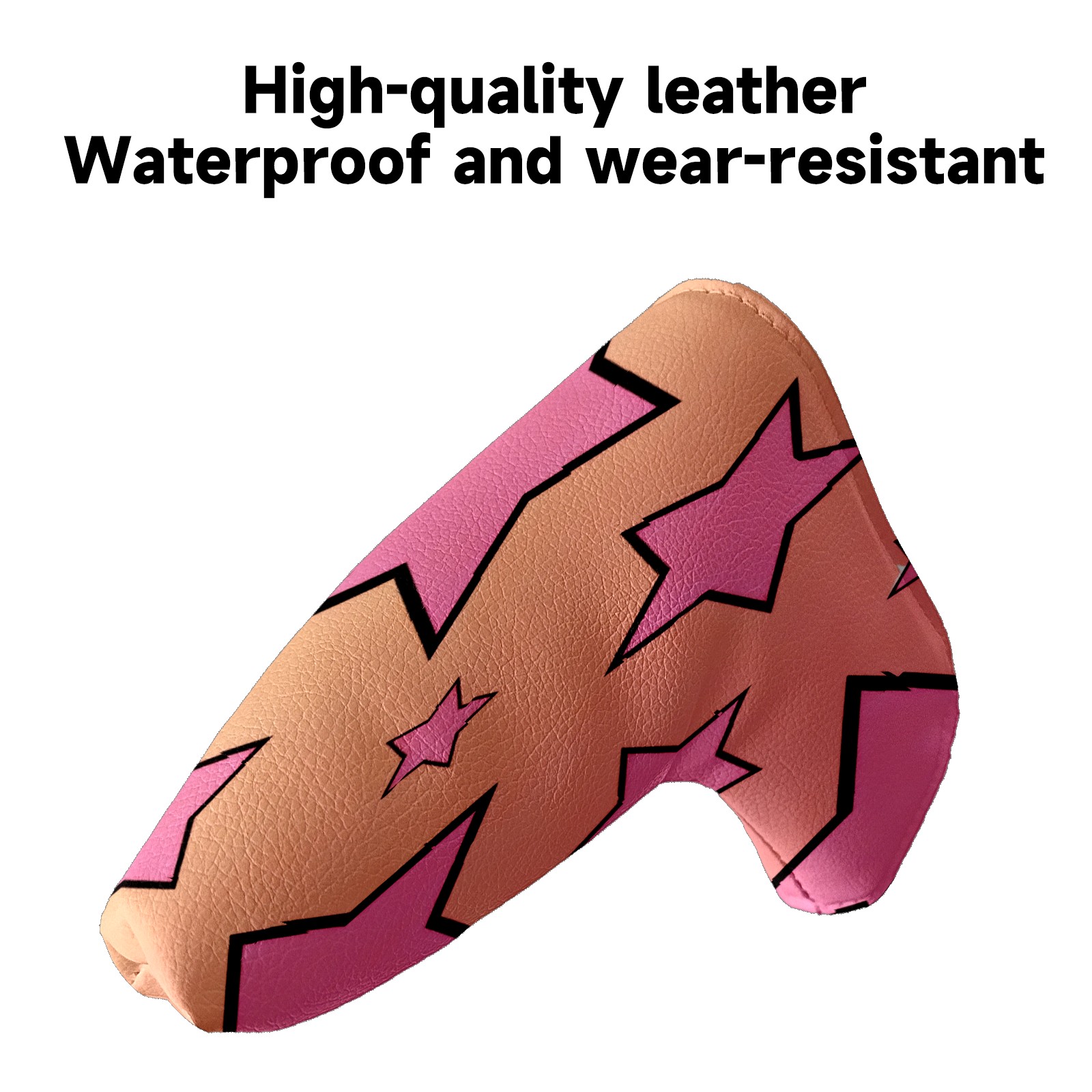 Lightweight Golf Putter Covers, Mid Mallet Putter Headcovers PU Leather Golf Club Covers for Man Women Golfer, Form Fitting Design Pink Star