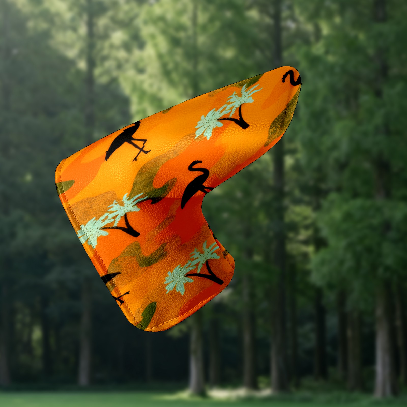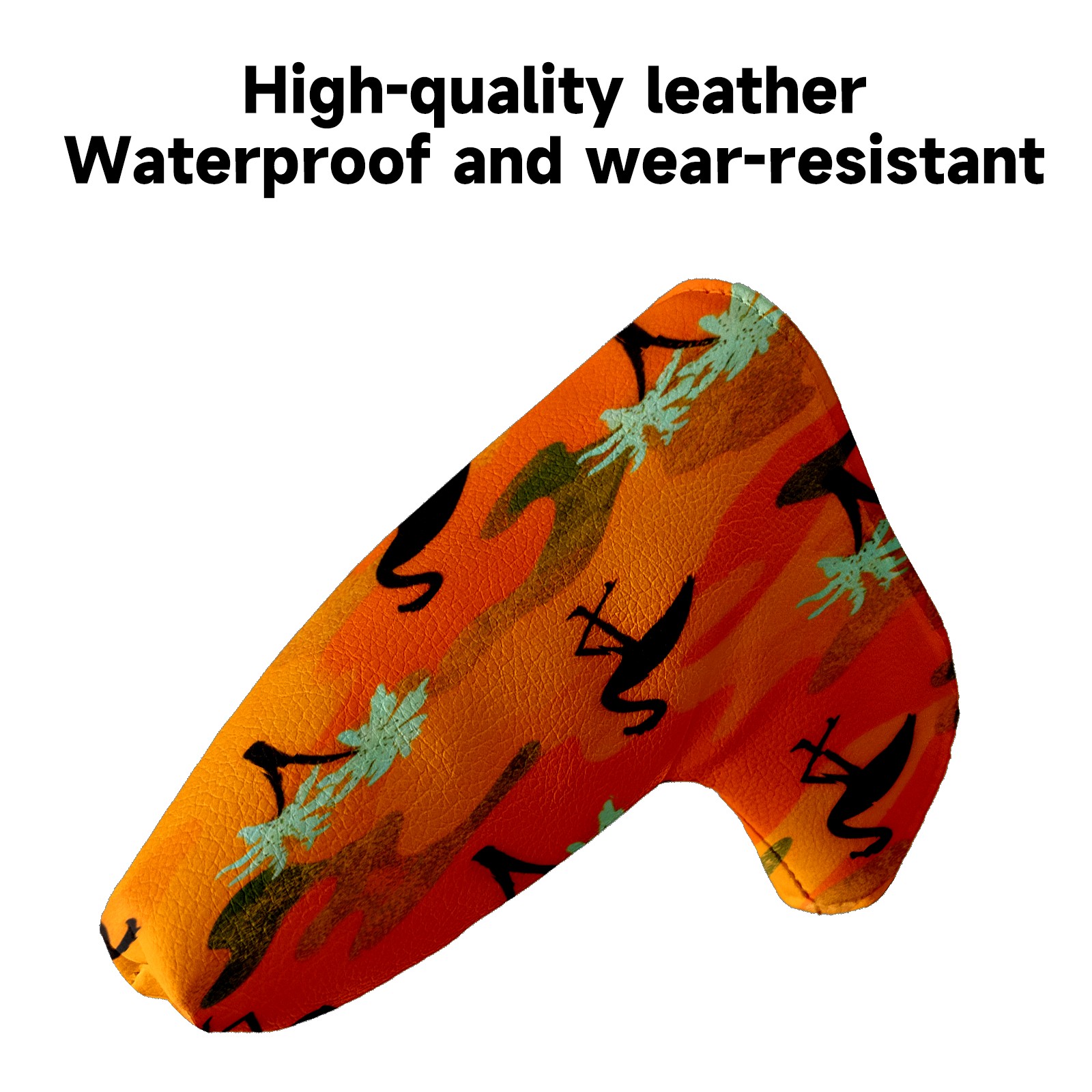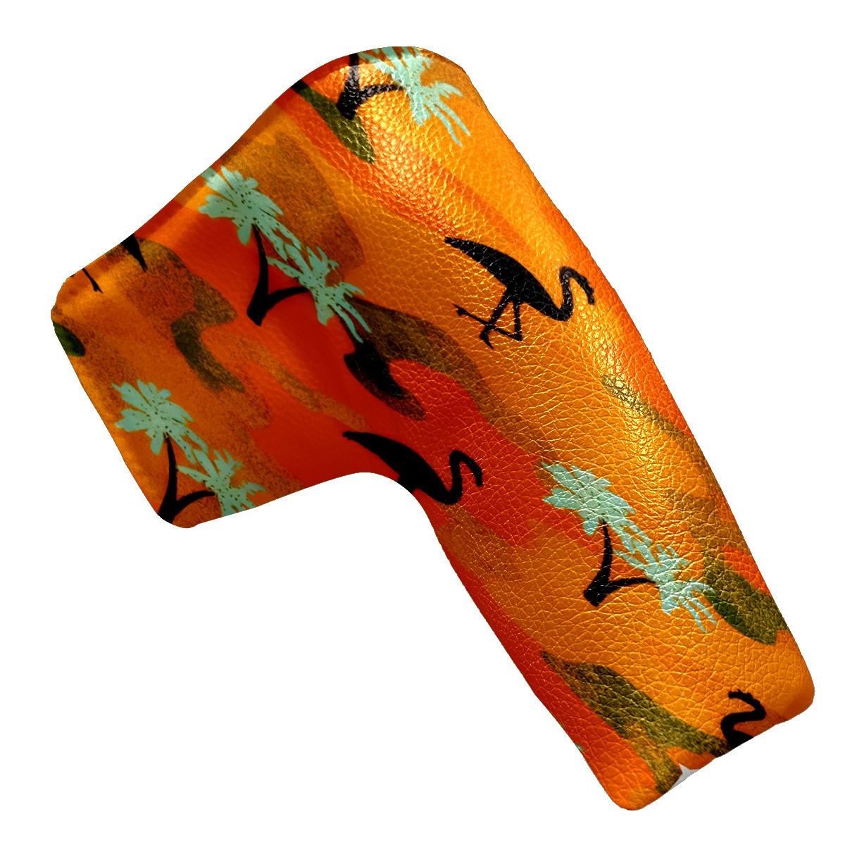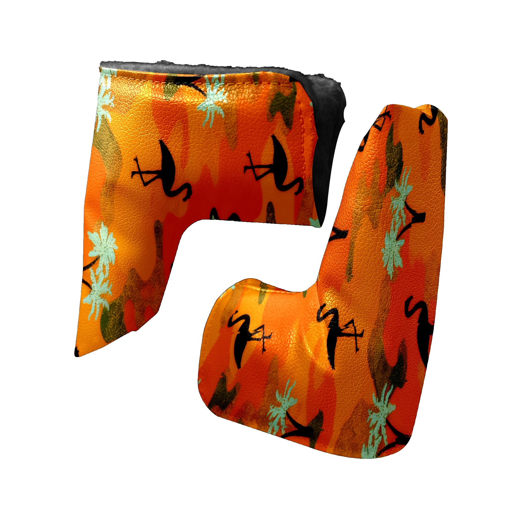 Lightweight Golf Putter Covers, Mid Mallet Putter Headcovers PU Leather Golf Club Covers for Man Women Golfer, Form Fitting Design Orange Camouflage Flamingos