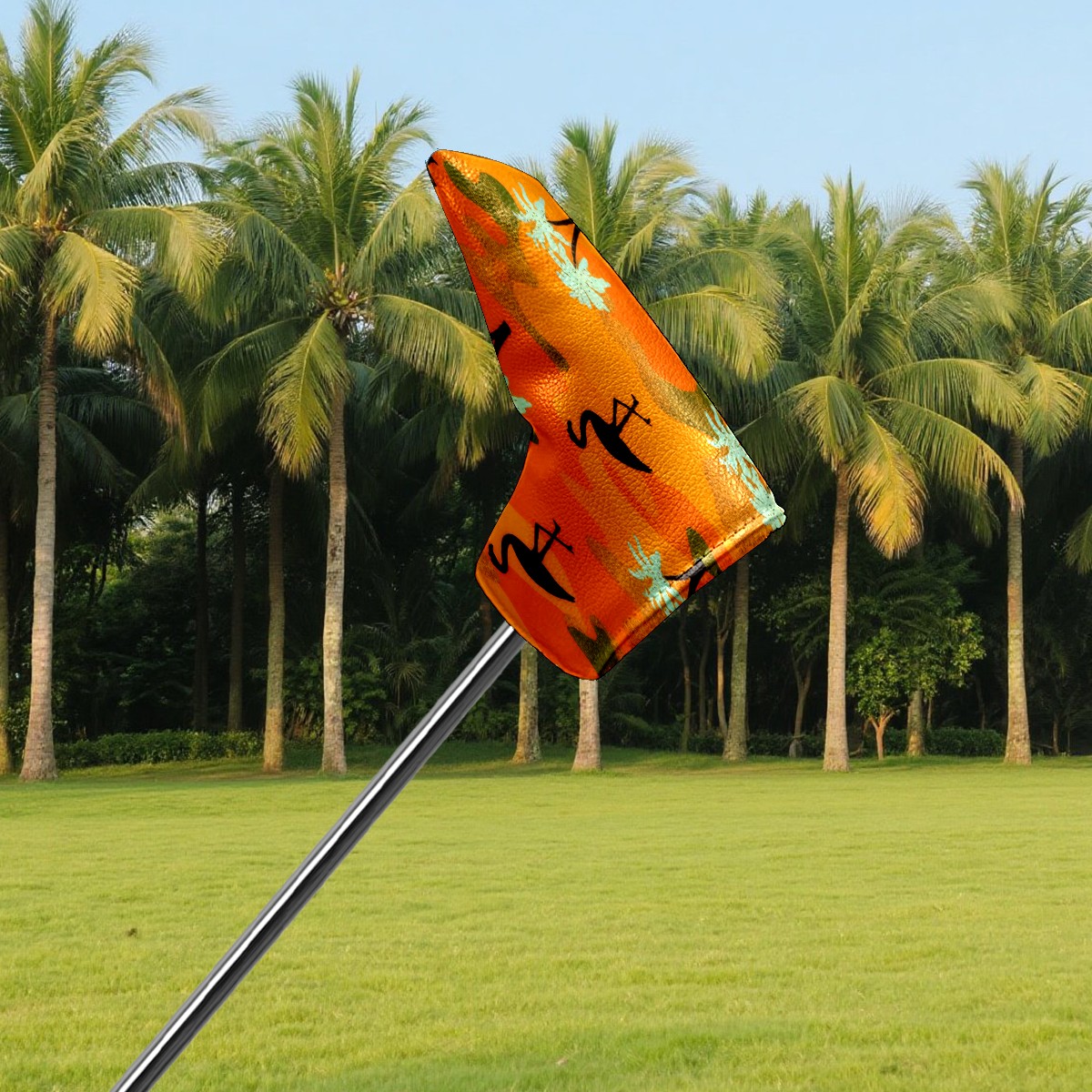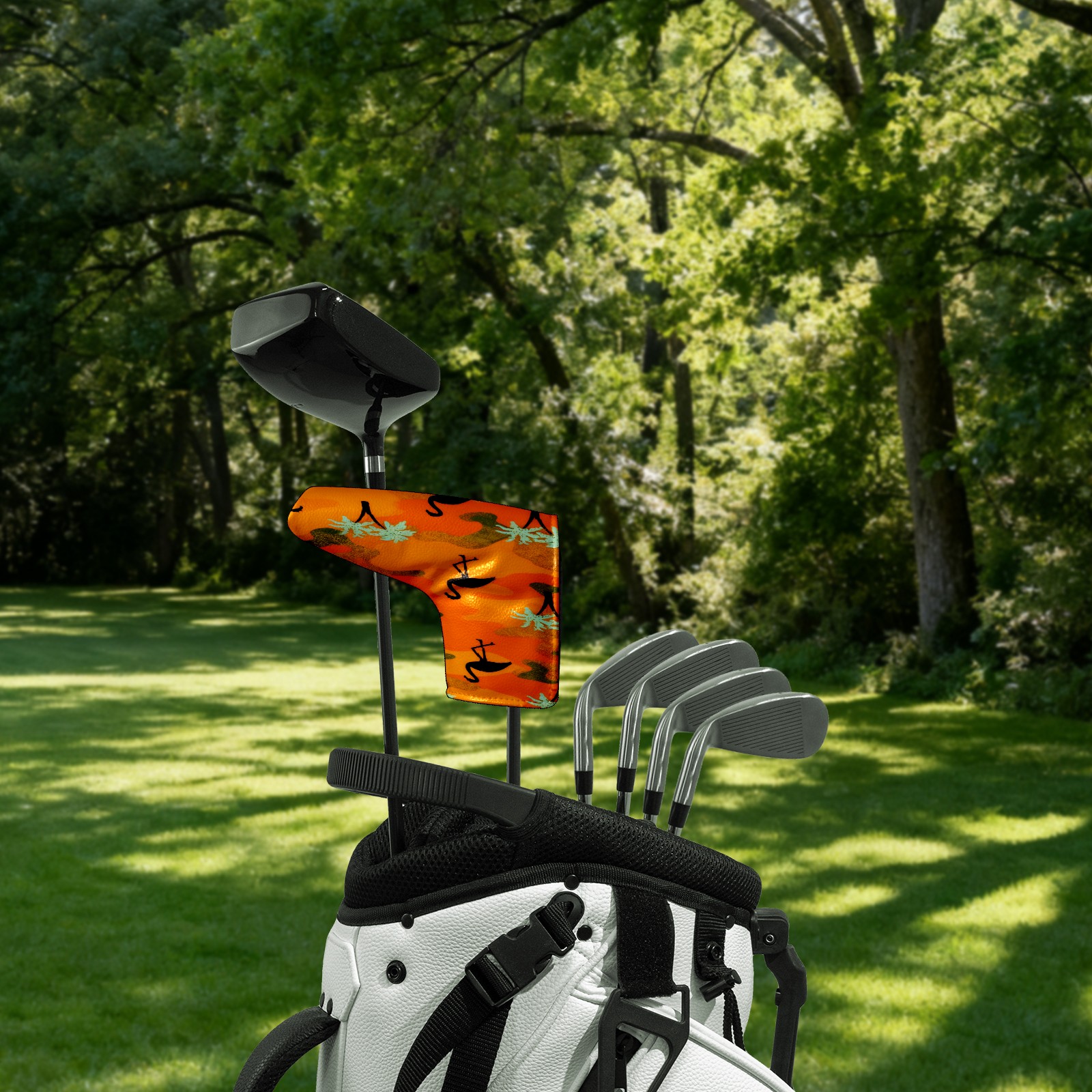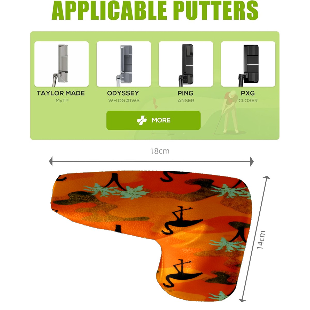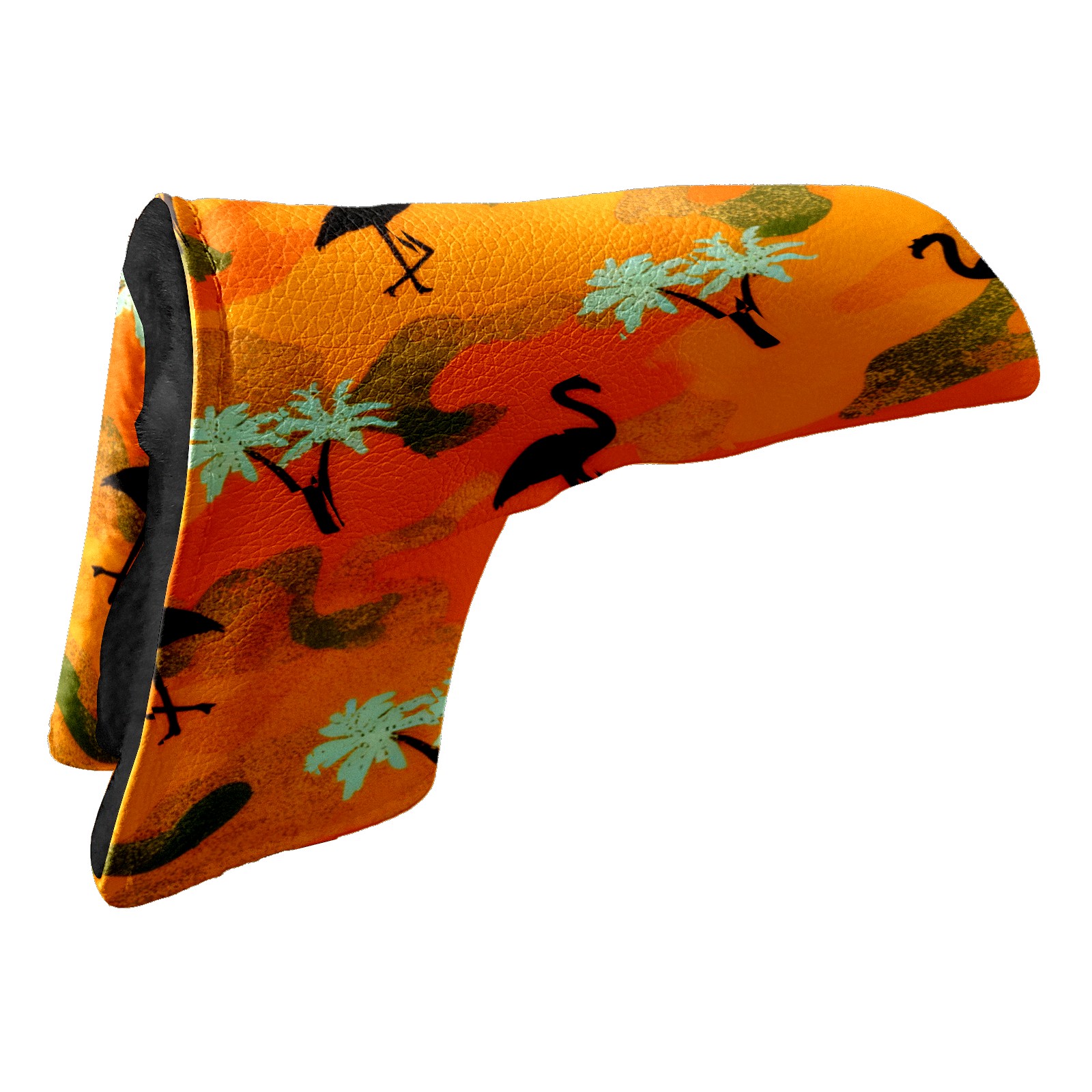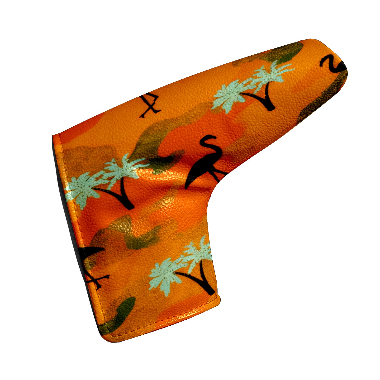 Lightweight Golf Putter Covers, Mid Mallet Putter Headcovers PU Leather Golf Club Covers for Man Women Golfer, Form Fitting Design Orange Camouflage Flamingos