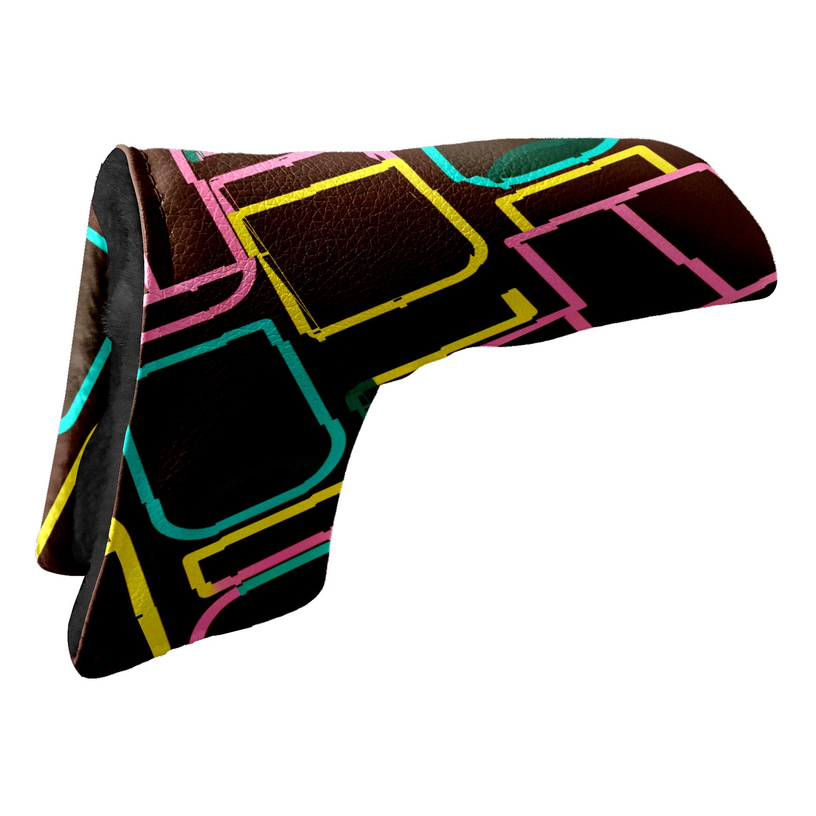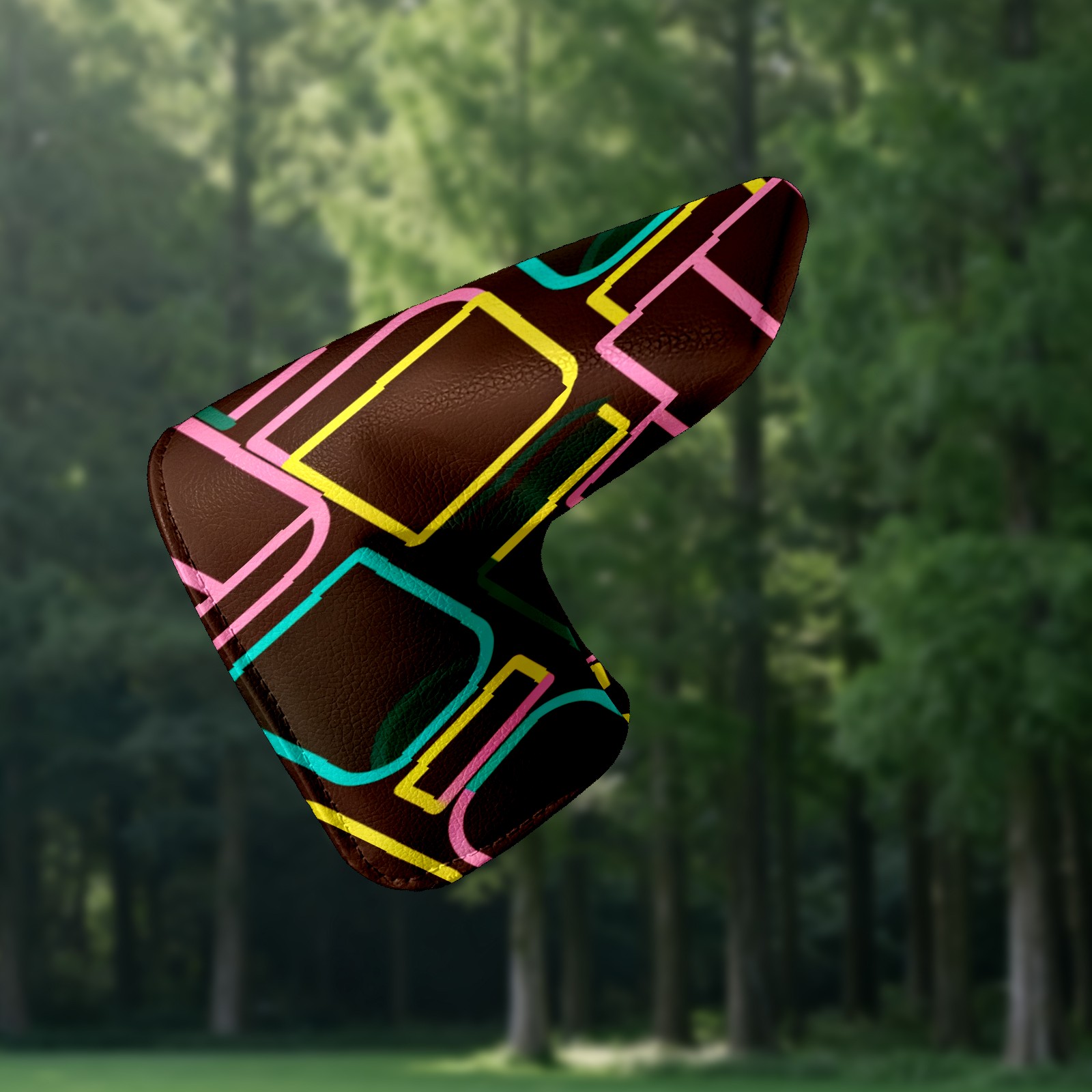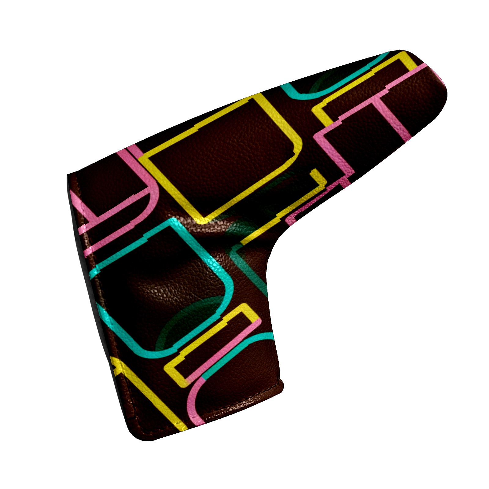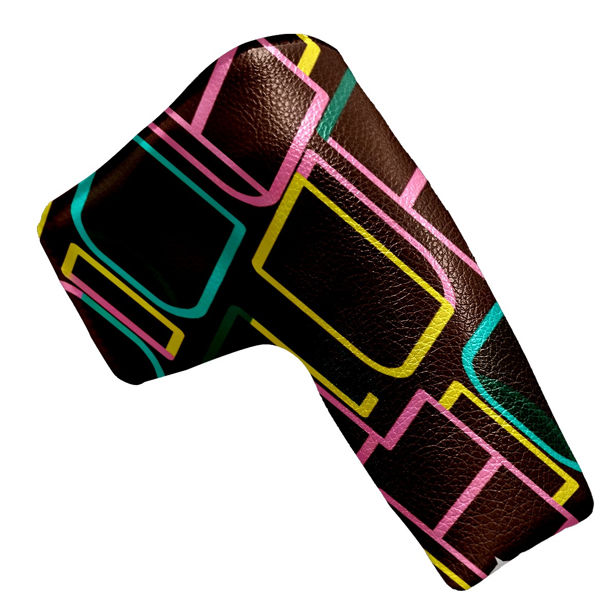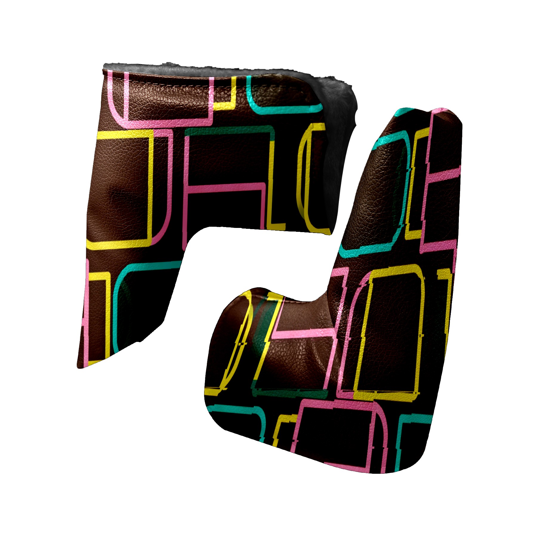 Lightweight Golf Putter Covers, Mid Mallet Putter Headcovers PU Leather Golf Club Covers for Man Women Golfer, Form Fitting Design Brown Geometric Line Patterns