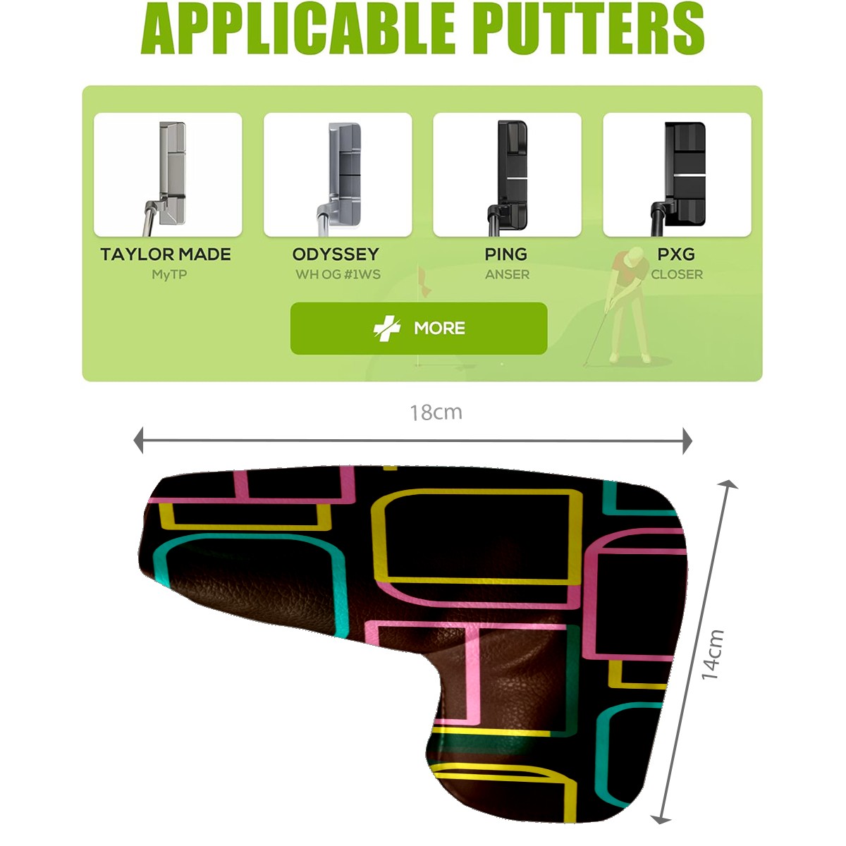 • <p>In the world of golfing equipment, the details often show professionalism and care. We carefully present this putter head protector as a classic golf accessory that will bring a new upgrade to your golf experience. It is a fusion of precision and fashion. The exterior is made of high-quality leather with a tough and textured texture that can effectively resist wear and tear and scratches from daily use. The soft inner lining wraps a gentle protective film around the putter head, avoiding minor scratches and damages caused by collisions and prolonging the life of the putter. The unique closure design is the finishing touch, super strong adhesive force, no matter how you walk on the course, bumps, it is as stable as a mountain, will not easily fall off. It is very convenient to take off the putter cover and put it into the stroke with just one pull, so that every operation is smooth and natural. It is the crystallization of retro and practical. With a strong retro flavor, it pays tribute to the classic tradition of golf. Its shape perfectly fits the unique shape of a mallet putter, providing all-around wrap-around protection for the putter head. The design of the mallet putter head protector is inspired by the golden age of golf, and the retro pattern and color combination make people feel as if they have traveled through time and space to experience the deep historical heritage of the game of golf. Whether on a traditional style golf course or a modern and fashionable course, it fits perfectly and adds a unique charm to your clubs.<br></p>