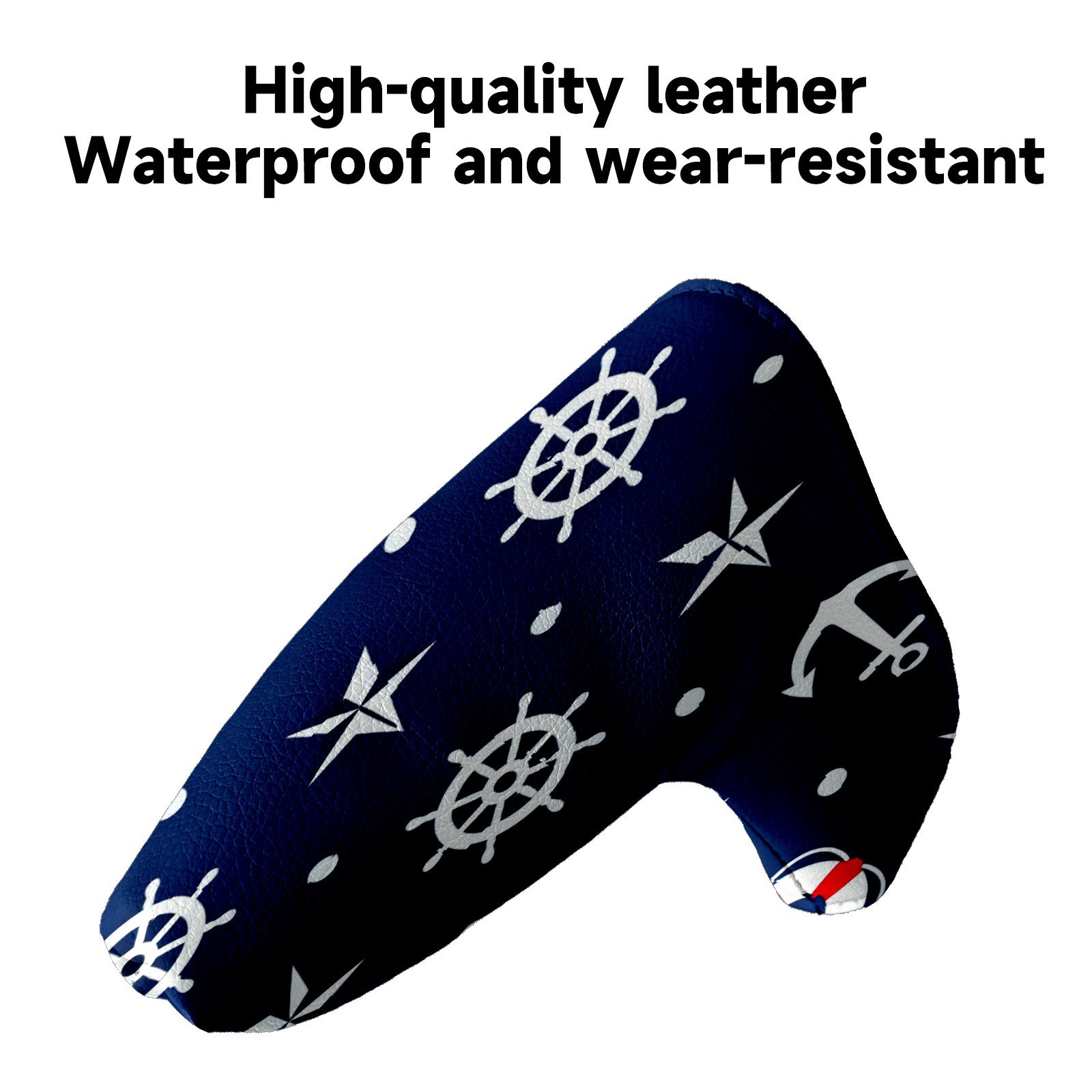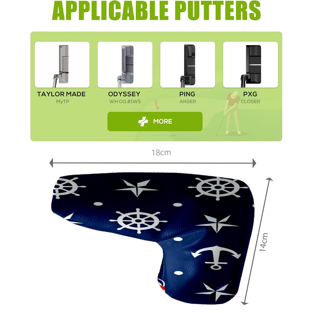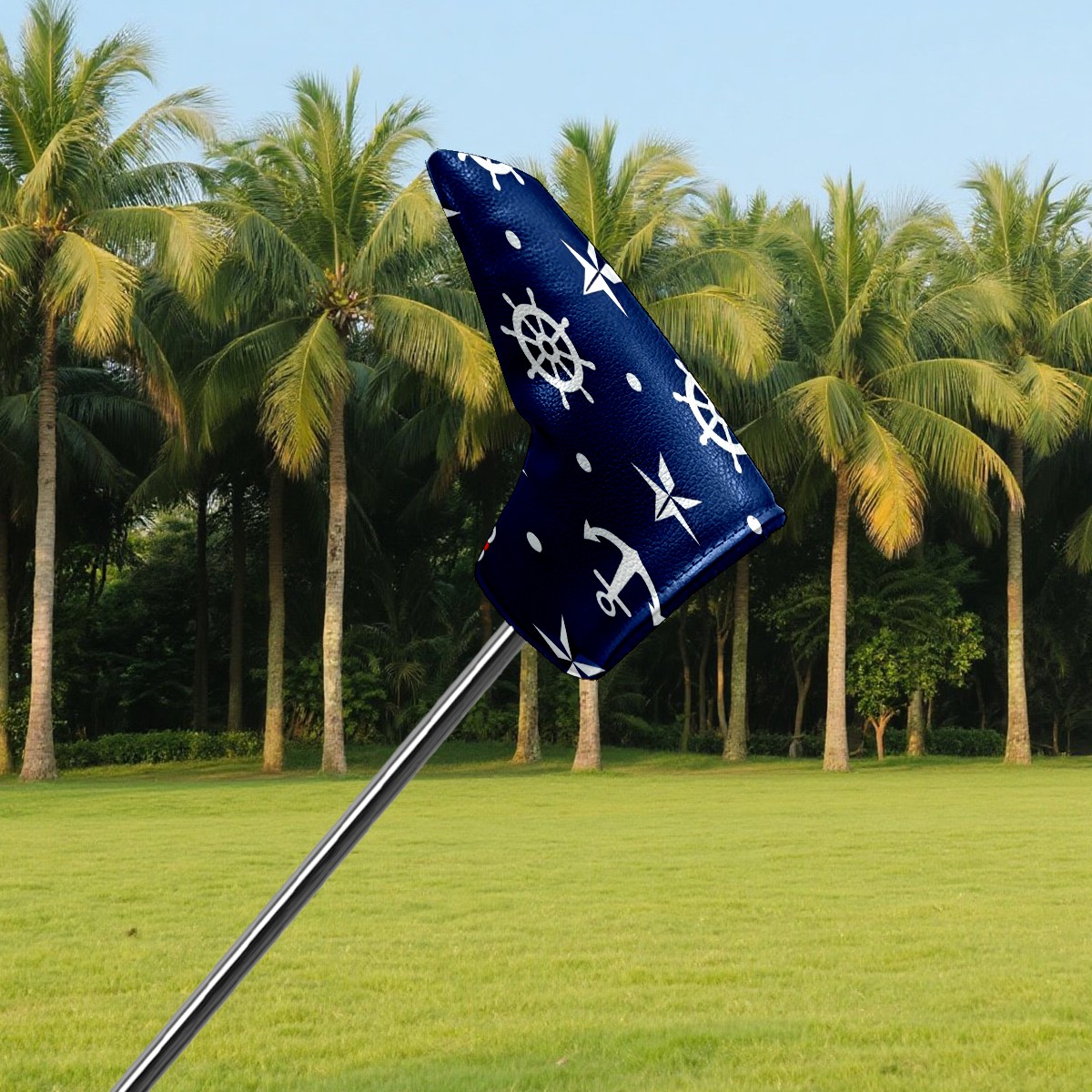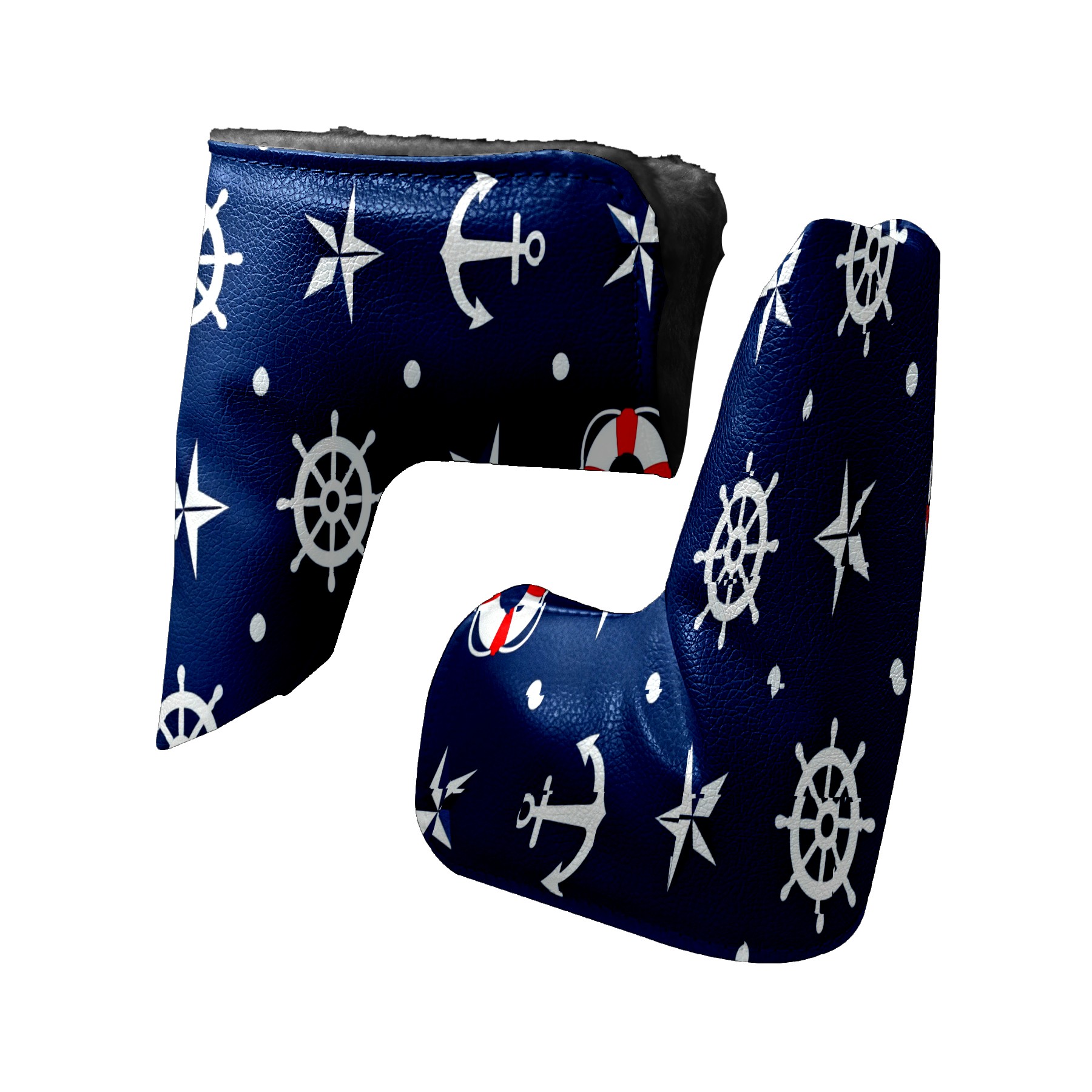 Lightweight Golf Putter Covers, Mid Mallet Putter Headcovers PU Leather Golf Club Covers for Man Women Golfer, Form Fitting Design Dark Blue Nautical Pattern